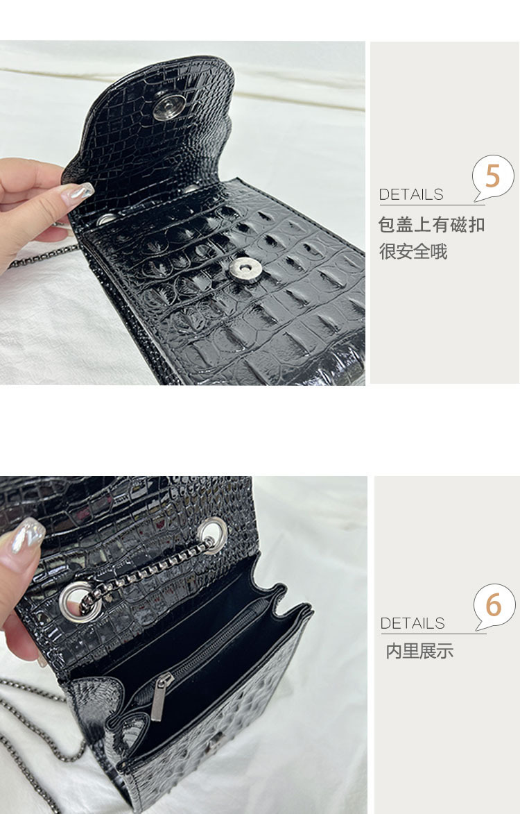 질감 악어 패턴 휴대 전화 가방 미니 가방 2023 가을과 겨울 새로운 고급 체인 숄더 크로스 바디 백스토어 가기