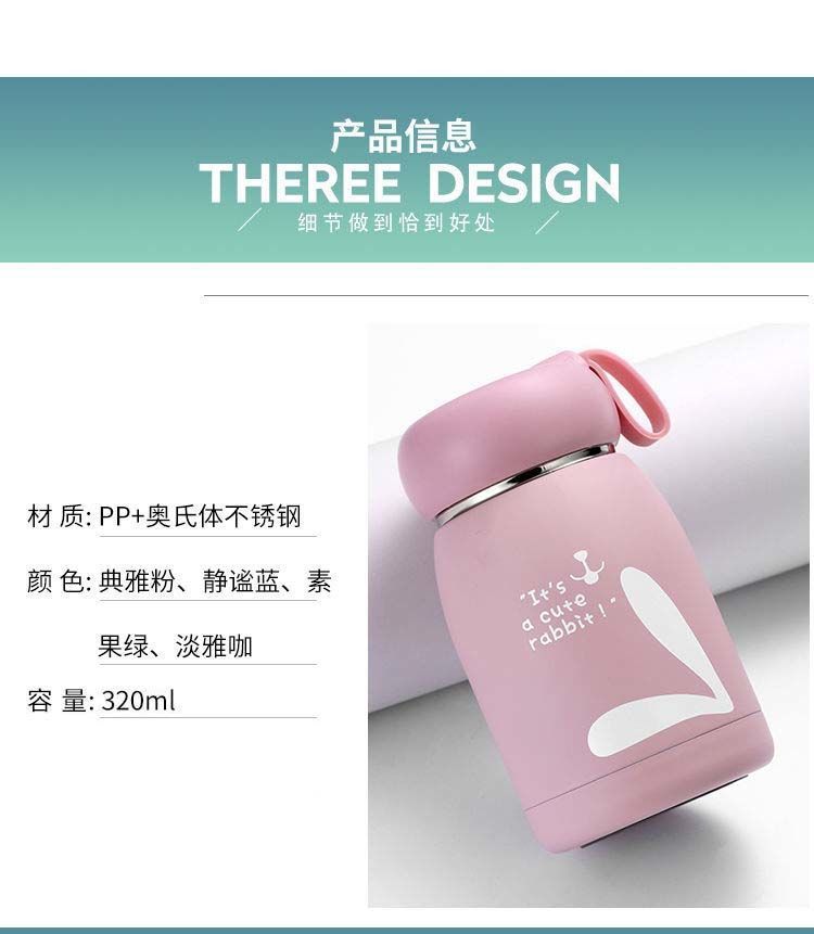 304 스테인리스 스틸 창의적인 토끼 모양의 보온병, 귀여운 남녀 학생용 물병, 진공 휴대용 대용량 컵