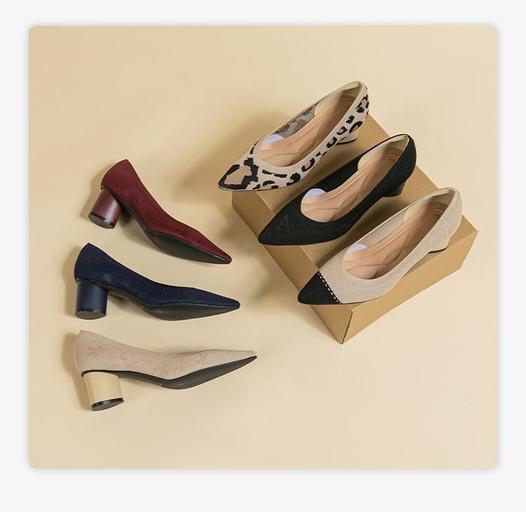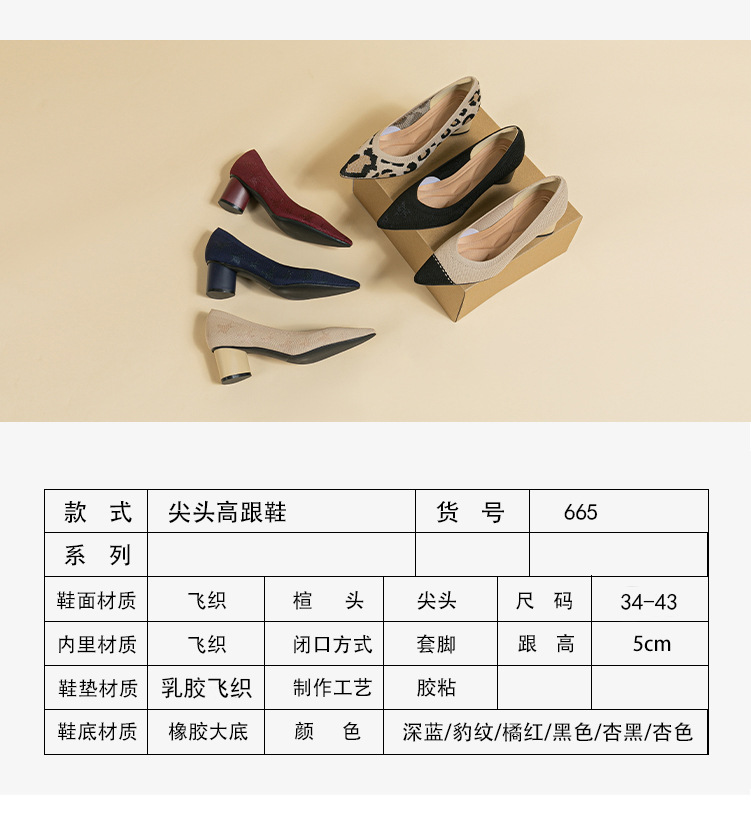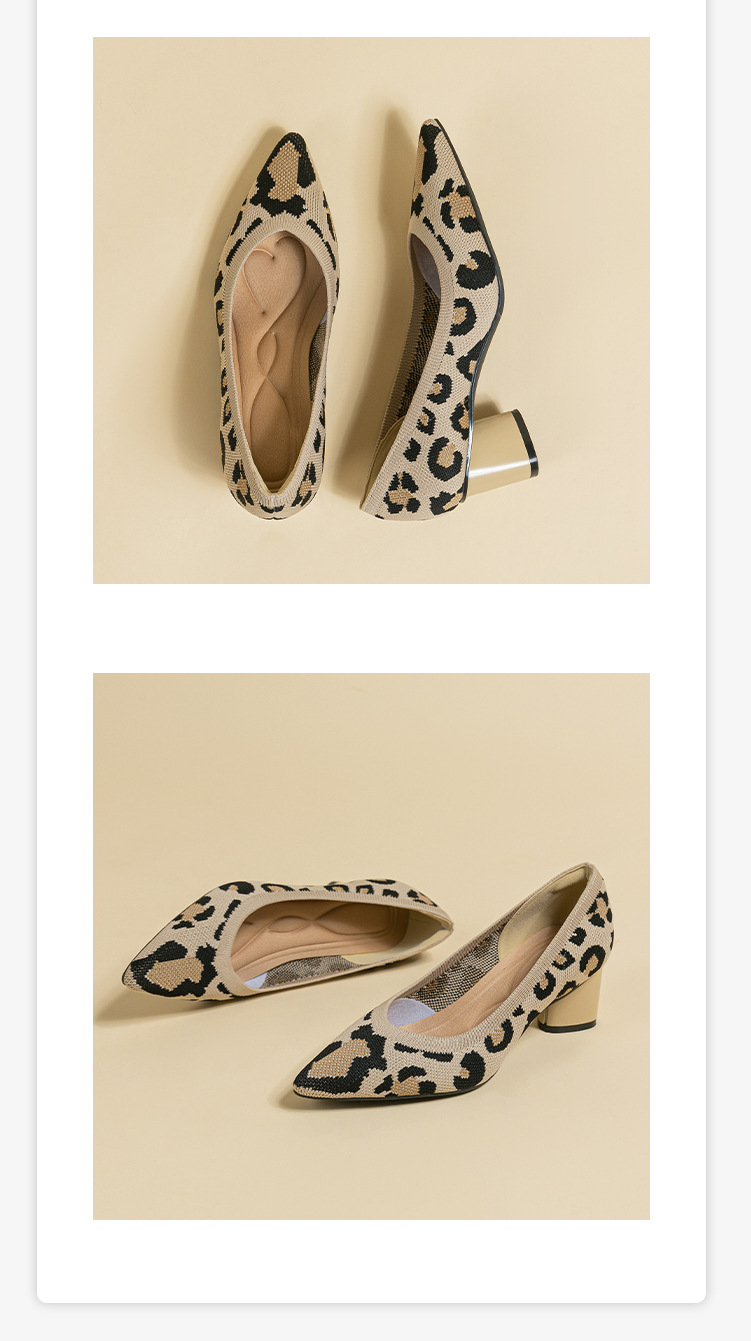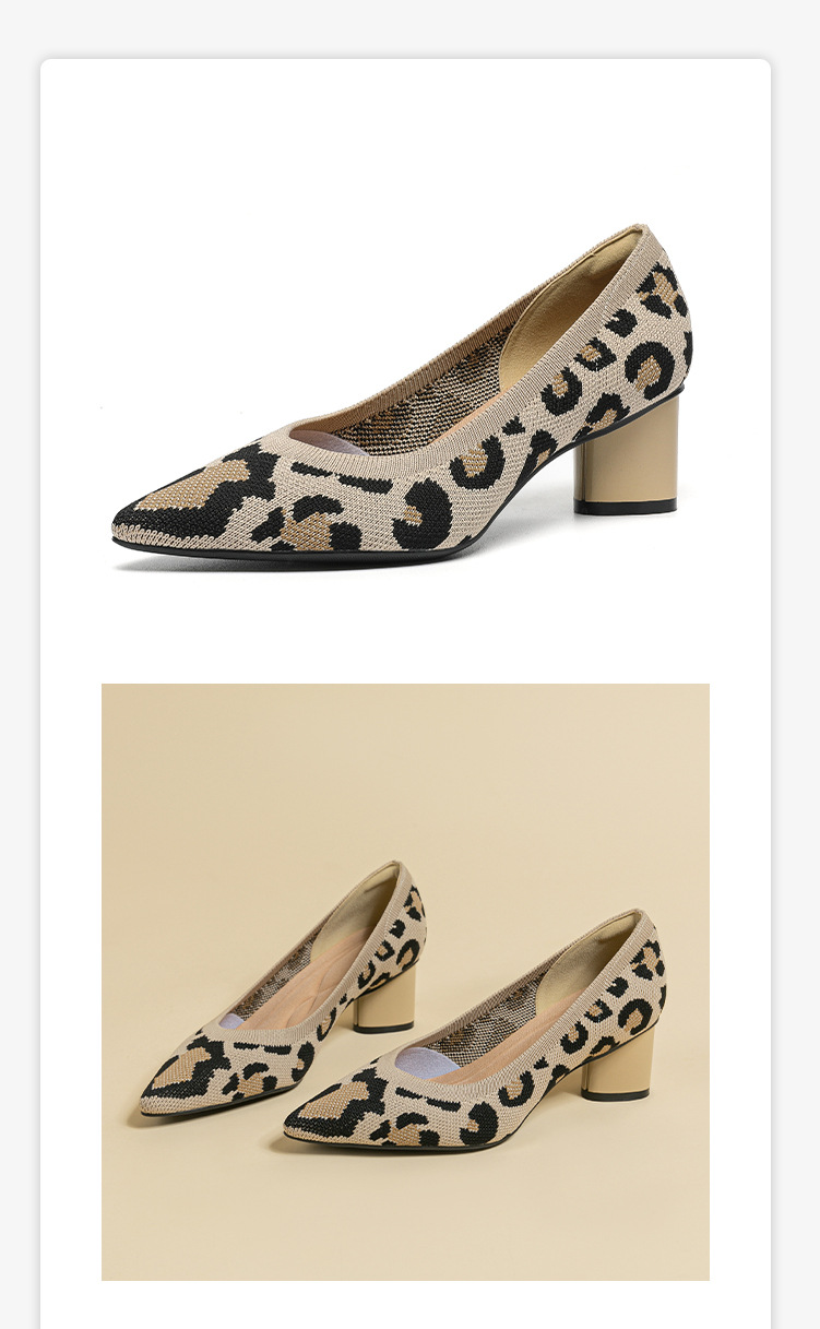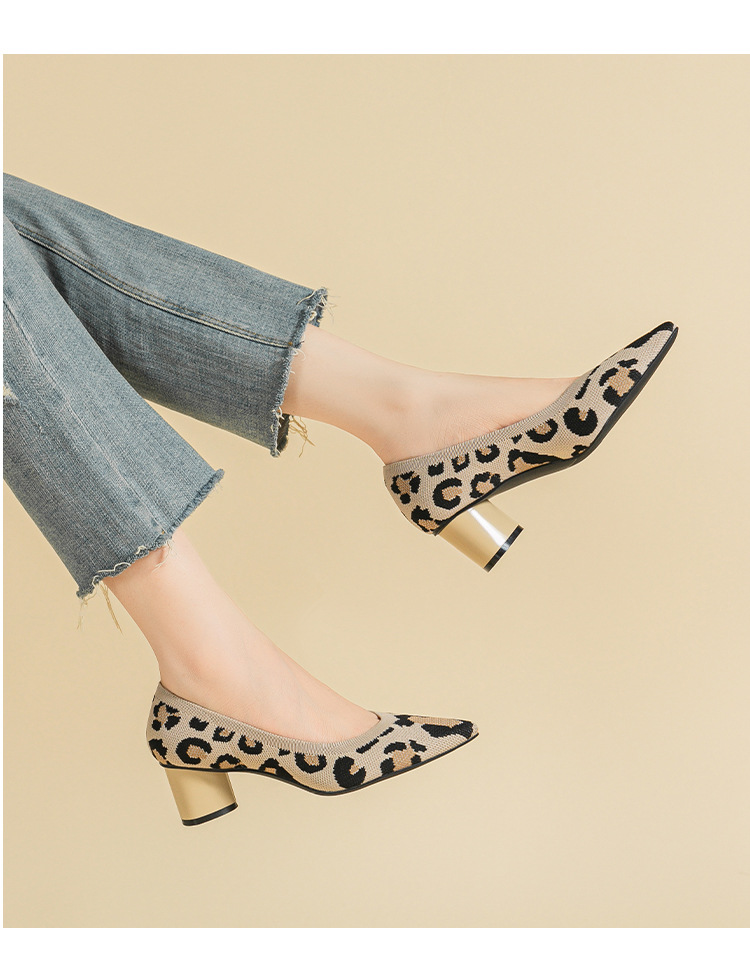 665 여름 신상품 공주풍 뾰족코 굽높이 5cm 캐주얼 빅사이즈 레오파드 프린트 작은 향수풍 별모양 레트로 여성용 신발