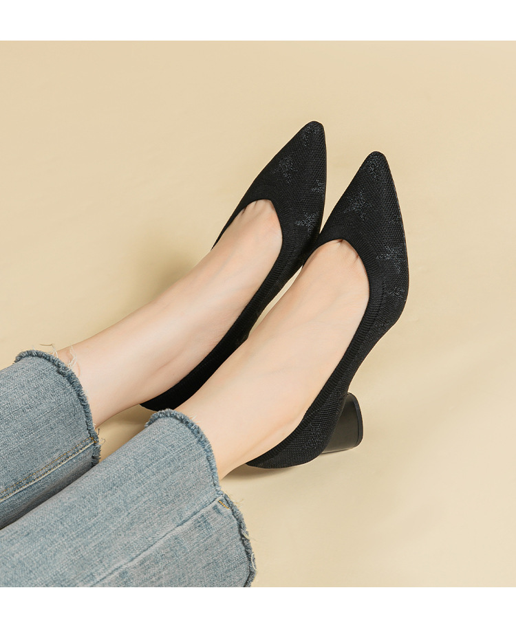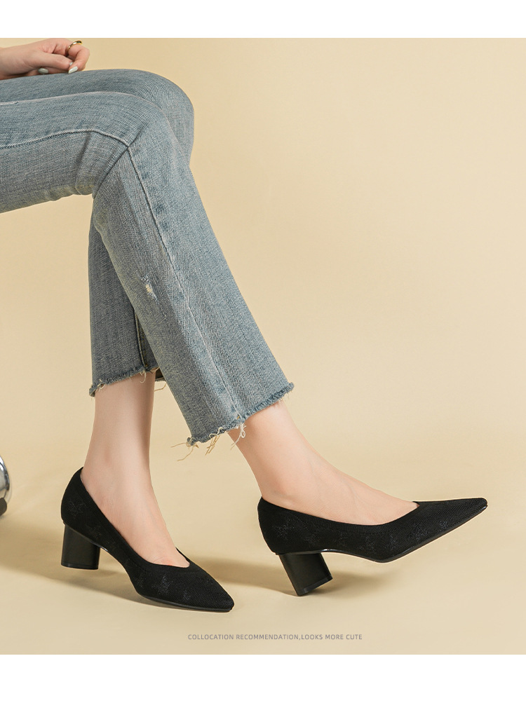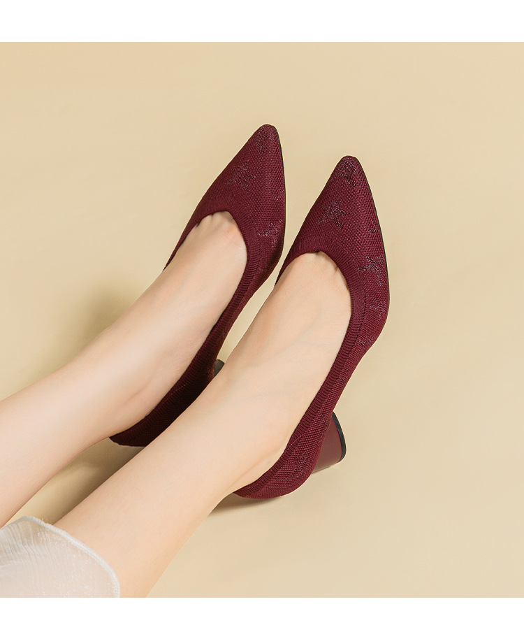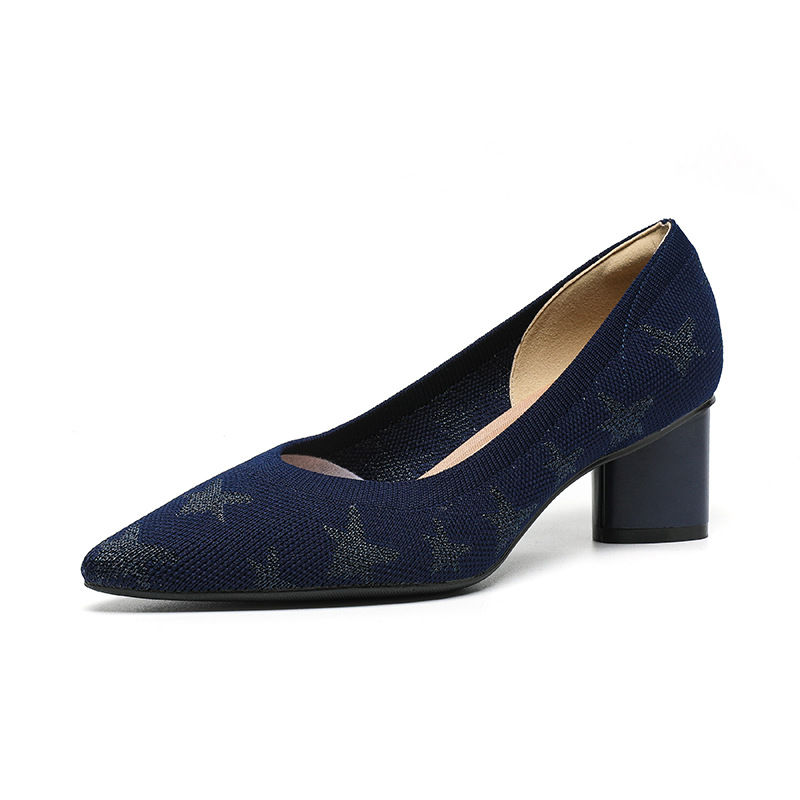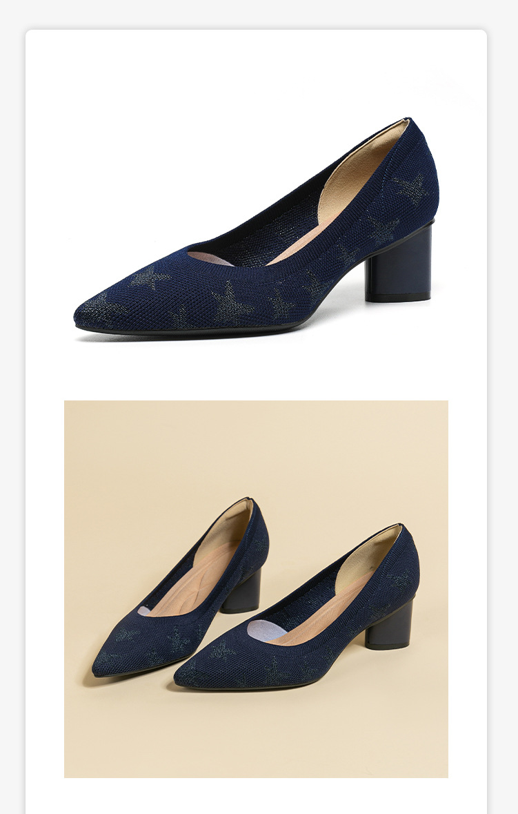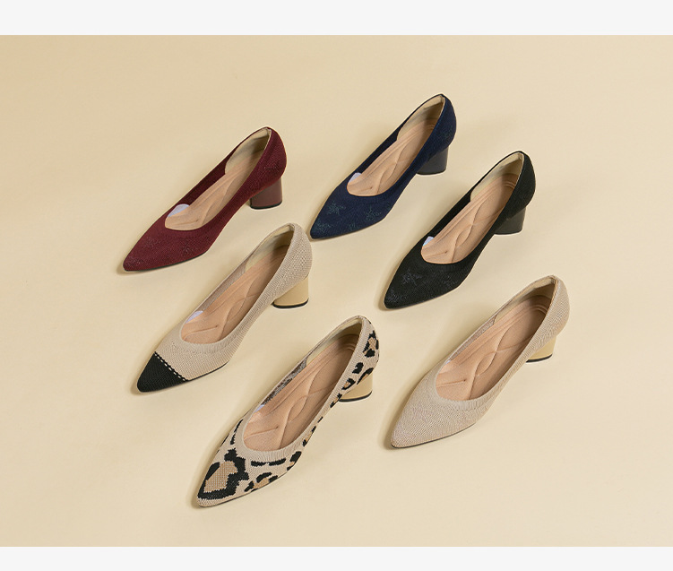 665 여름 신상품 공주풍 뾰족코 굽높이 5cm 캐주얼 빅사이즈 레오파드 프린트 작은 향수풍 별모양 레트로 여성용 신발