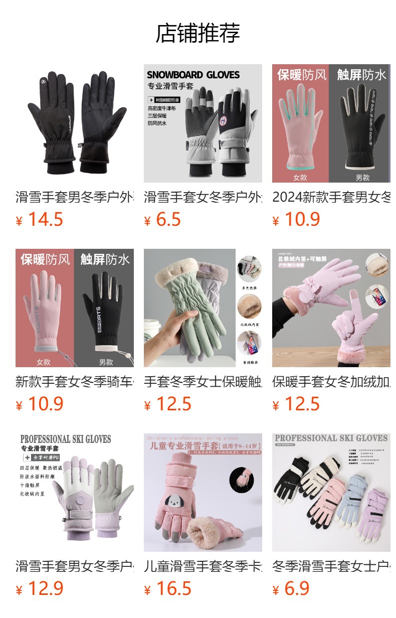 스키 장갑 여성용 겨울 따뜻한 미끄럼 방지 터치 스크린 야외 라이딩 장갑 남성용 처리 맞춤형 배치스토어 가기