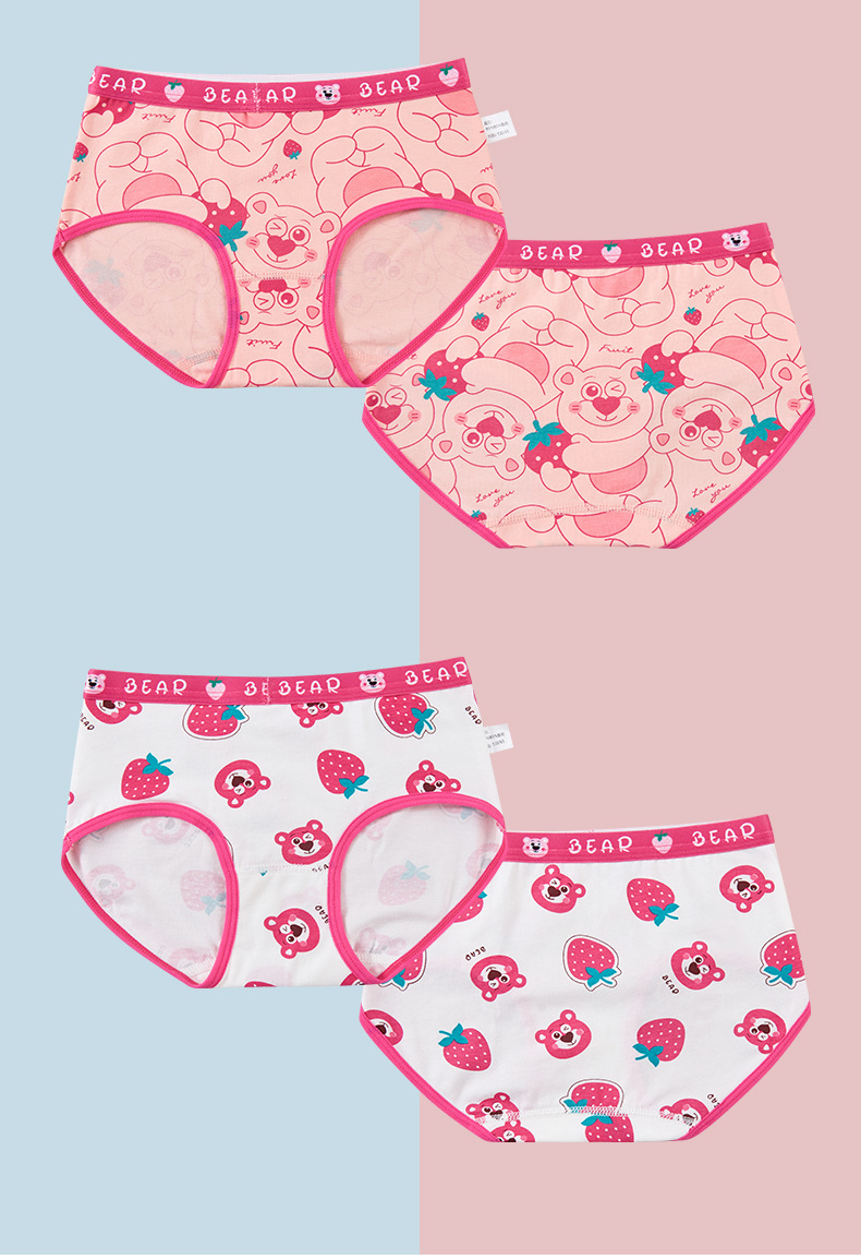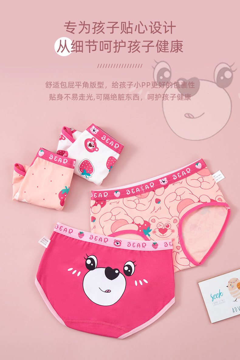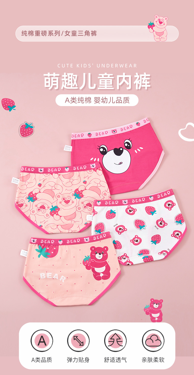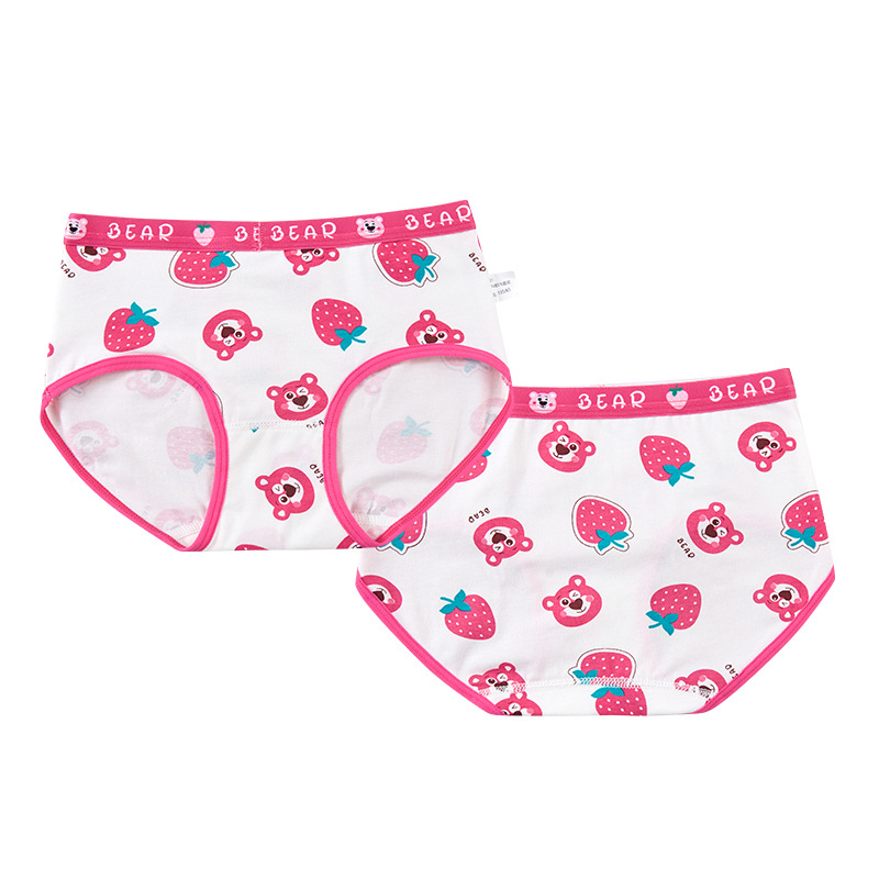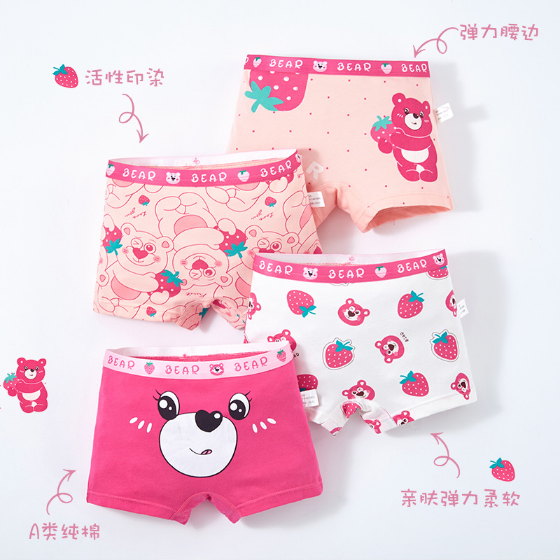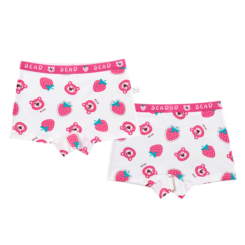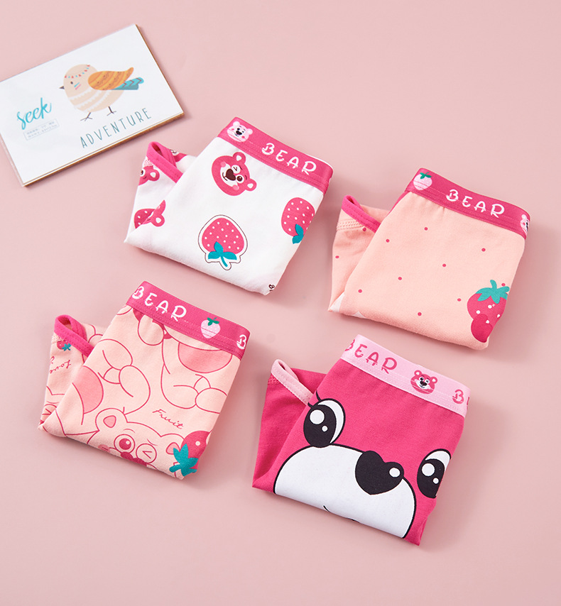 새로운 도매 여자 속옷 딸기 곰 빗질 면 팬티 여자 복서 아기 어린이 반바지스토어 가기