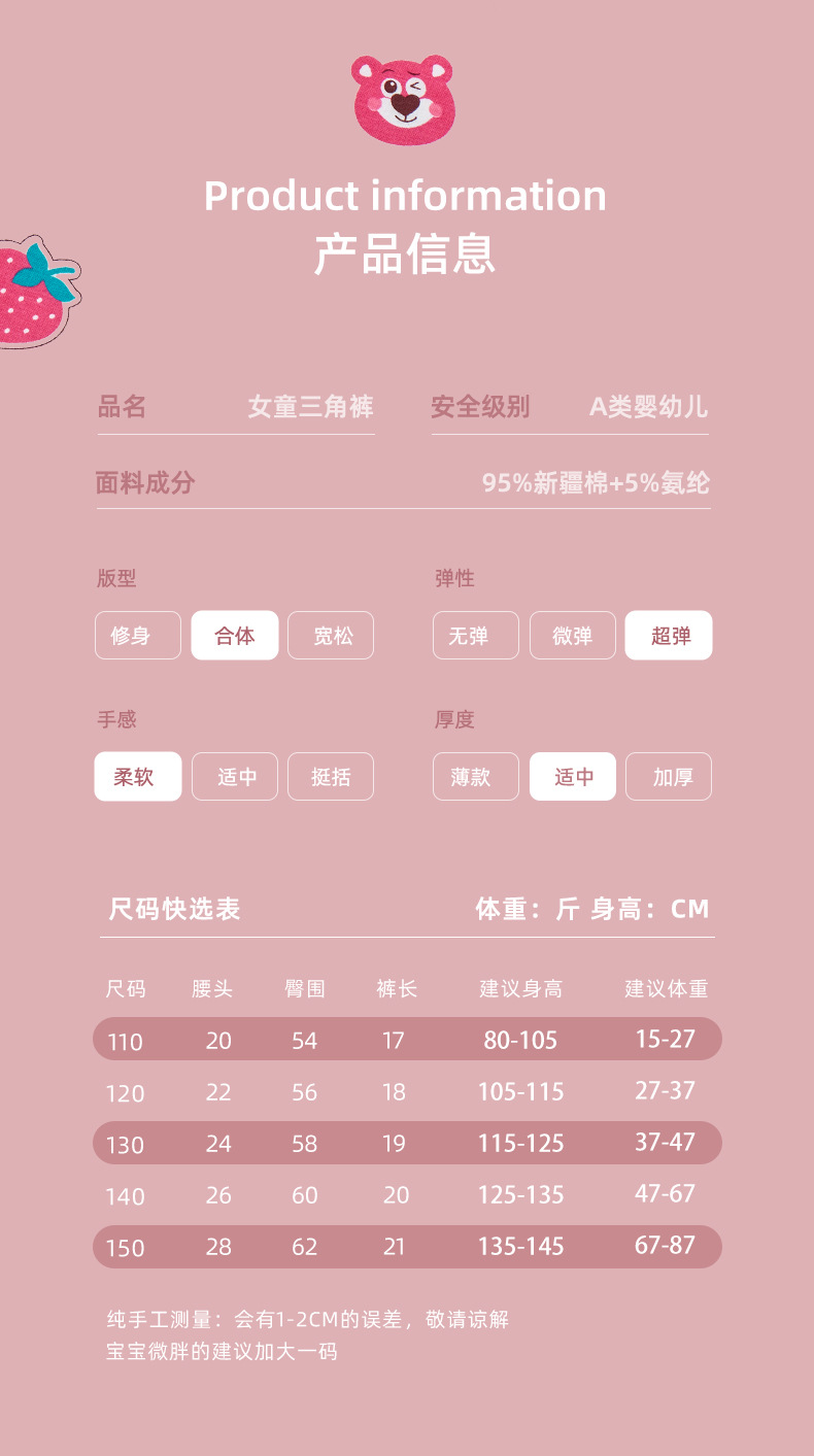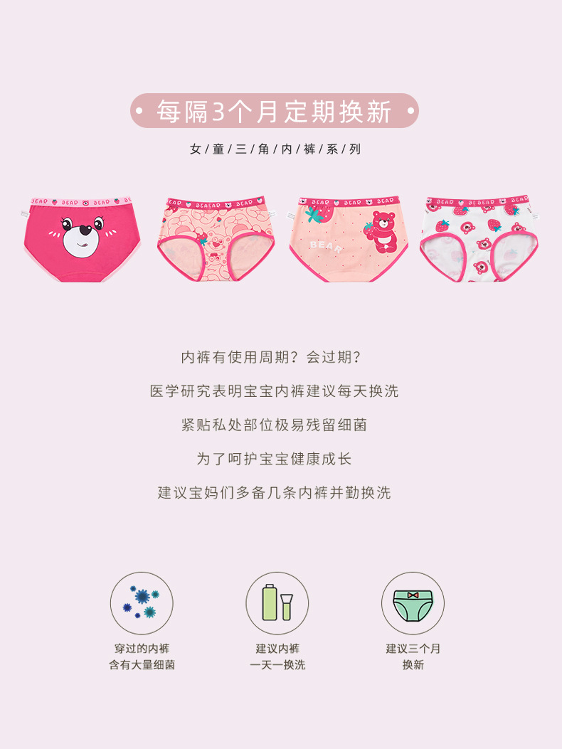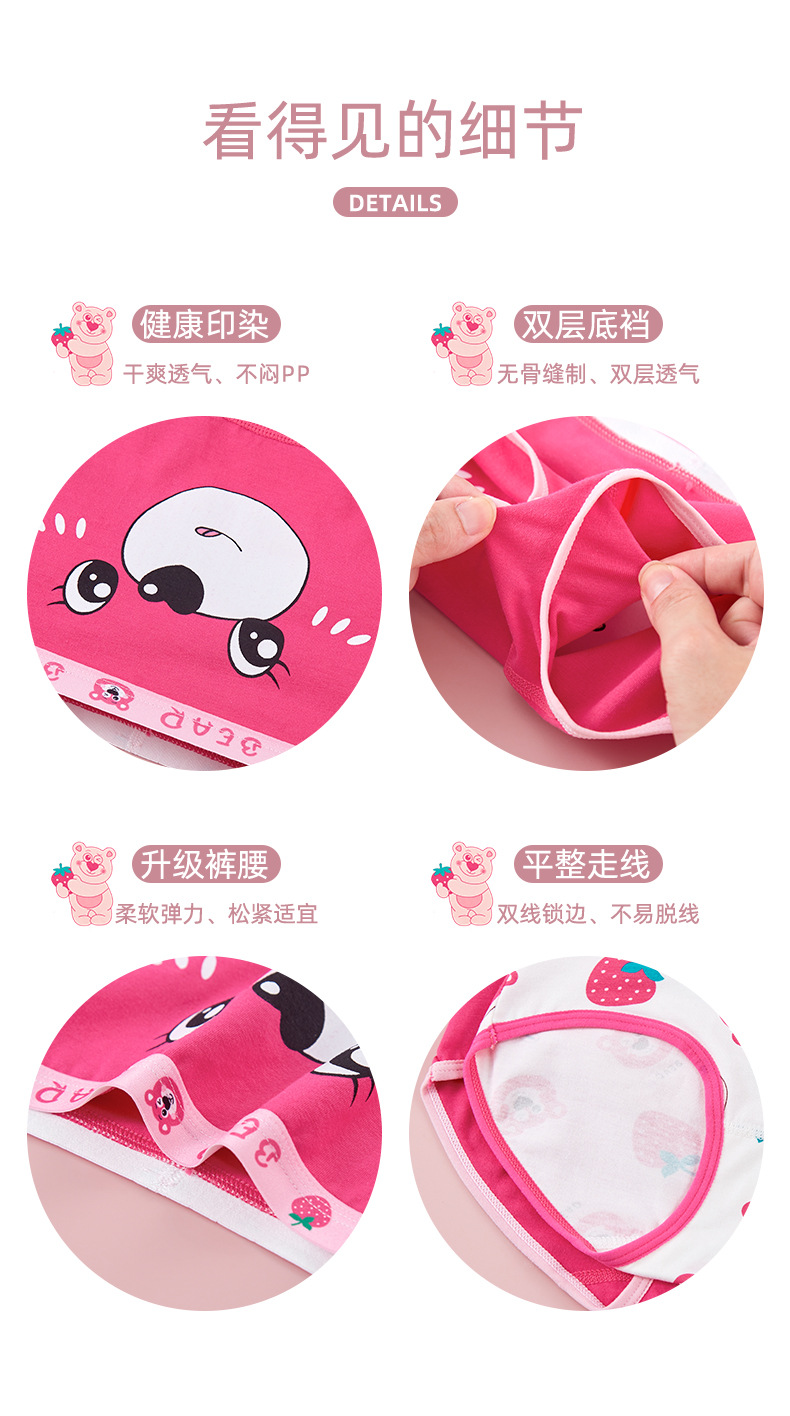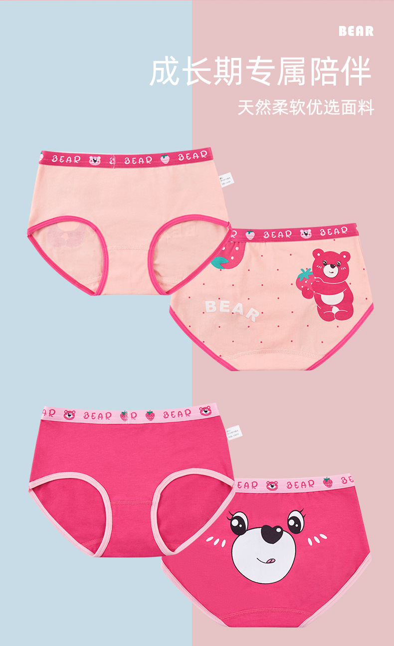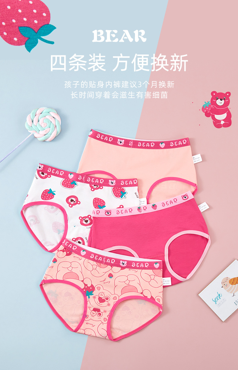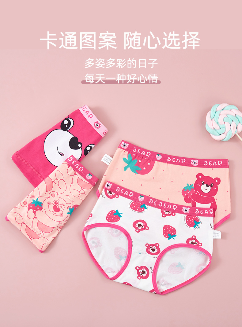 새로운 도매 여자 속옷 딸기 곰 빗질 면 팬티 여자 복서 아기 어린이 반바지스토어 가기