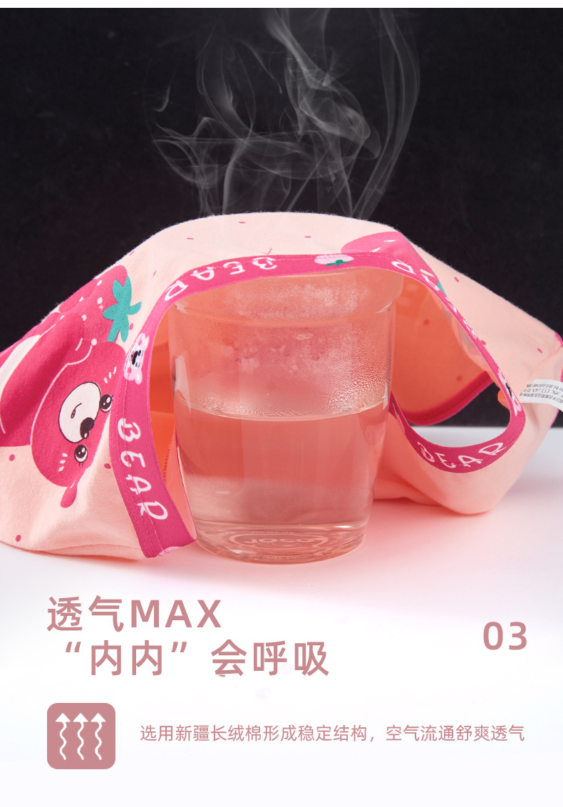 새로운 도매 여자 속옷 딸기 곰 빗질 면 팬티 여자 복서 아기 어린이 반바지