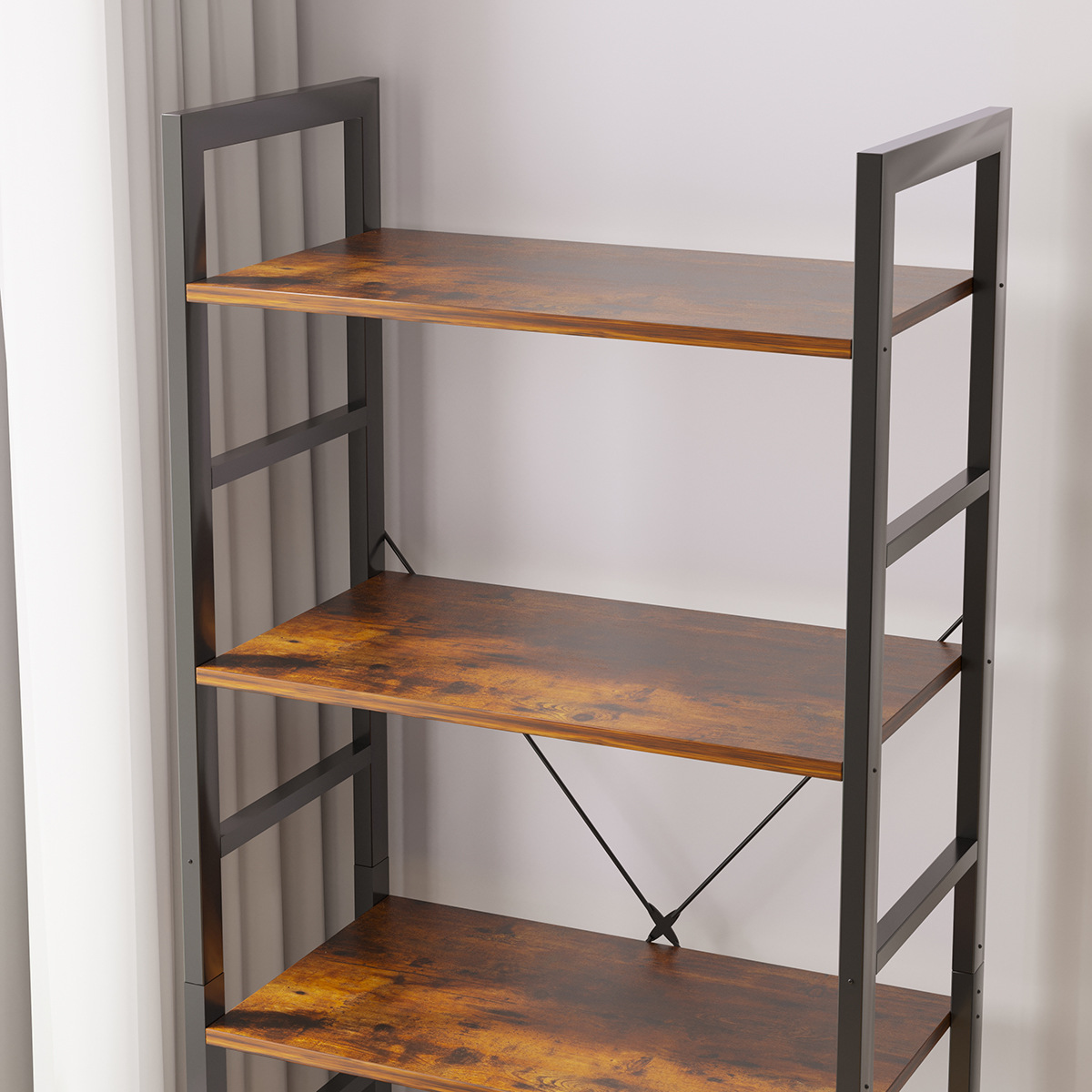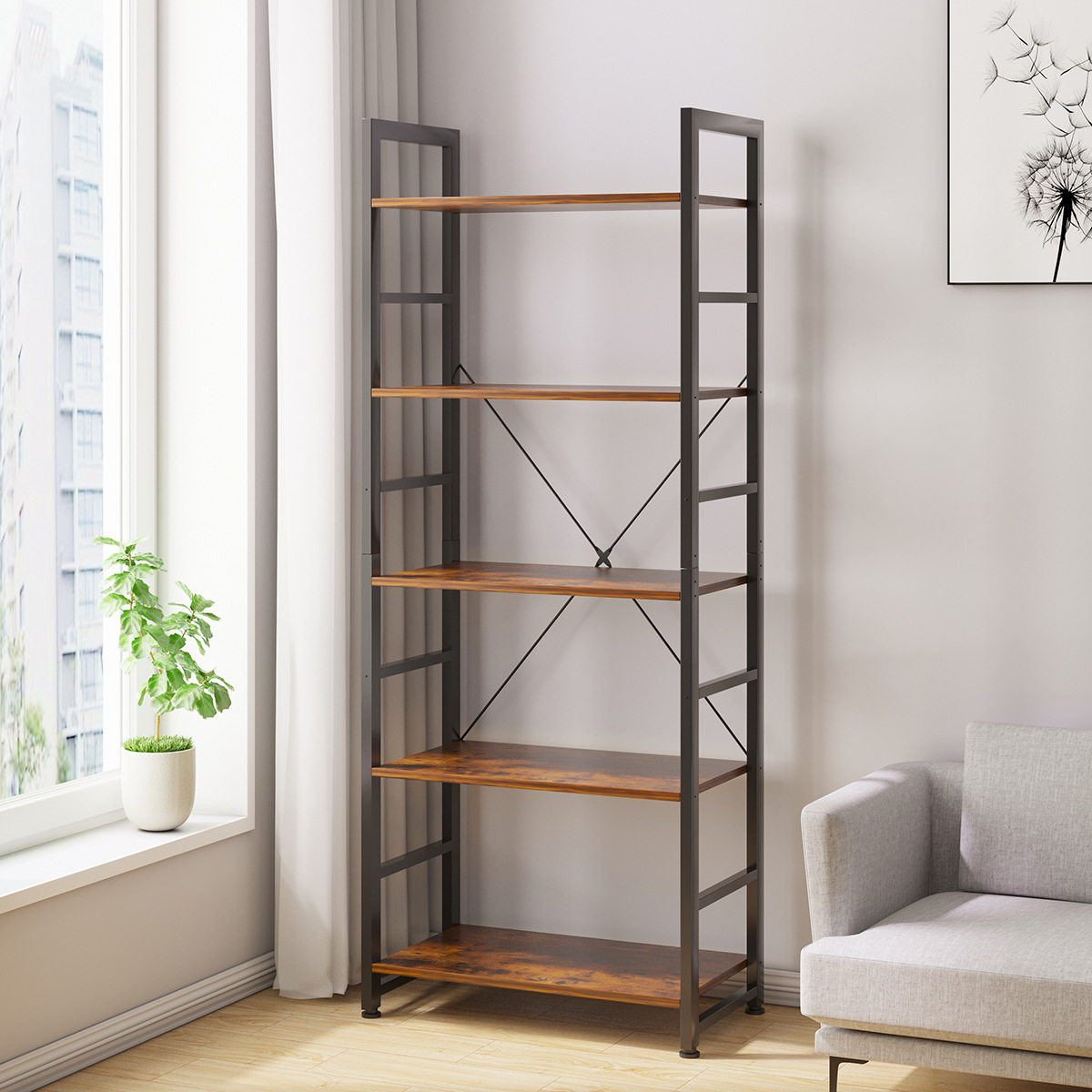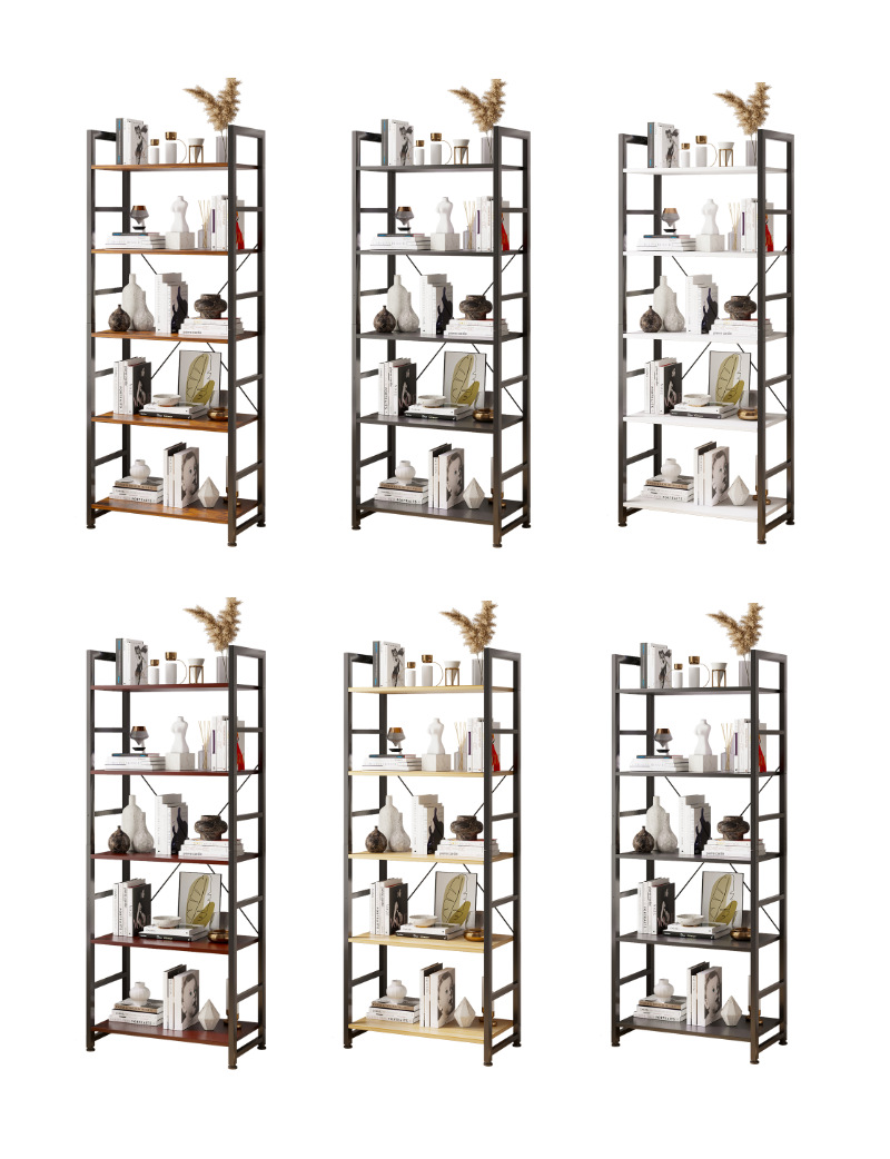 북유럽 책장 보관 랙 단단한 나무 바닥 책장 간단한 가정용 5 층 책장 간단한 벽 거실 꽃 랙