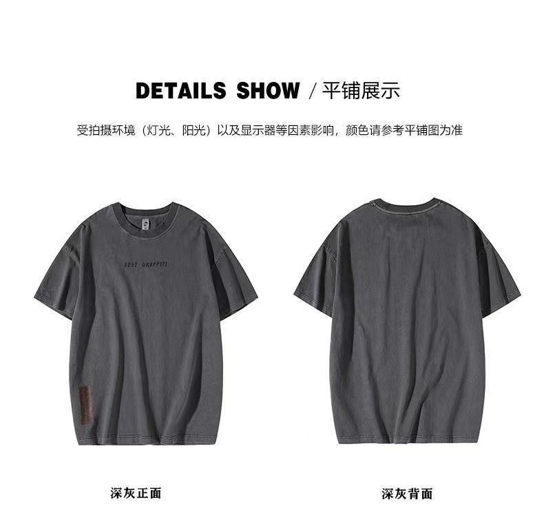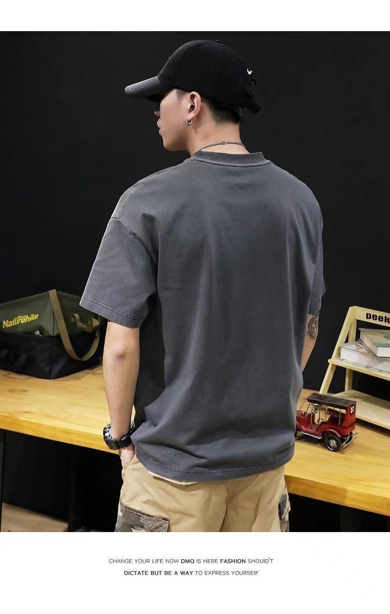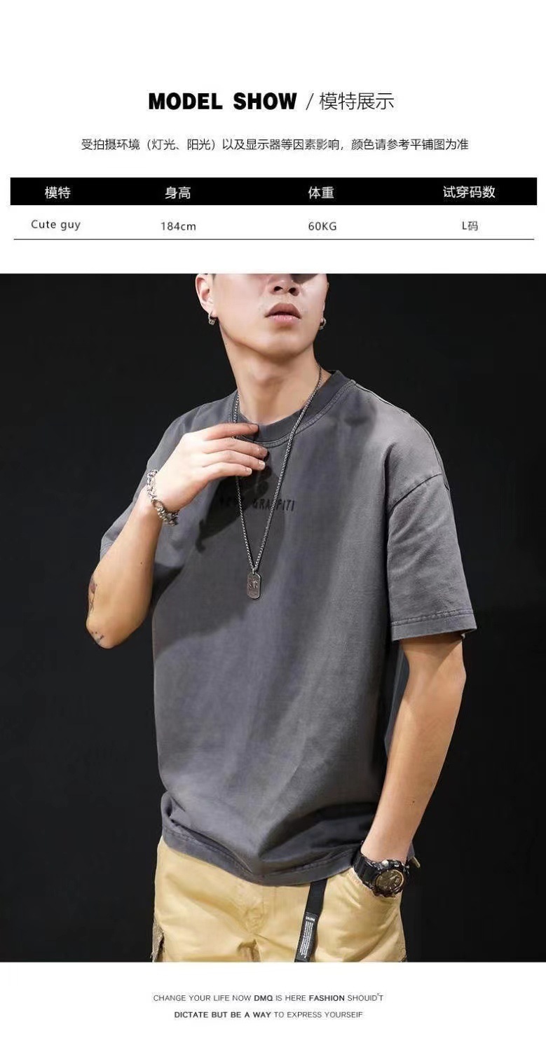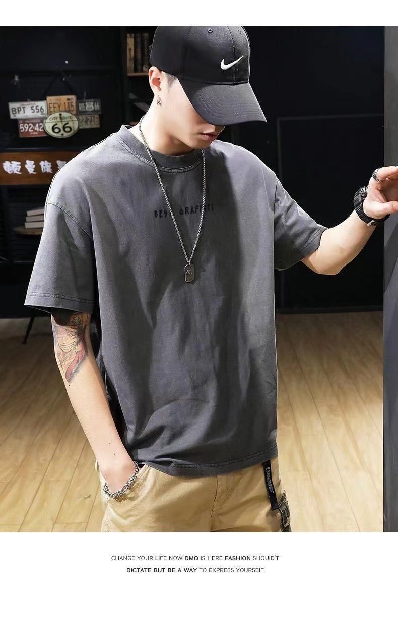 남성용 봄과 여름 루즈한 코튼 티셔츠 모든 경기 남성용 여름 통기성 라운드 넥 반팔 심플 반팔 탑 티셔츠스토어 가기