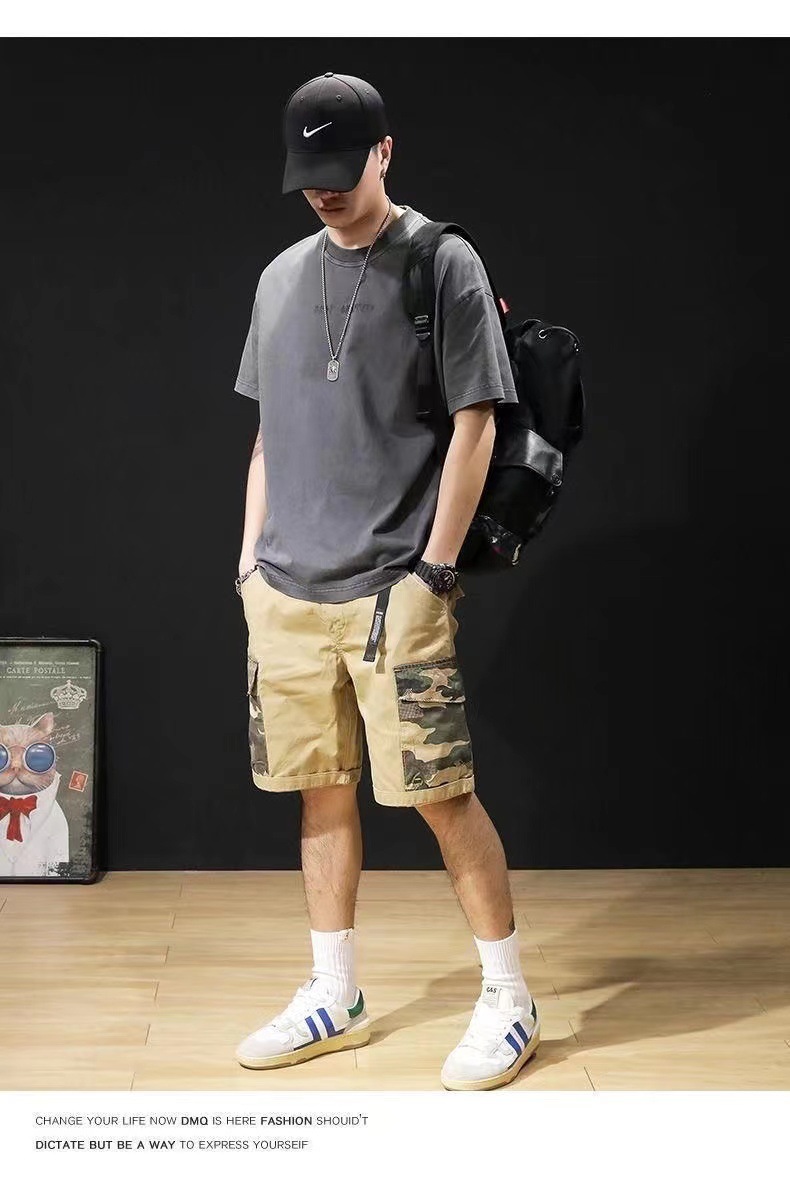남성용 봄과 여름 루즈한 코튼 티셔츠 모든 경기 남성용 여름 통기성 라운드 넥 반팔 심플 반팔 탑 티셔츠