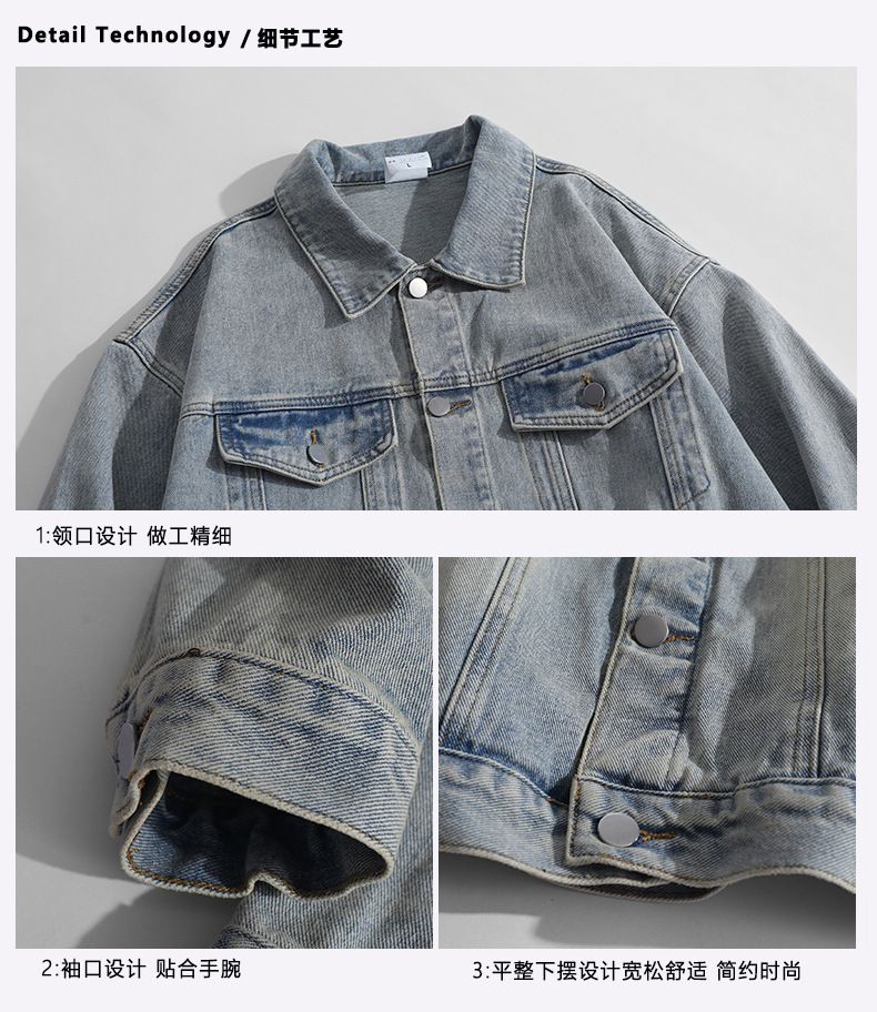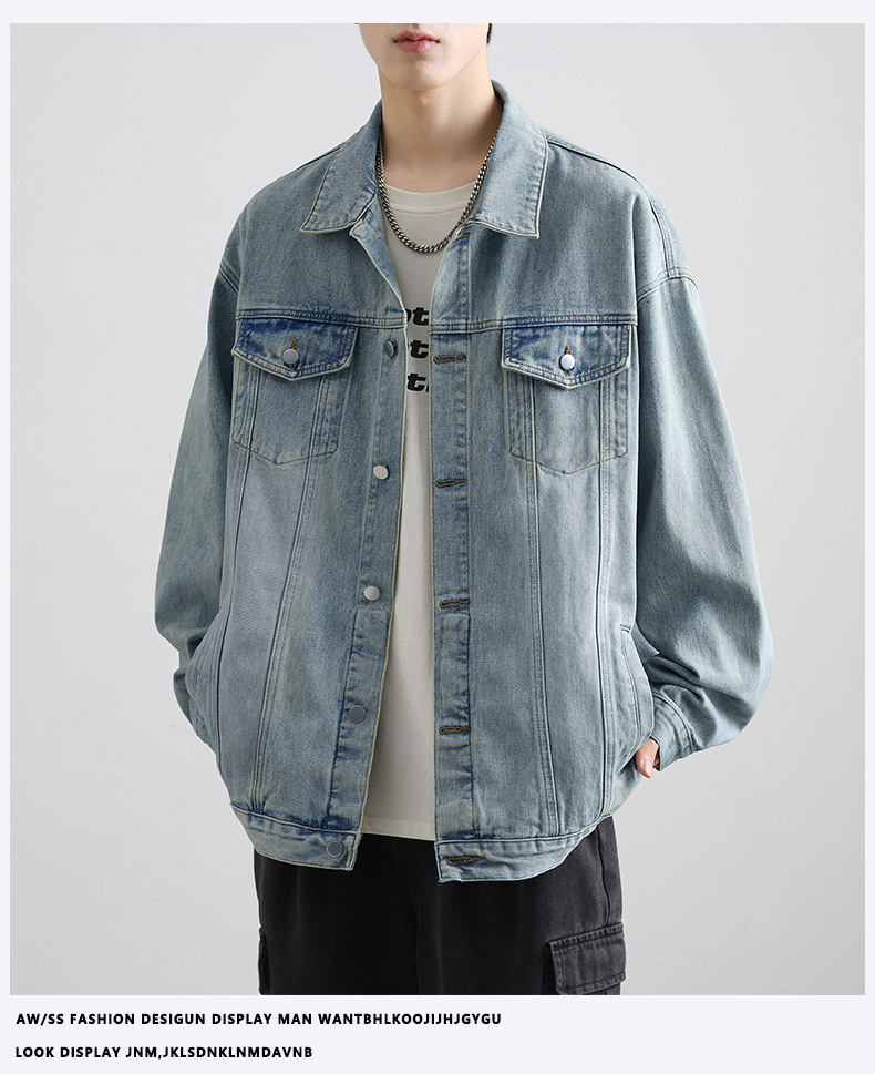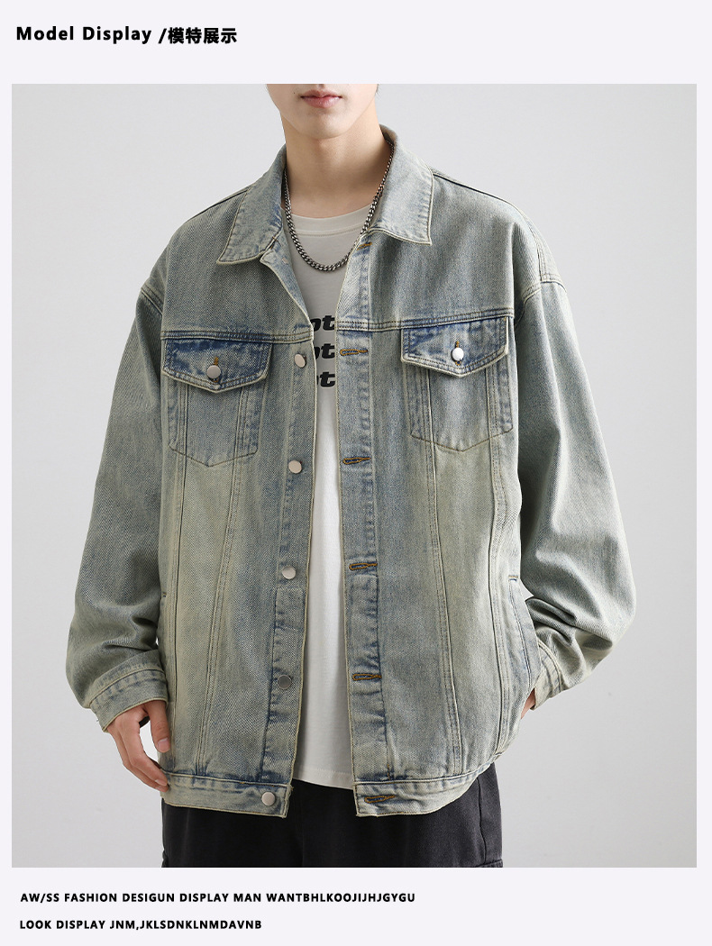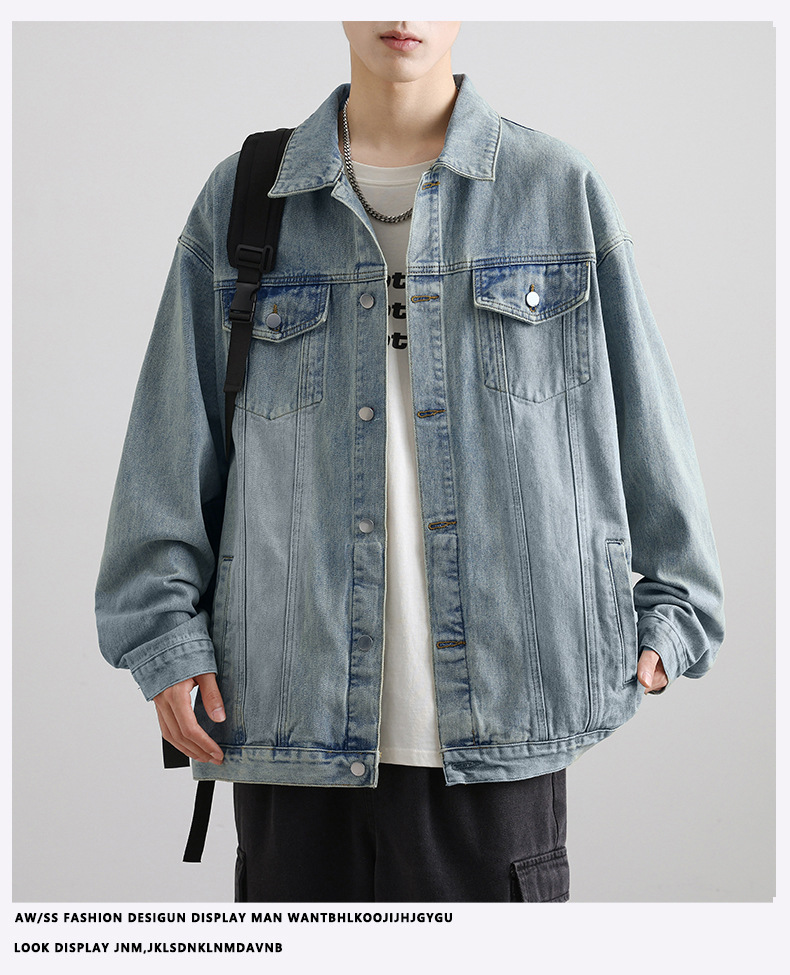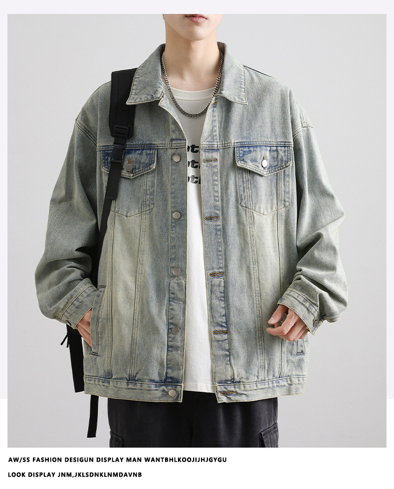 WASSUP NEST 아메리칸 데님 재킷 남성 봄, 가을 복고풍 작업복 캐주얼 재킷 다목적 라펠 탑