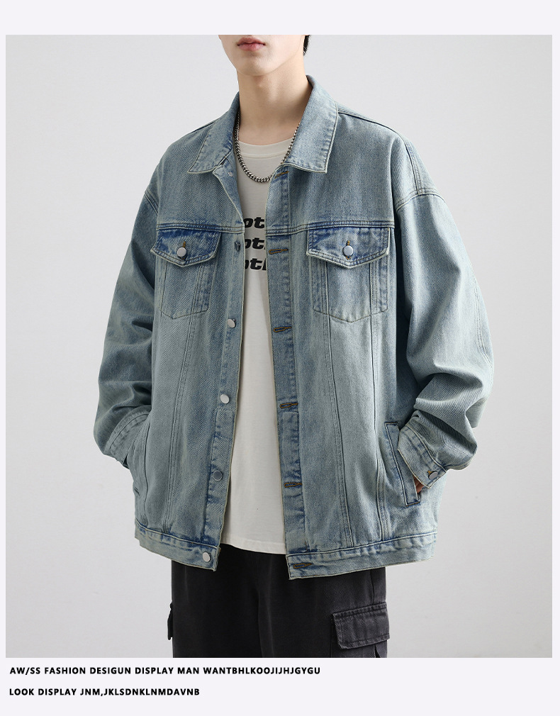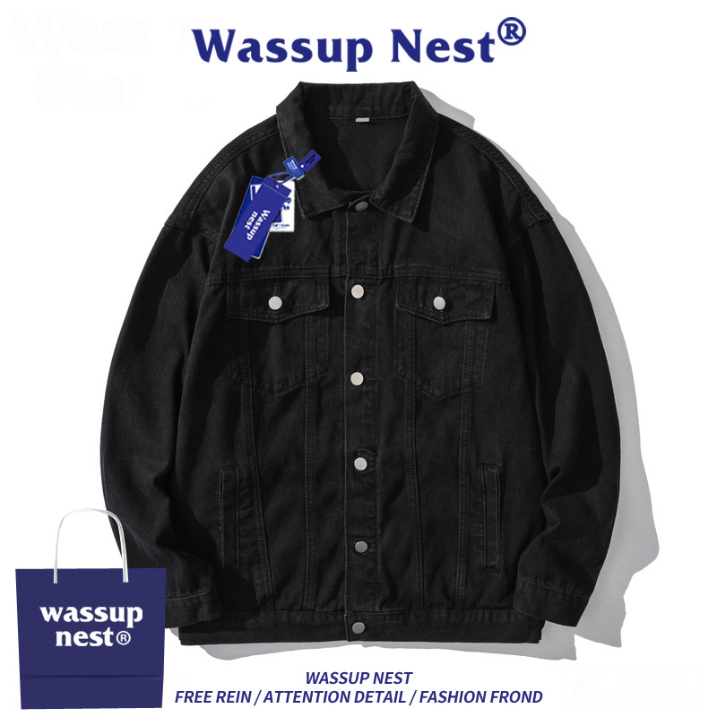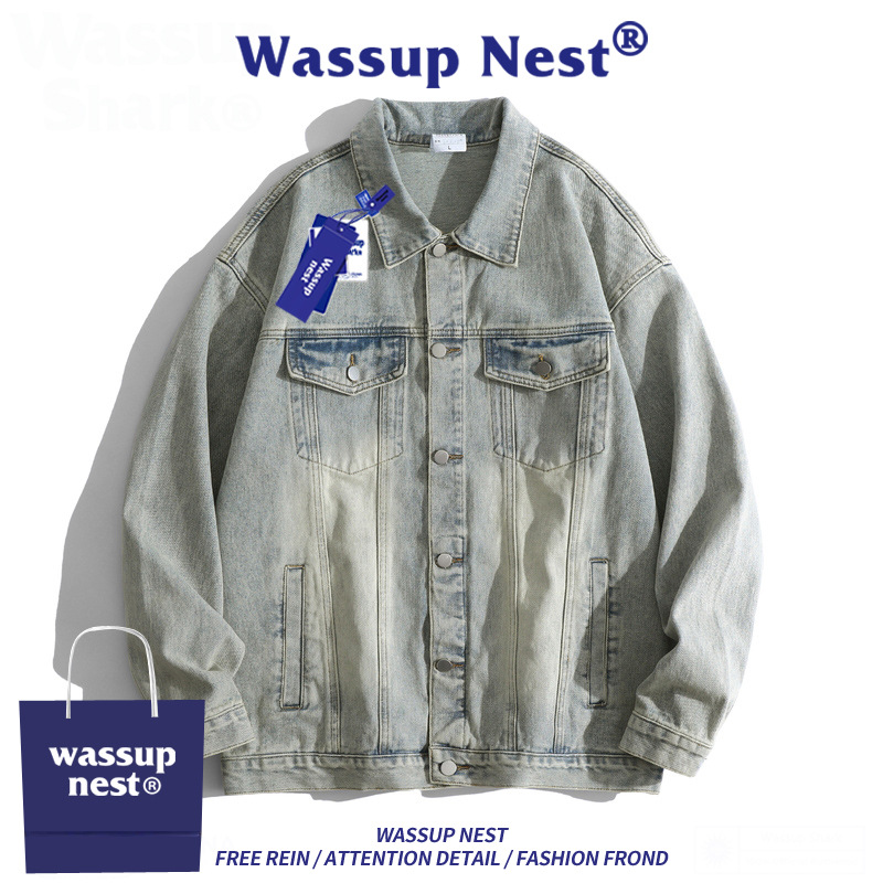 WASSUP NEST 아메리칸 데님 재킷 남성 봄, 가을 복고풍 작업복 캐주얼 재킷 다목적 라펠 탑스토어 가기