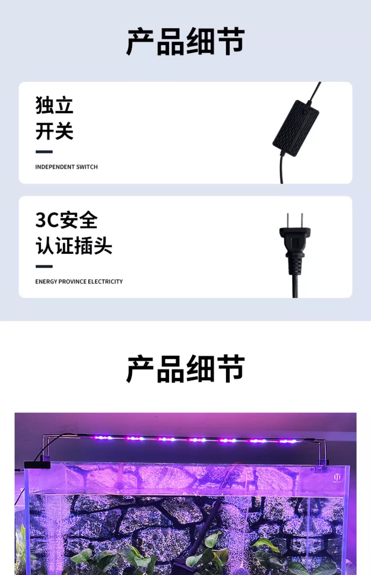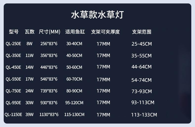 • 25cm 전체 스펙트럼 물 잔디 램프 (30-40cm 실린더에 적합)