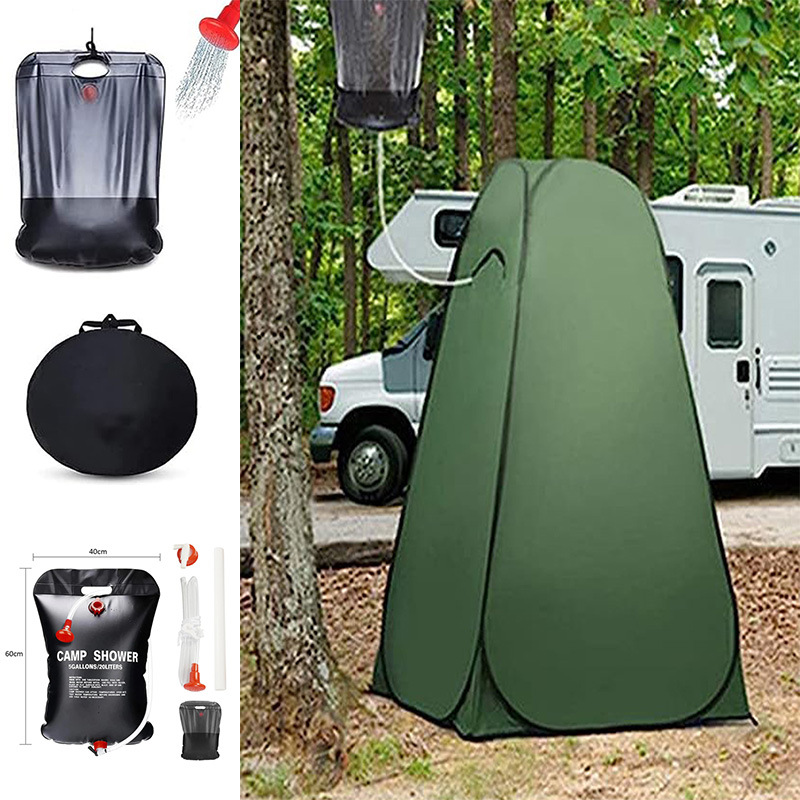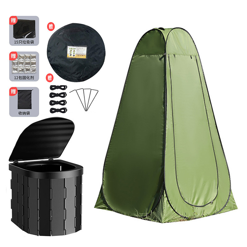 • [야외캠핑 필수 가성비 조합] 투윈도우 텐트(120*120*190cm) + 목욕물주머니(20L) + 뚜껑이 있는 접이식 변기