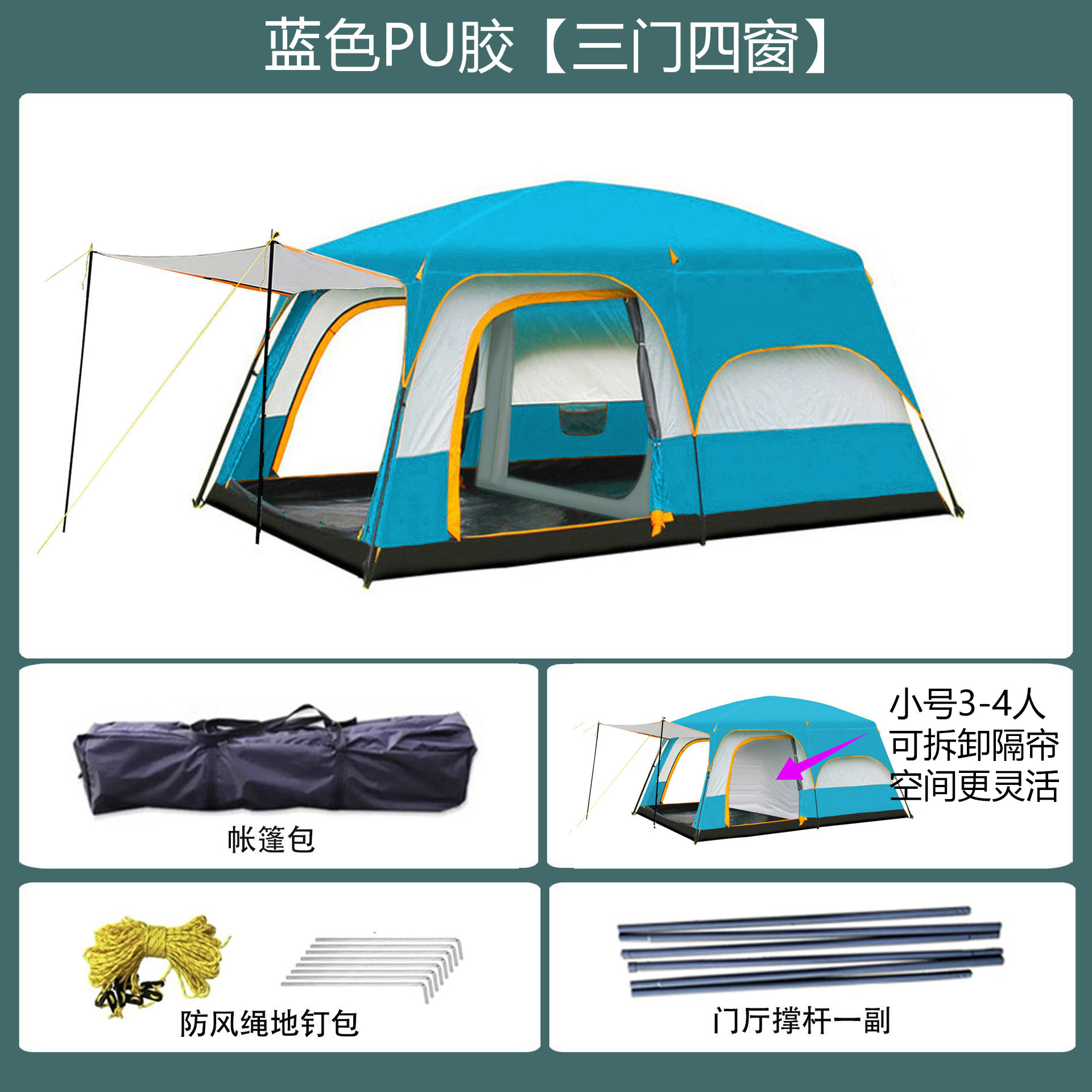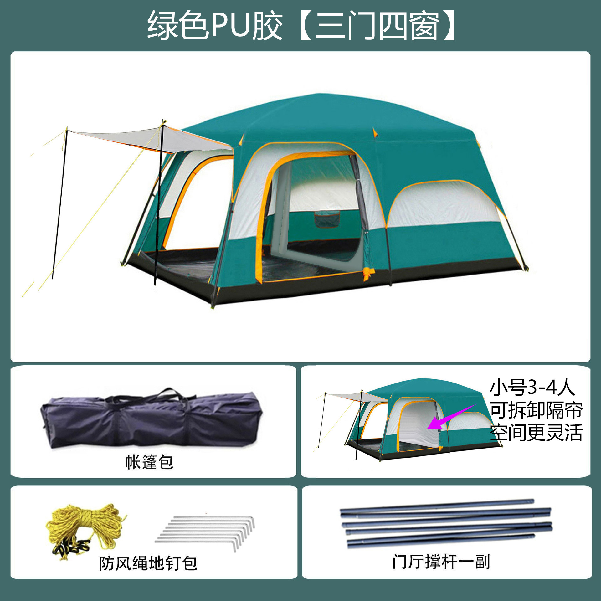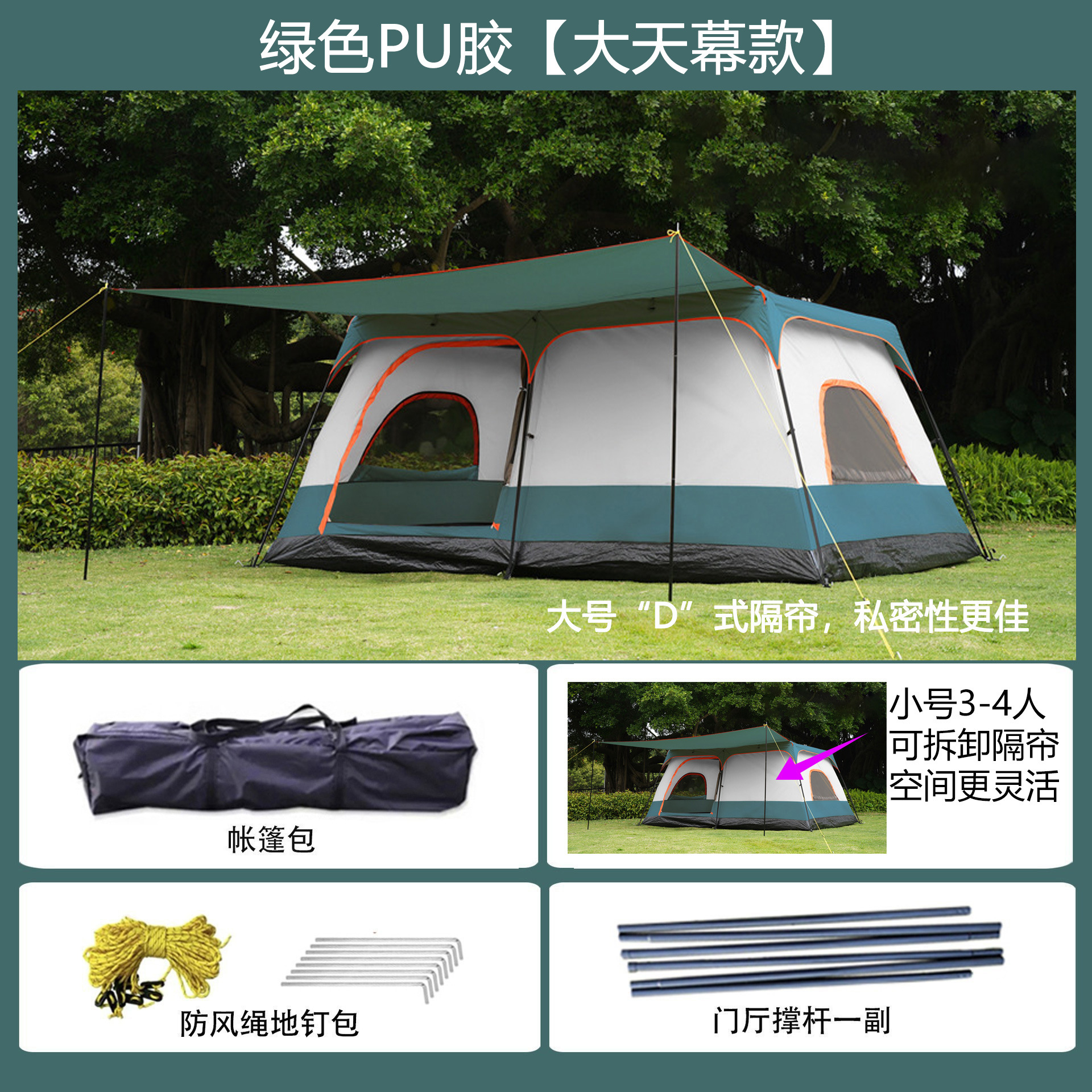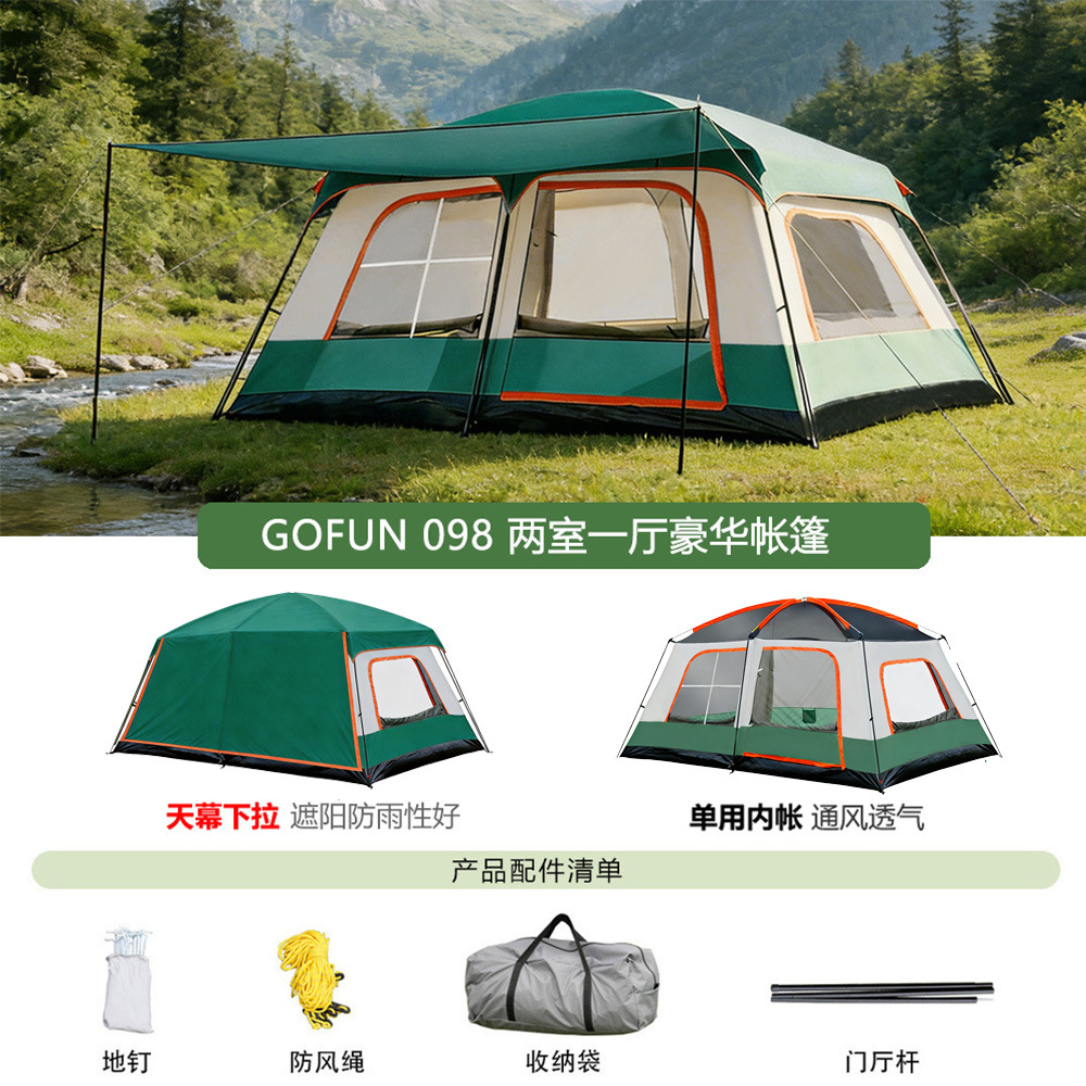 096 시리즈 도매용 3~12인용 캠프 텐트, 야외용 풀세트 2룸 1거실 텐트, 휴대용 공원 텐트스토어 가기