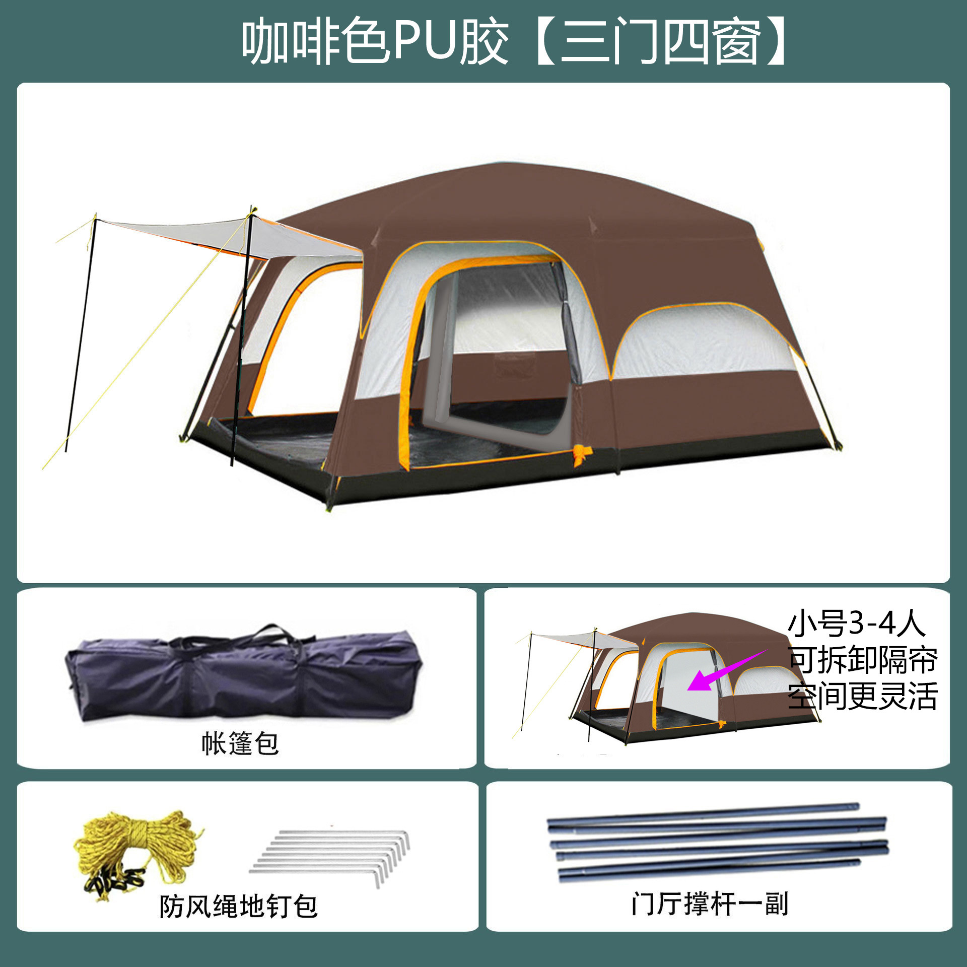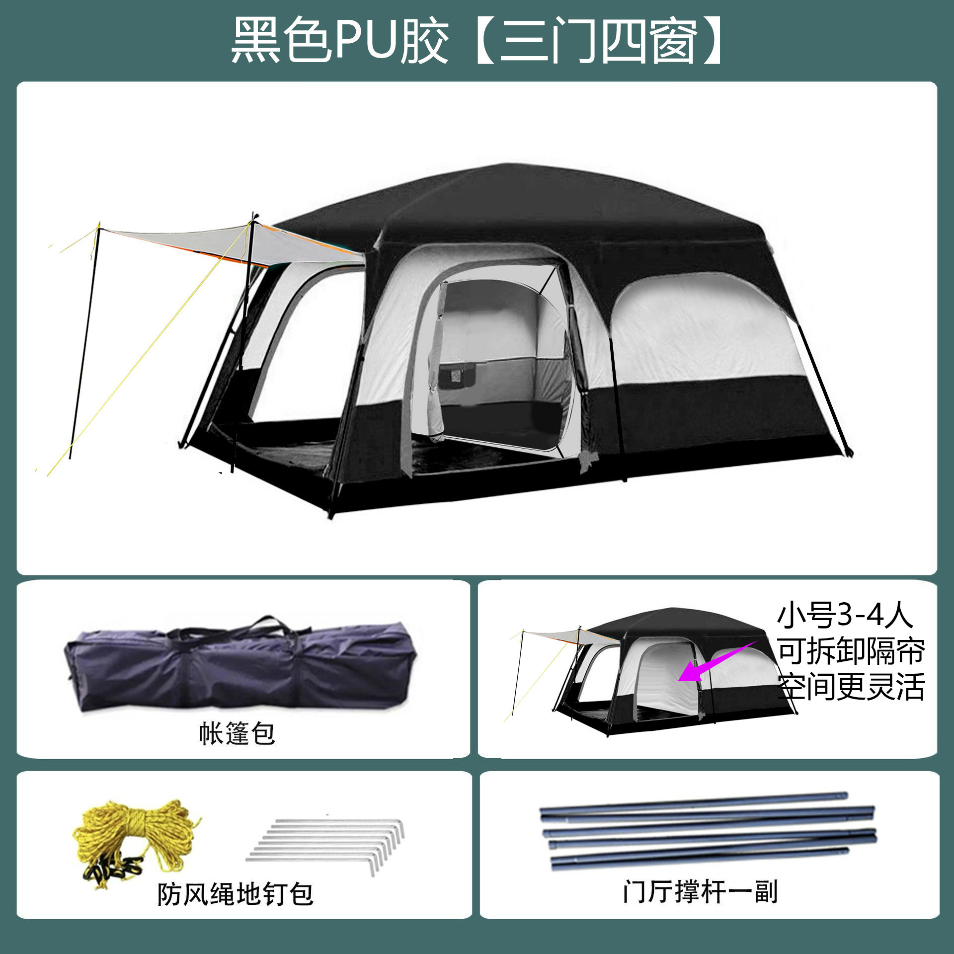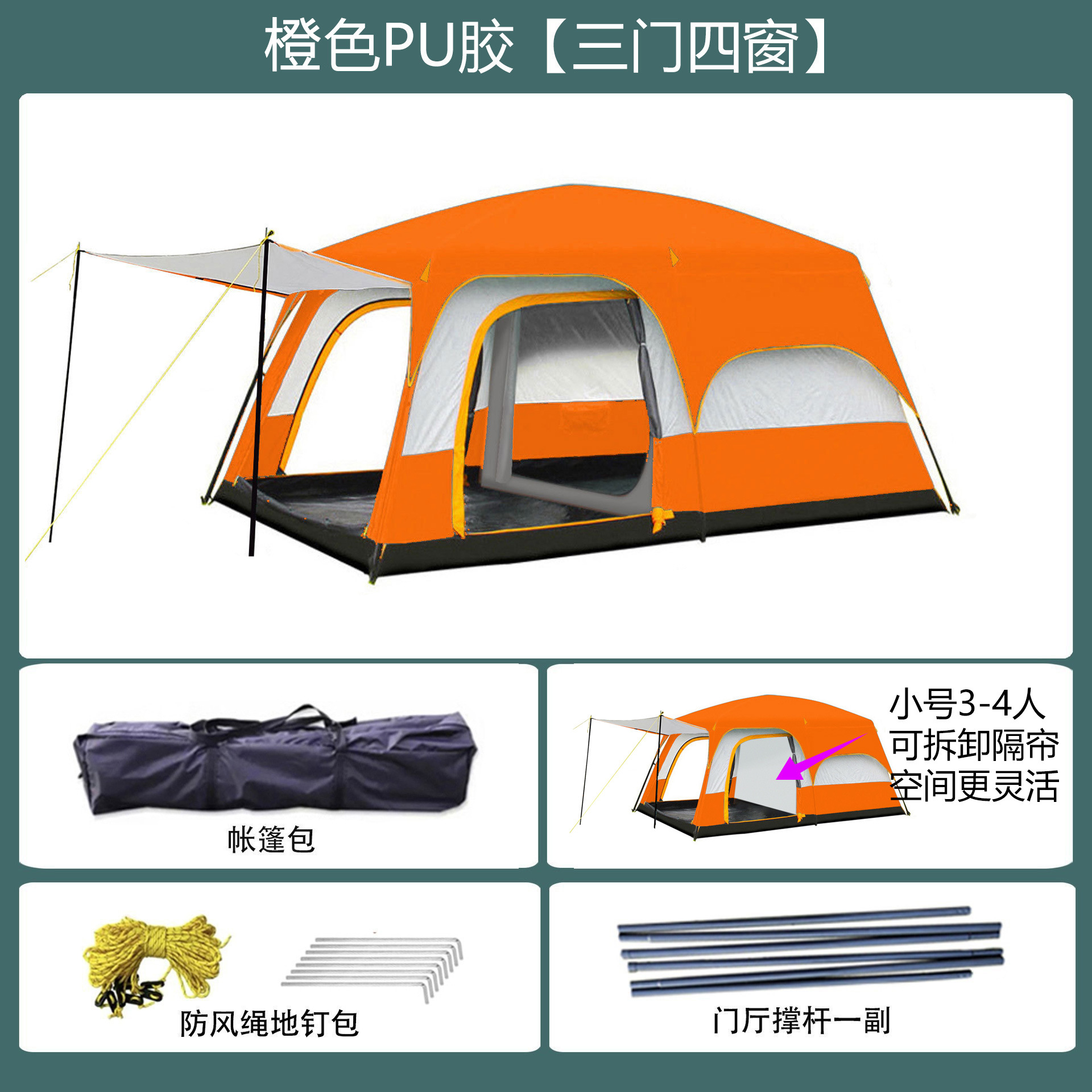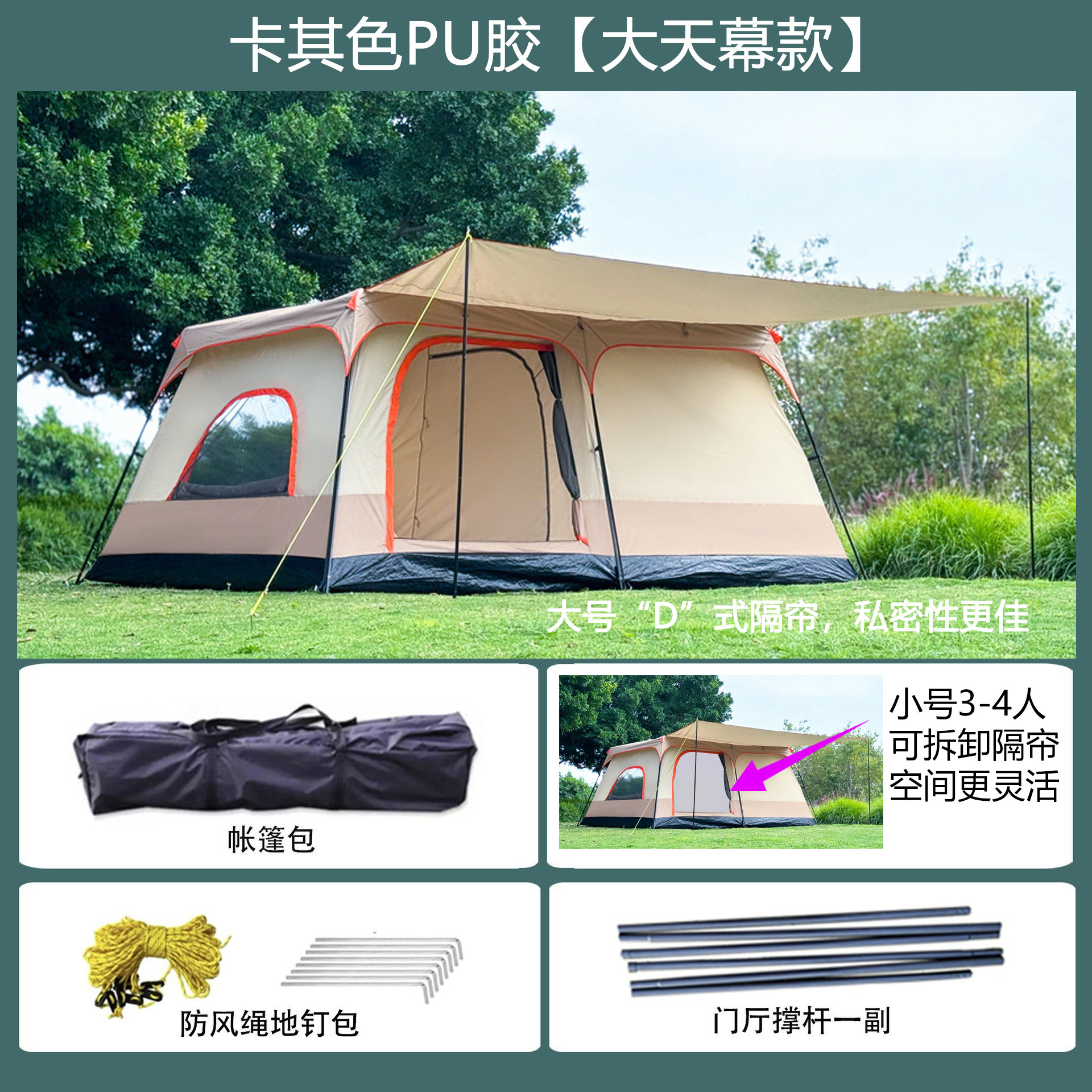 096 시리즈 도매용 3~12인용 캠프 텐트, 야외용 풀세트 2룸 1거실 텐트, 휴대용 공원 텐트스토어 가기