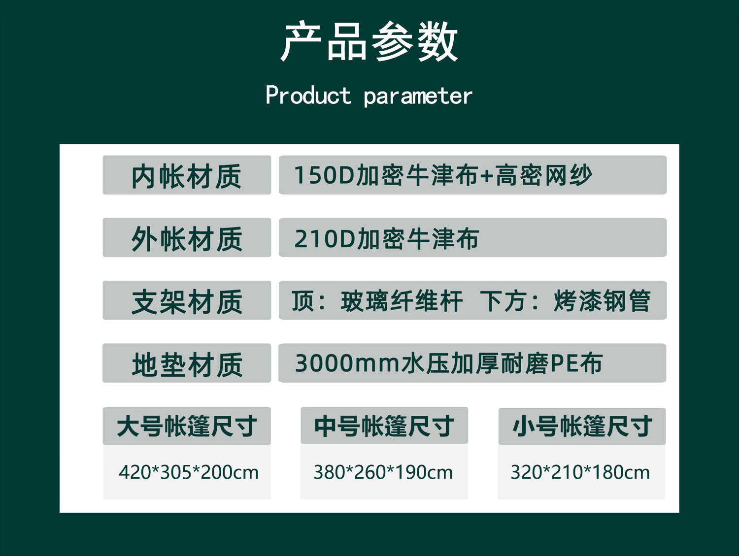 • 작은 사이즈 3~4인(320x210x180cm)
