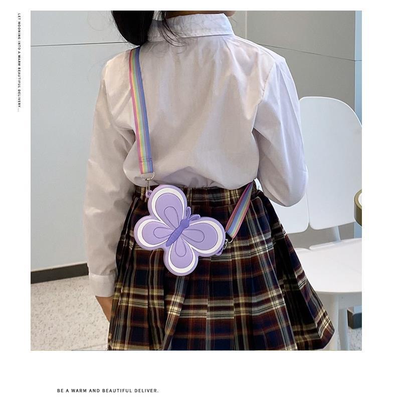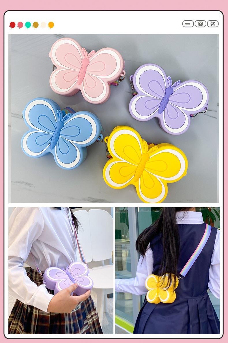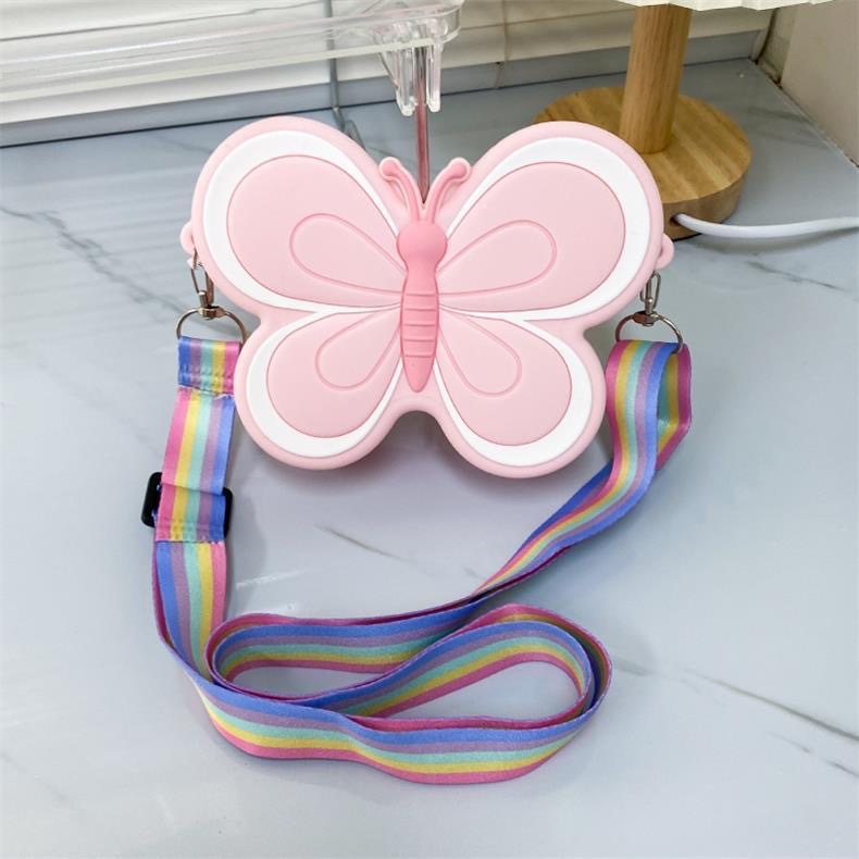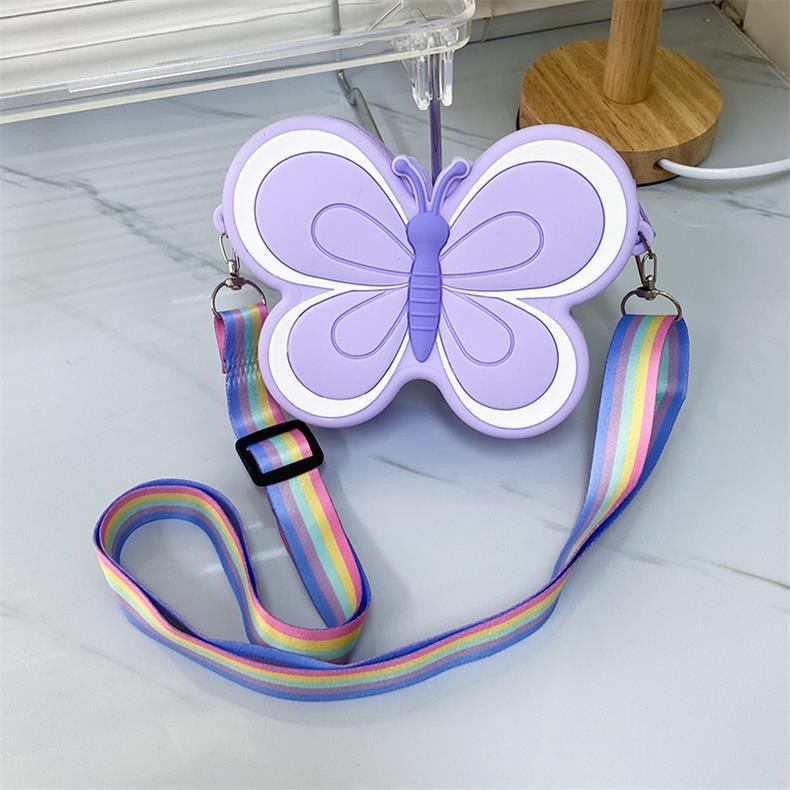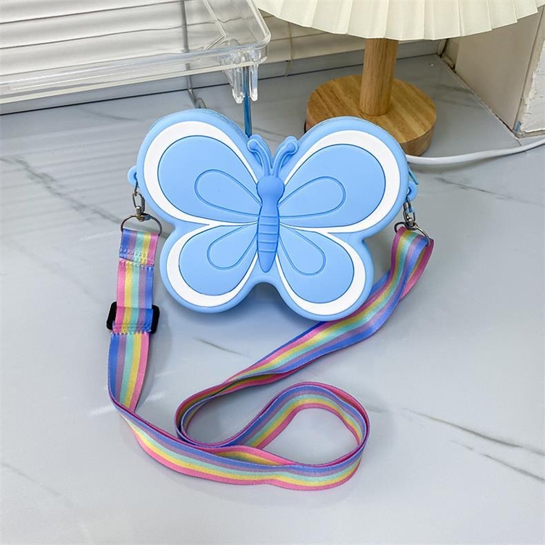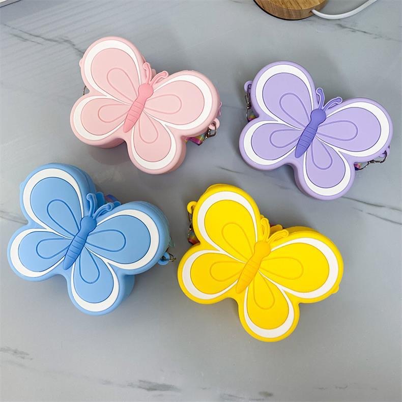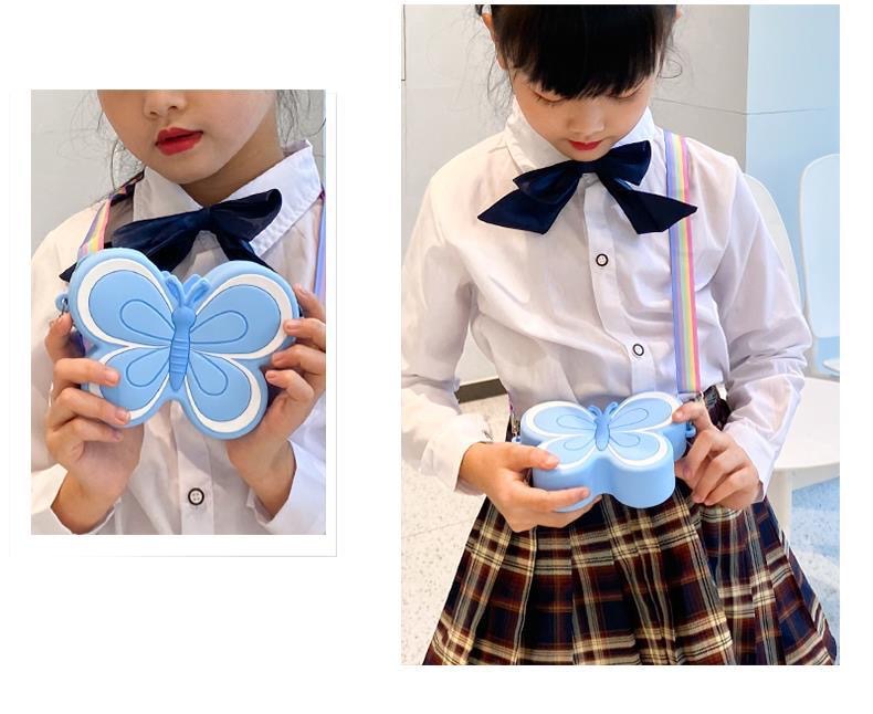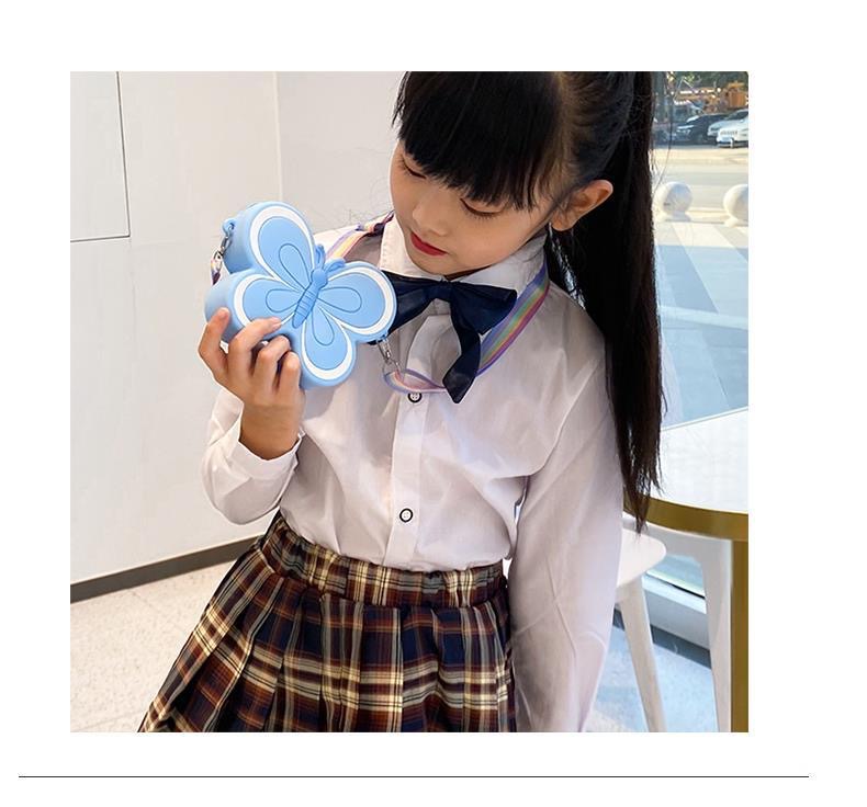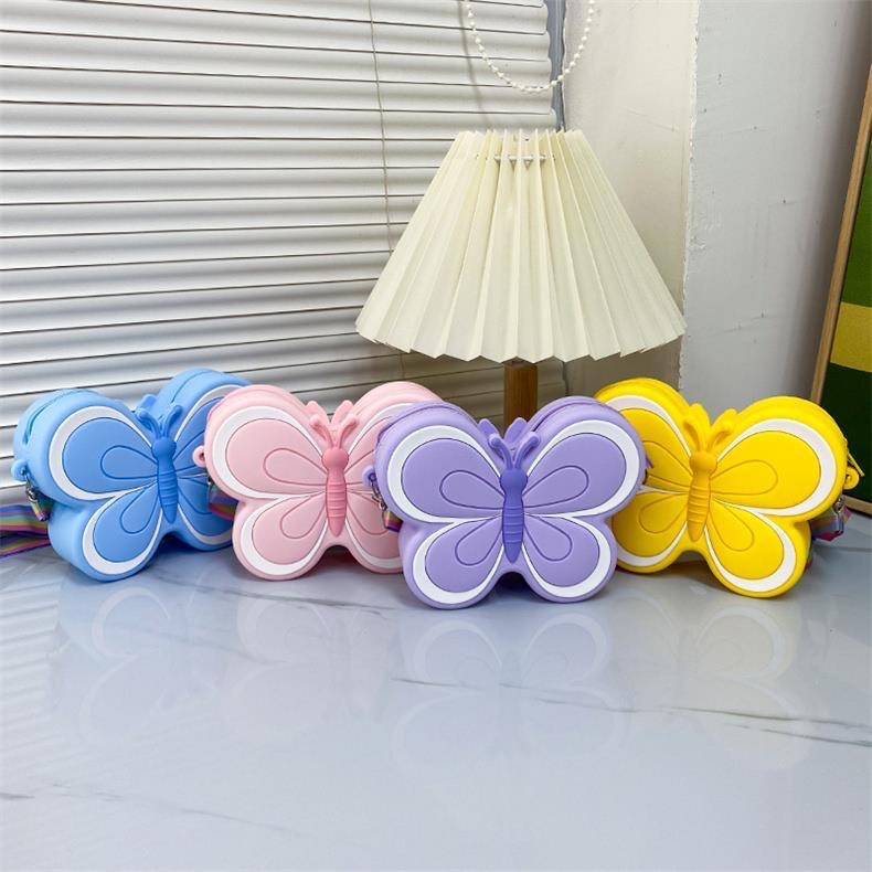 크로스 보더 어린이 실리콘 가방 만화 나비 동전 지갑 경량 경량 내마모성 소녀 선물 공주 숄더백