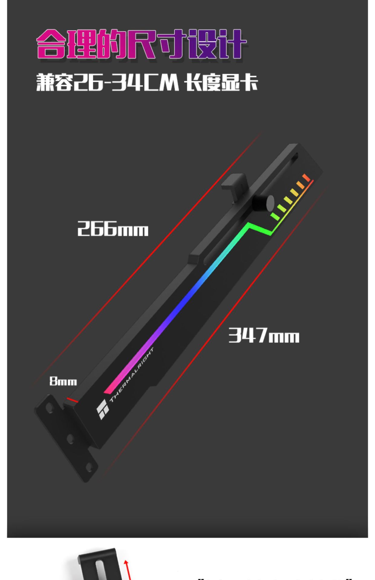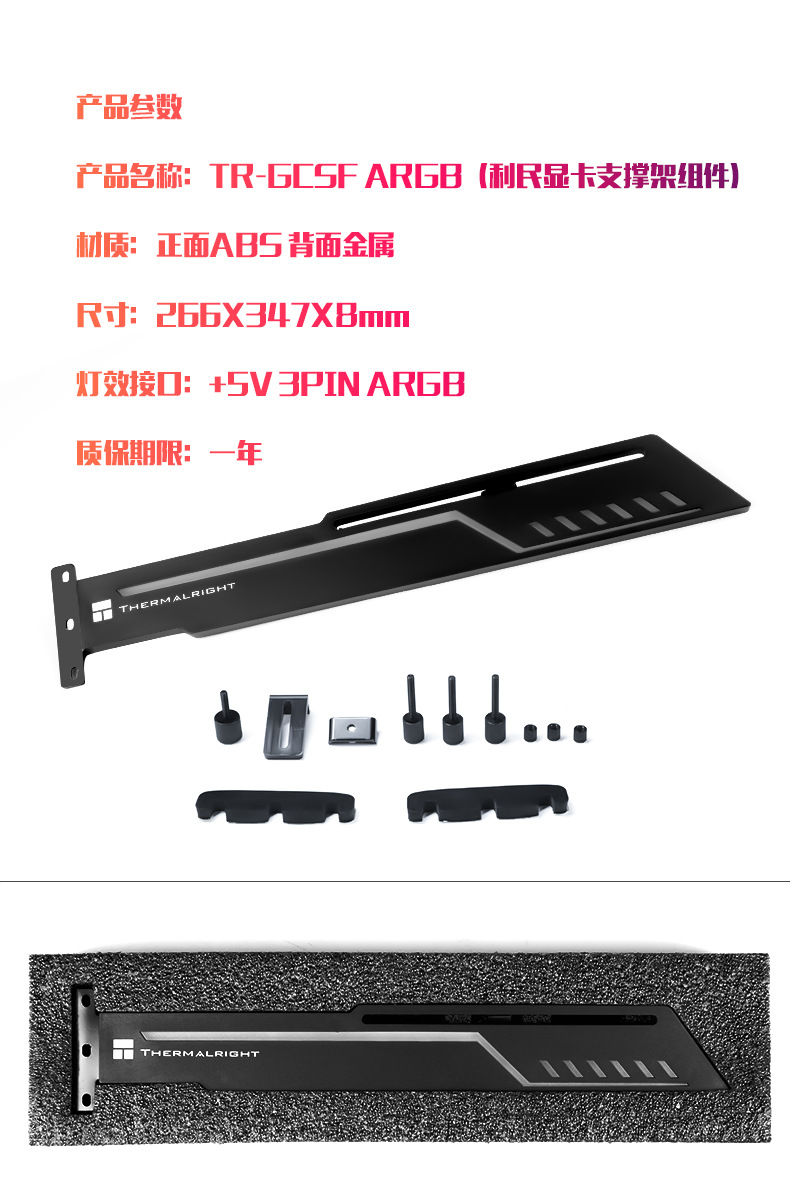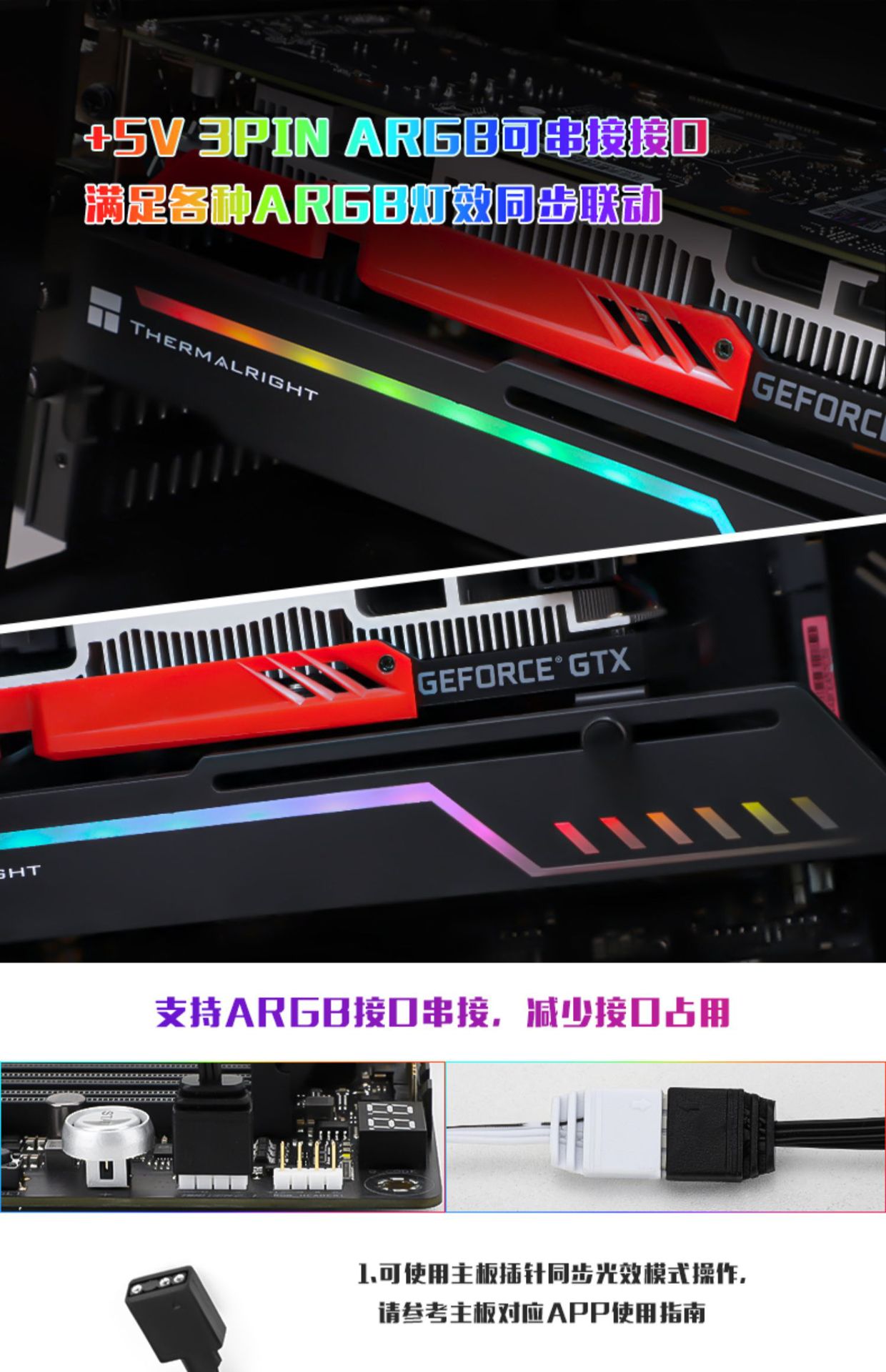 Limin TR-GCSF ARGB 그래픽 카드는 26-34cm 길이의 그래픽 카드와 호환되는 5V3 핀 매직 컬러 시리즈를 지원합니다.