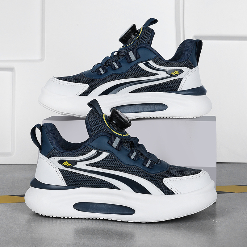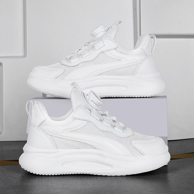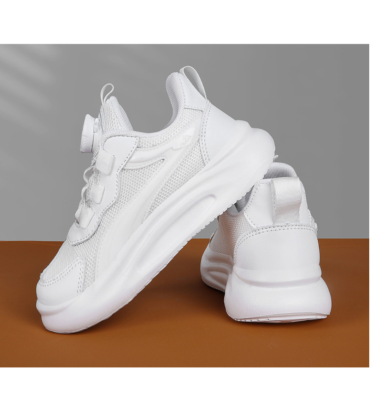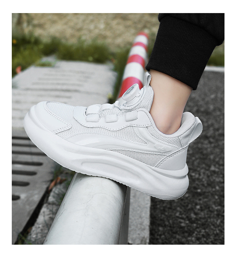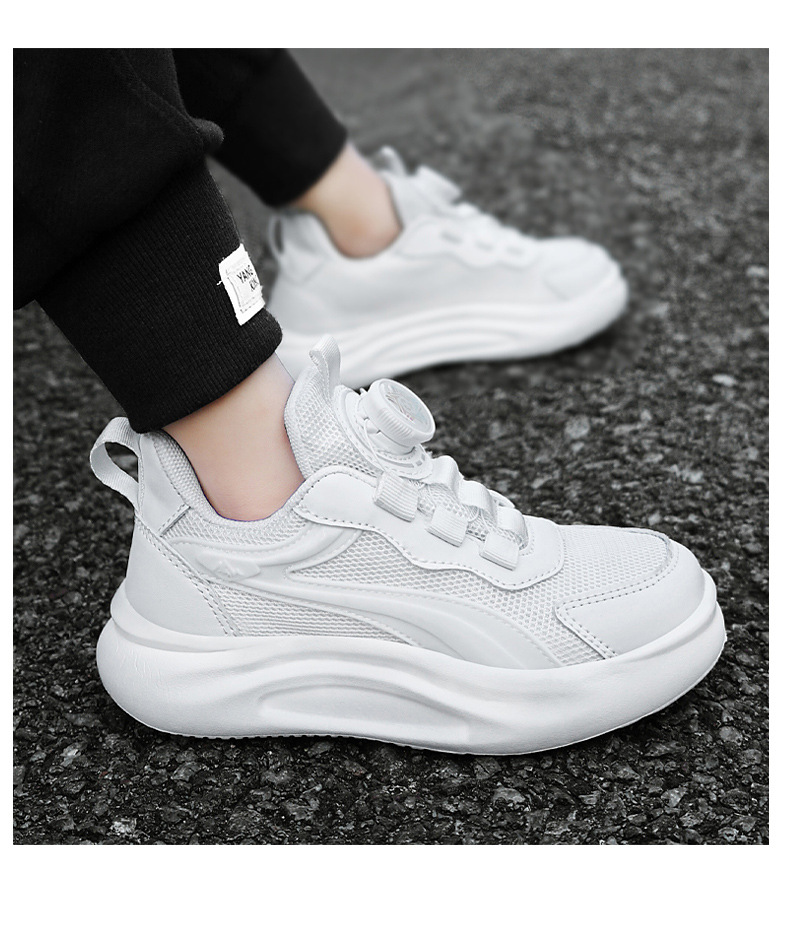 어린이 운동화 소년 가을 2023 새로운 중대형 어린이 캐주얼 보드 신발 메쉬 표면 소년 흰색 신발 회전 버튼