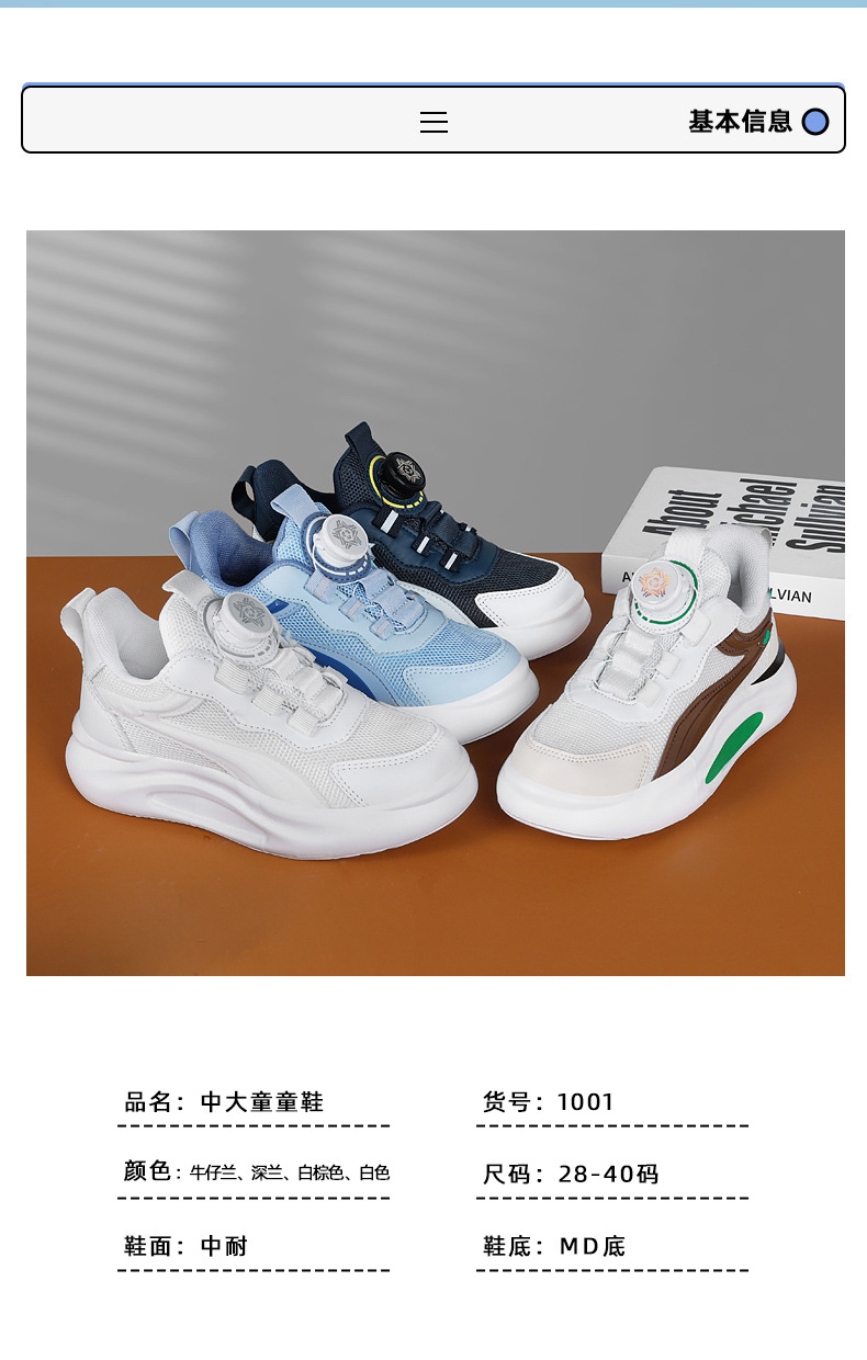 어린이 운동화 소년 가을 2023 새로운 중대형 어린이 캐주얼 보드 신발 메쉬 표면 소년 흰색 신발 회전 버튼스토어 가기