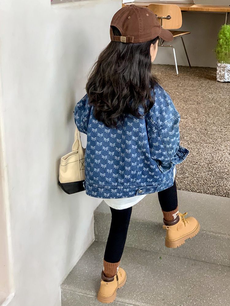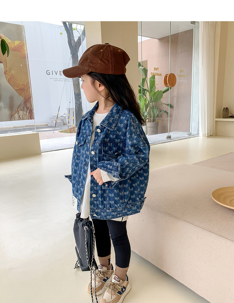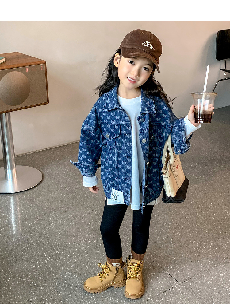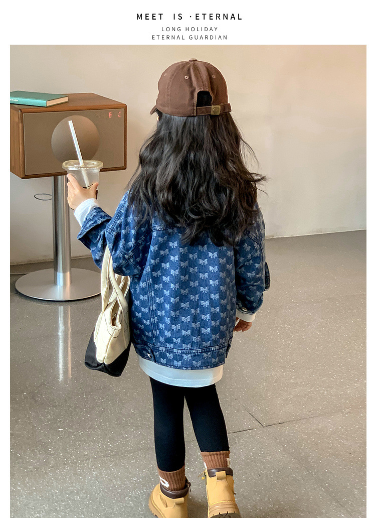 여아용 자켓 2025 어린이 가을 자카드 데님 아우터 아기용 다용도 루즈 셔츠 탑 레트로 스타일스토어 가기