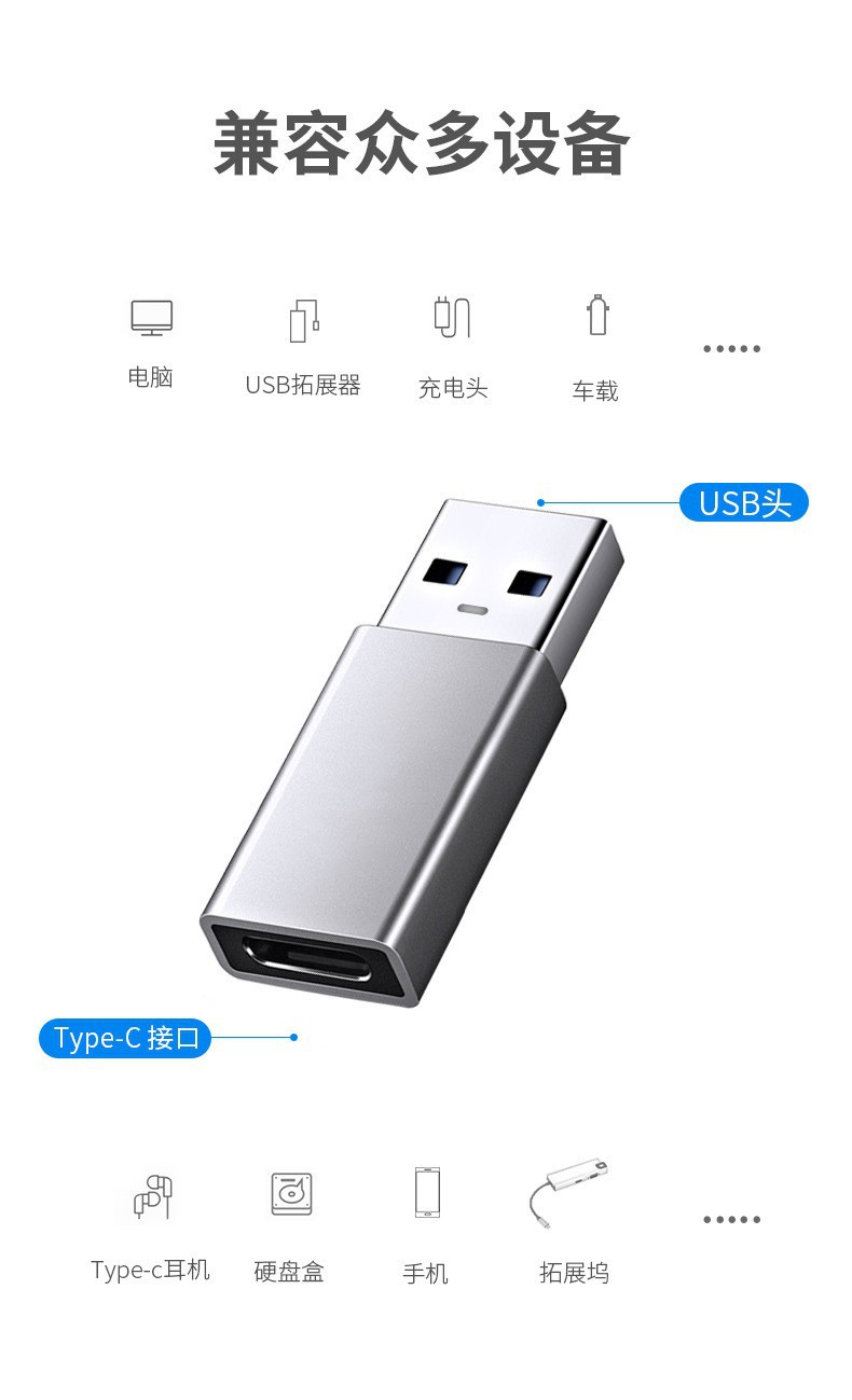 고속 Typec to usb3.0 어댑터 휴대 전화 고속 충전 타입-c 혁명 USB 여성 otg 어댑터스토어 가기