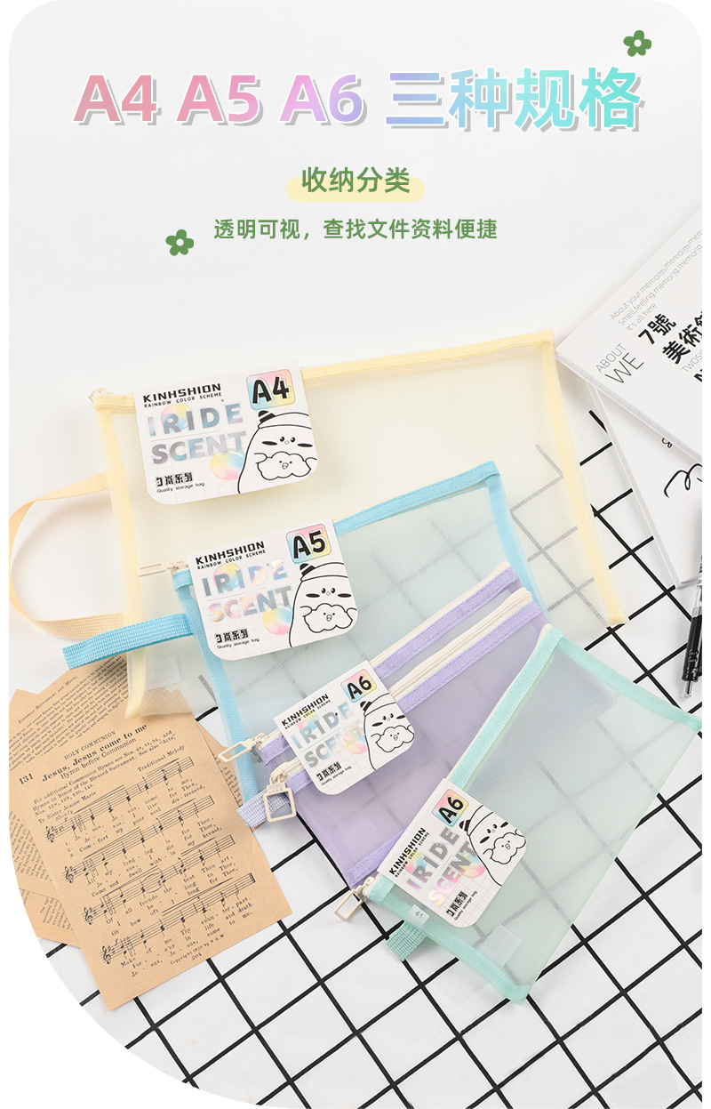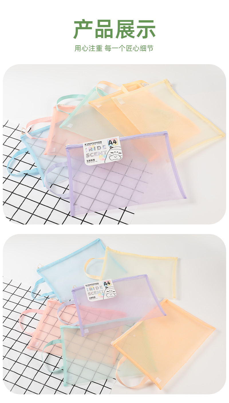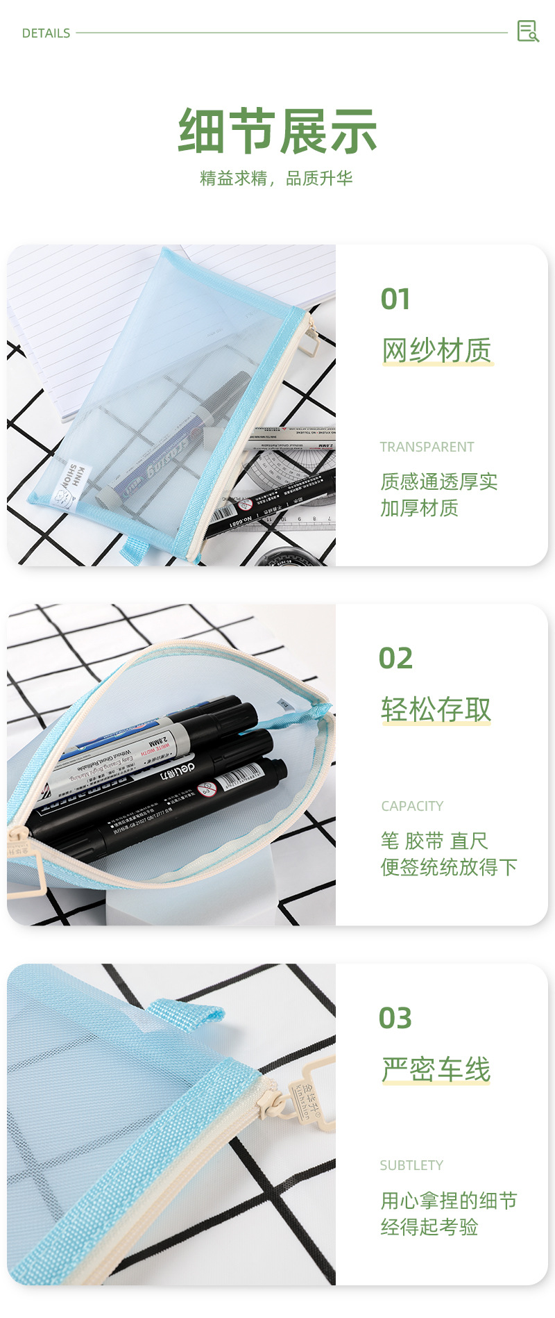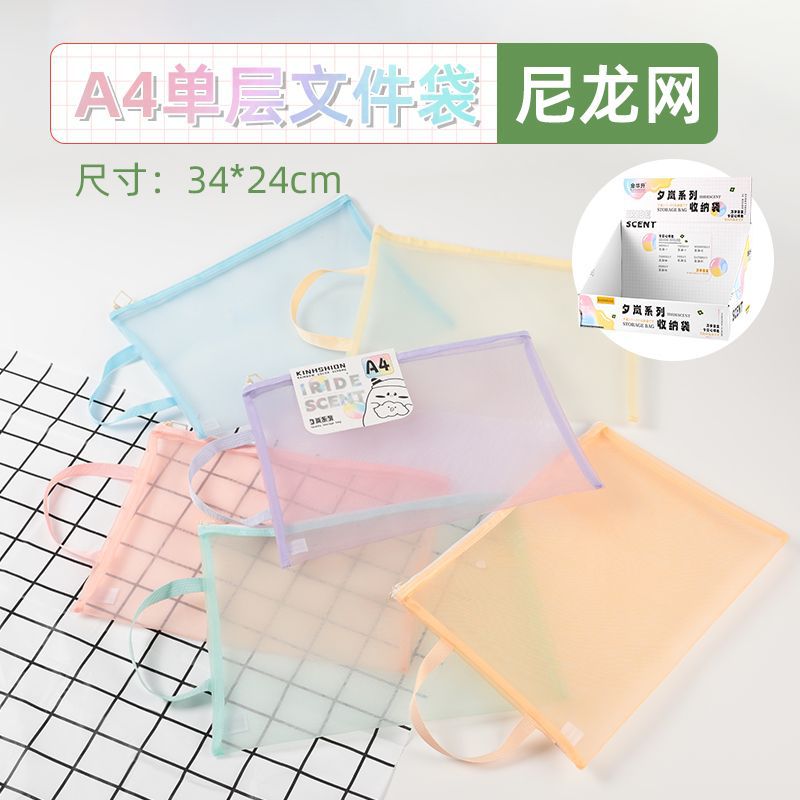 자일란 시리즈 파일 가방 심플 투명 메쉬 연필 가방 하이 컬러 값 대용량 문구 케이스 연필 가방스토어 가기
