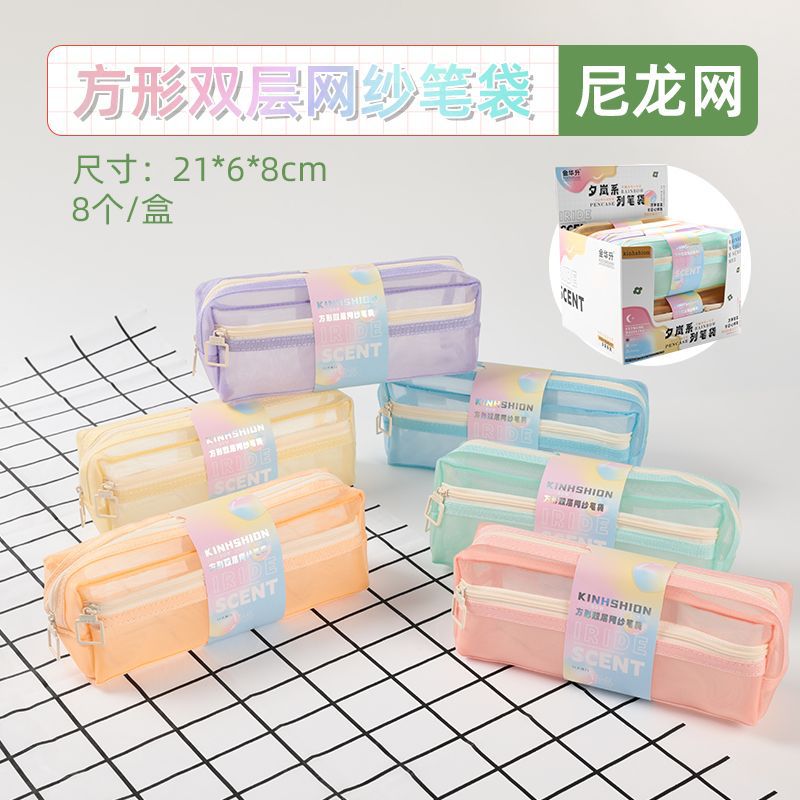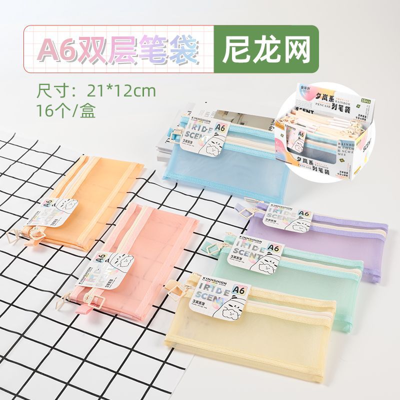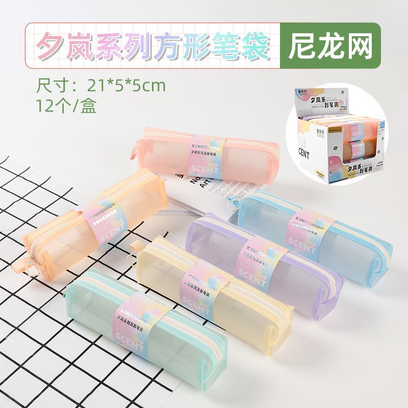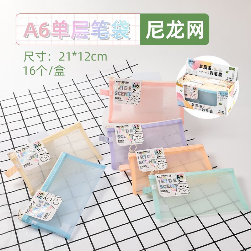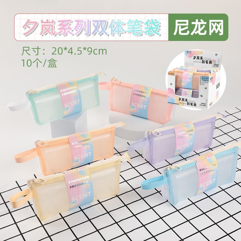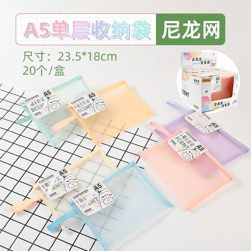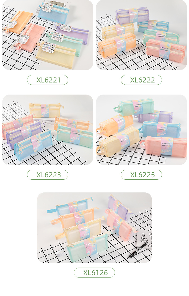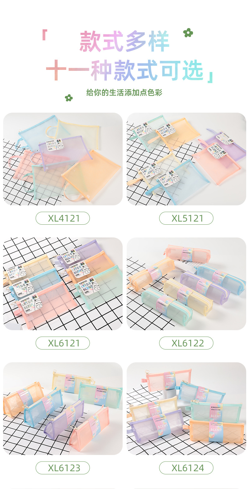 자일란 시리즈 파일 가방 심플 투명 메쉬 연필 가방 하이 컬러 값 대용량 문구 케이스 연필 가방
