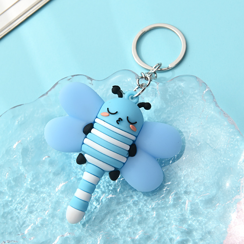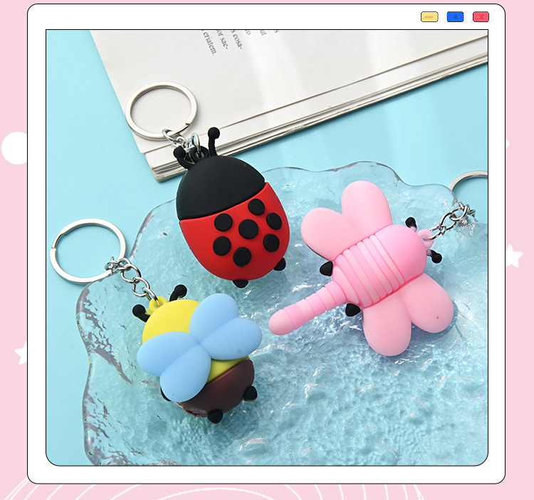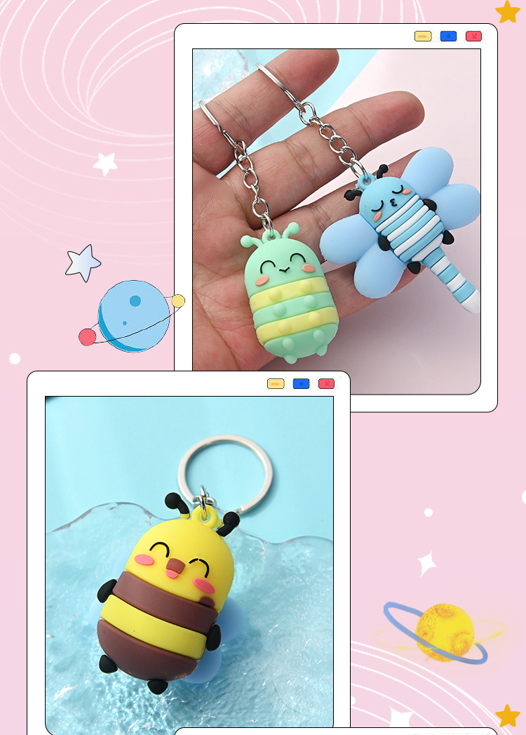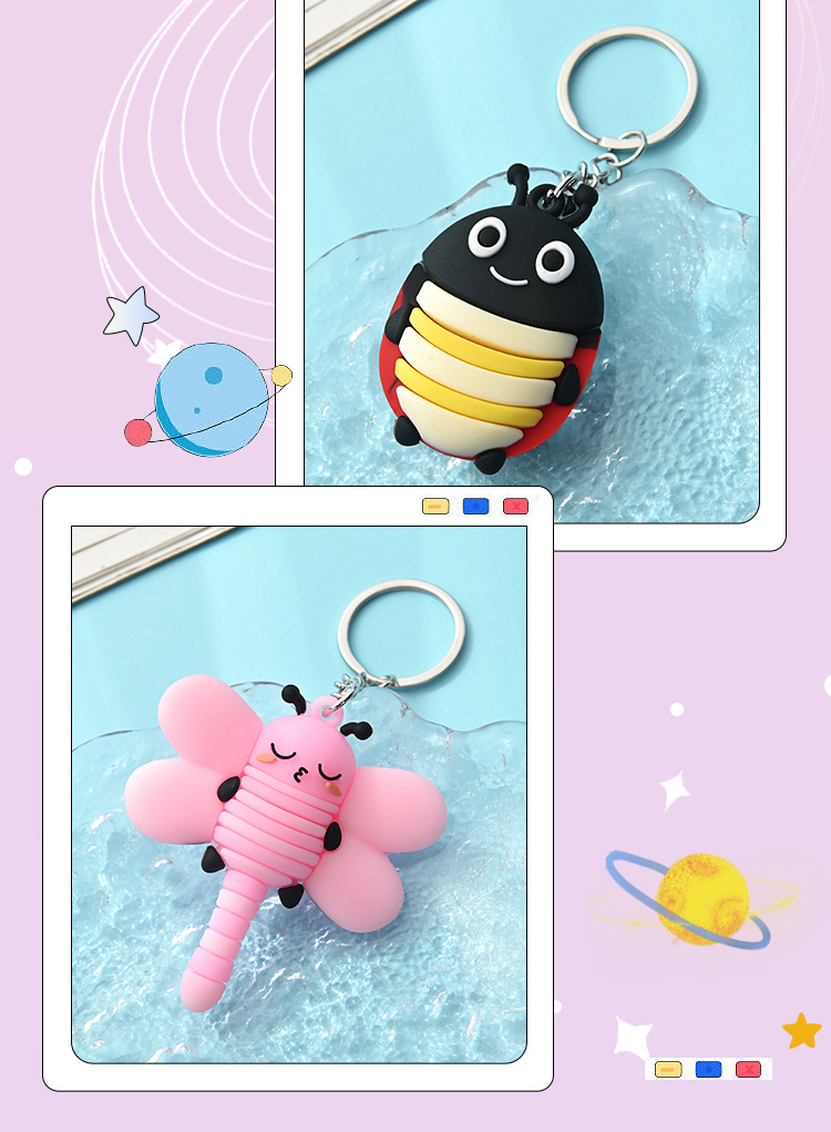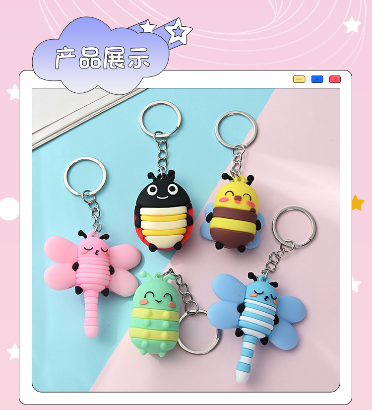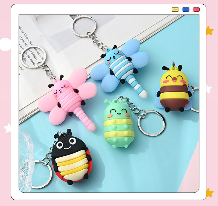만화 부드러운 플라스틱 3 차원 잠자리 꿀벌 키 체인 귀여운 애벌레 7 성급 무당 벌레 인형 키 체인 펜던트스토어 가기
