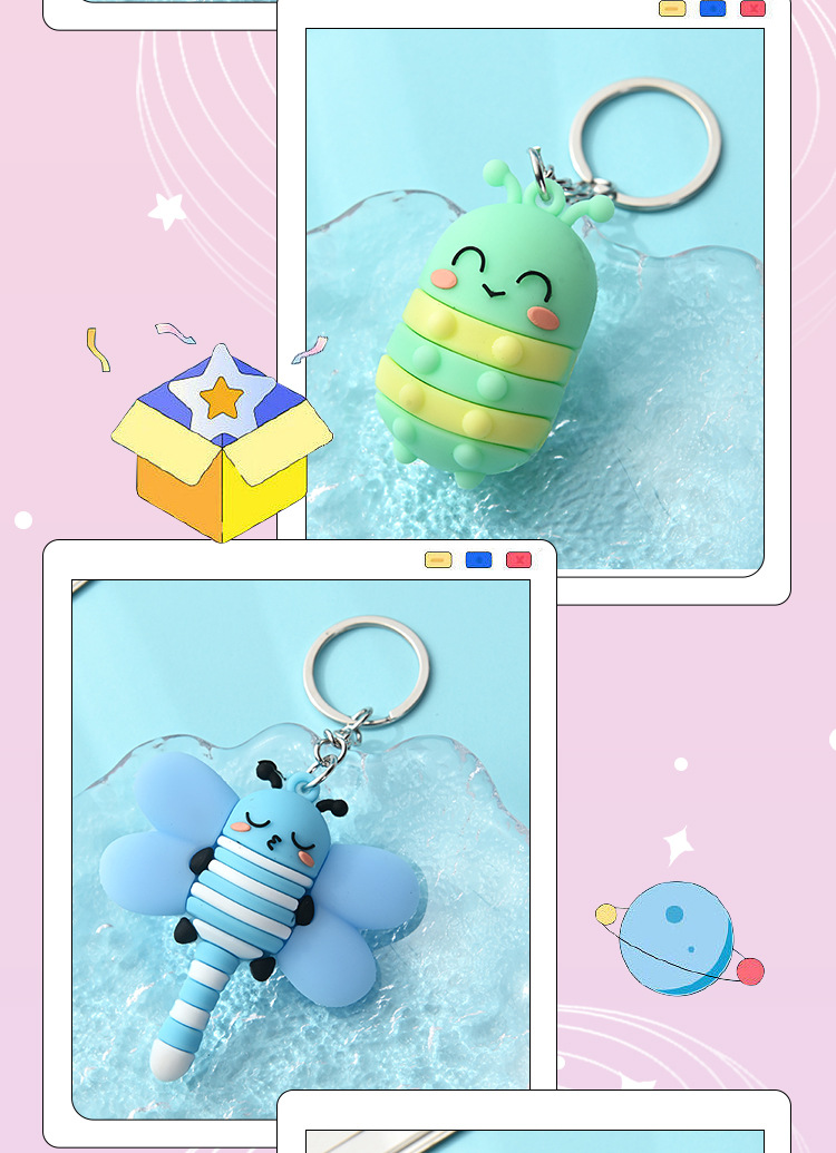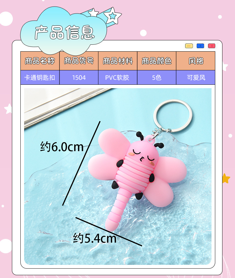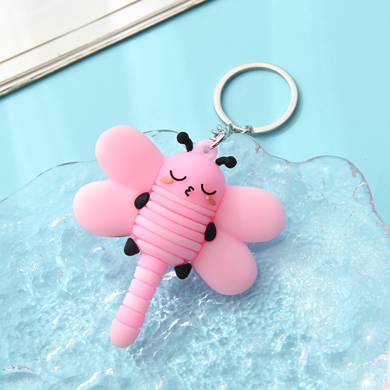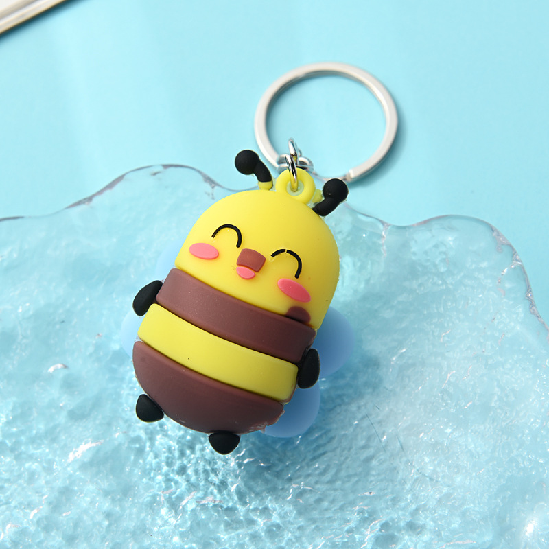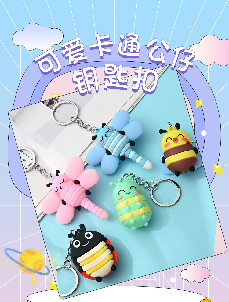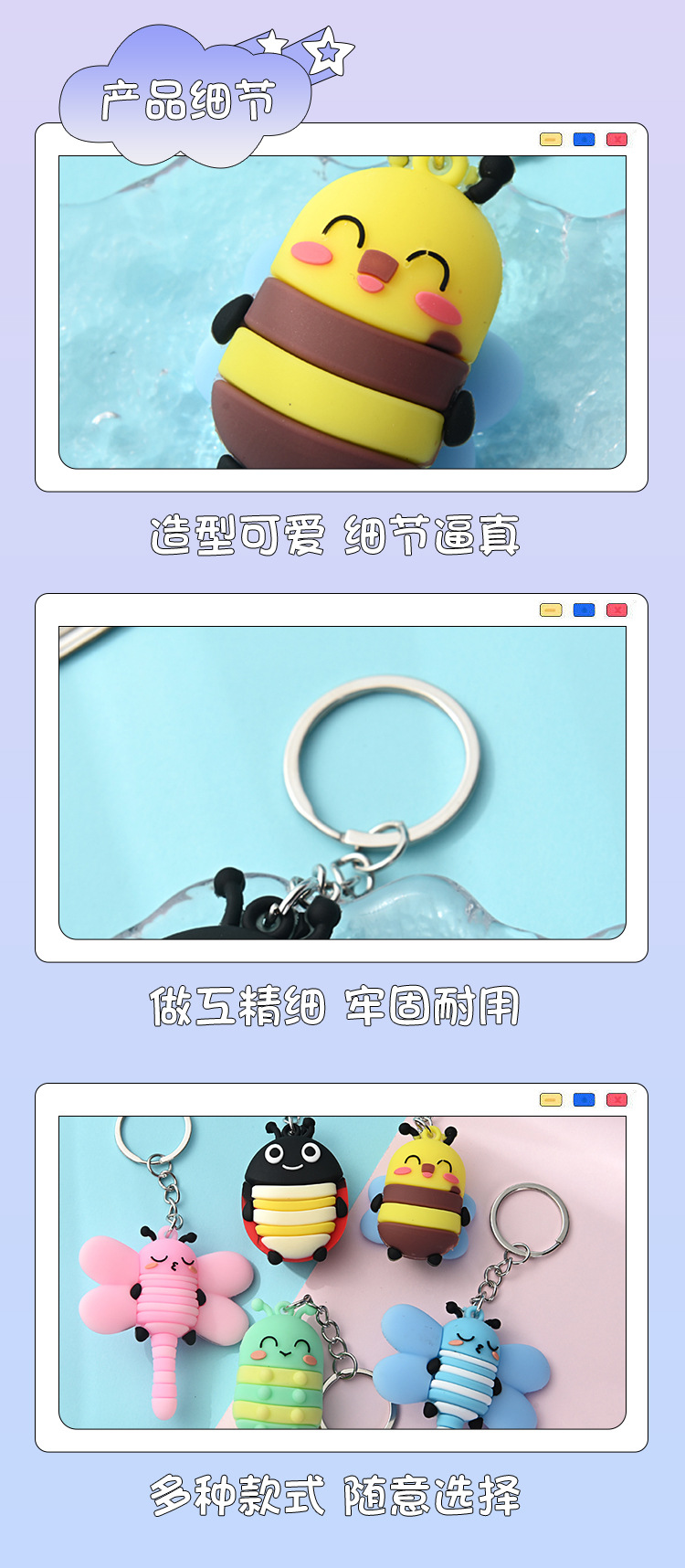 만화 부드러운 플라스틱 3 차원 잠자리 꿀벌 키 체인 귀여운 애벌레 7 성급 무당 벌레 인형 키 체인 펜던트스토어 가기