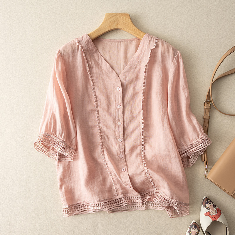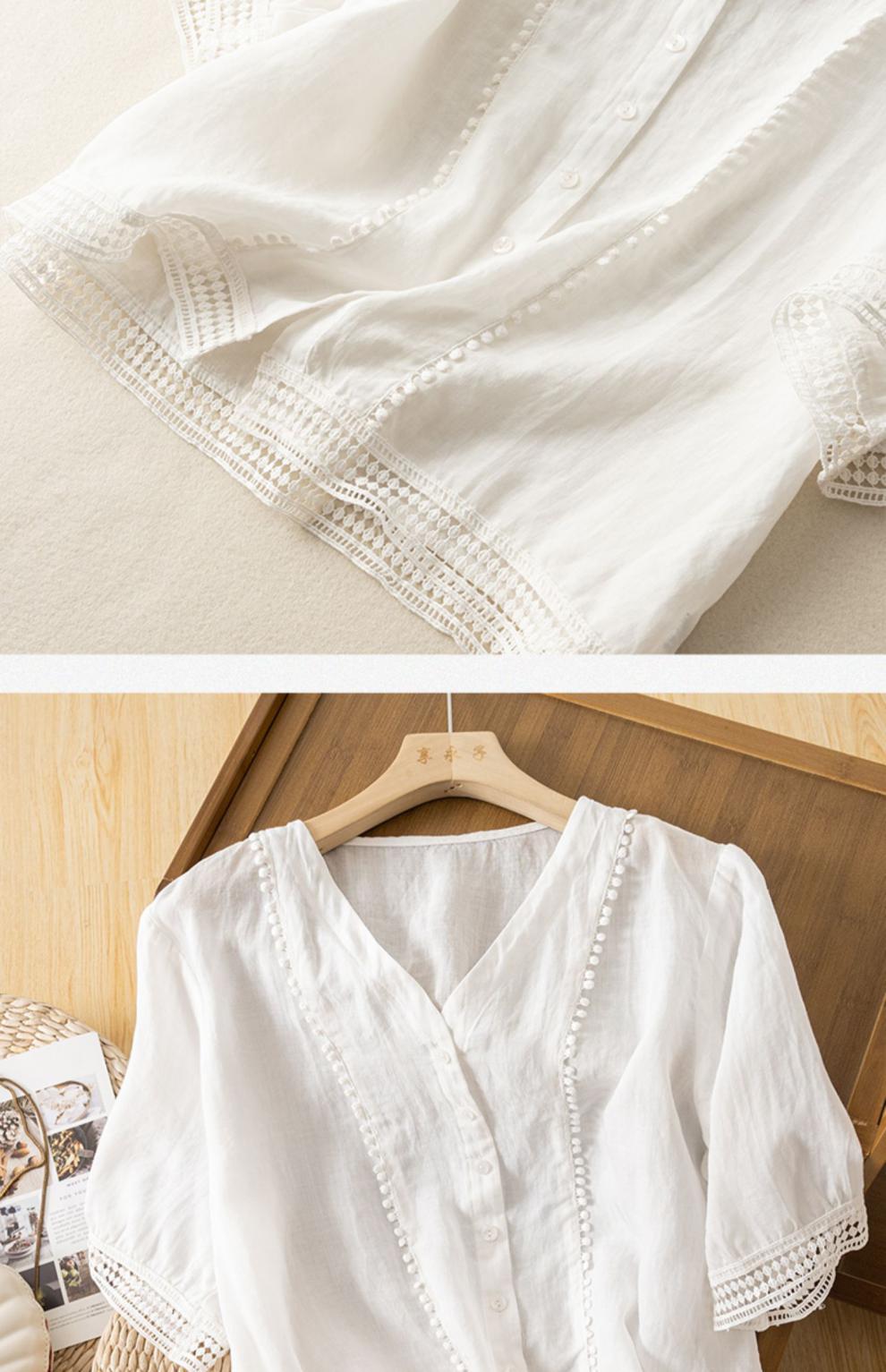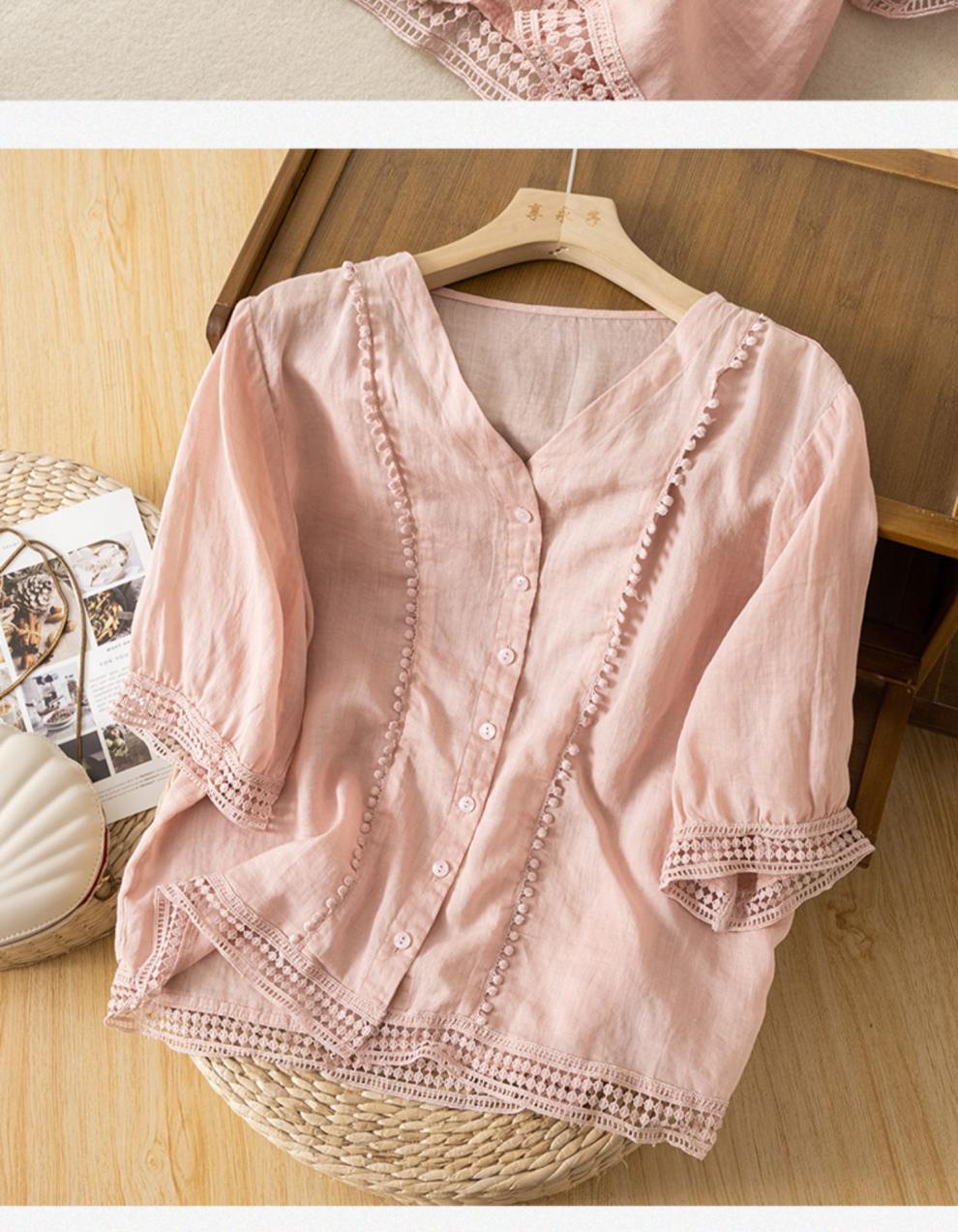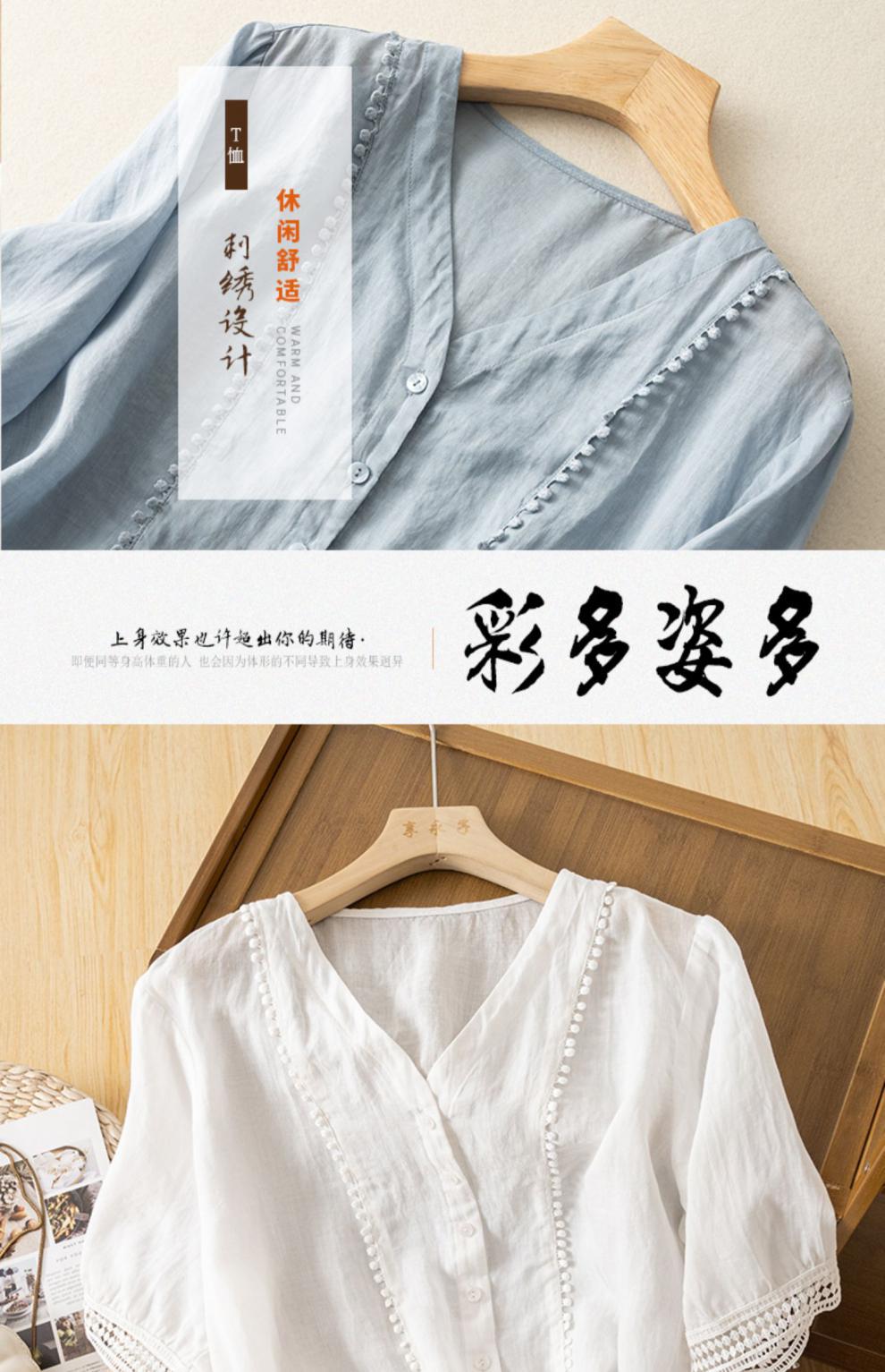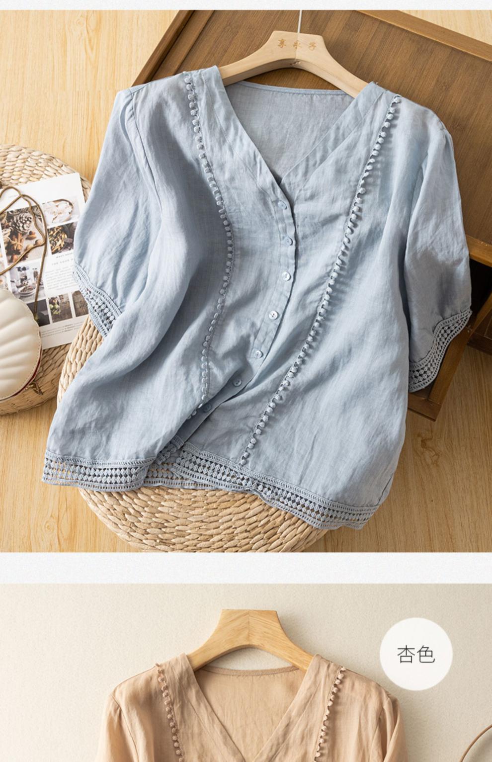 미드 슬리브 코튼 린넨 Gouhua 셔츠 여성용 여름 예술적인 레트로 코튼 린넨 스몰 셔츠 우아한 모든 경기 2023 새로운 스타일스토어 가기