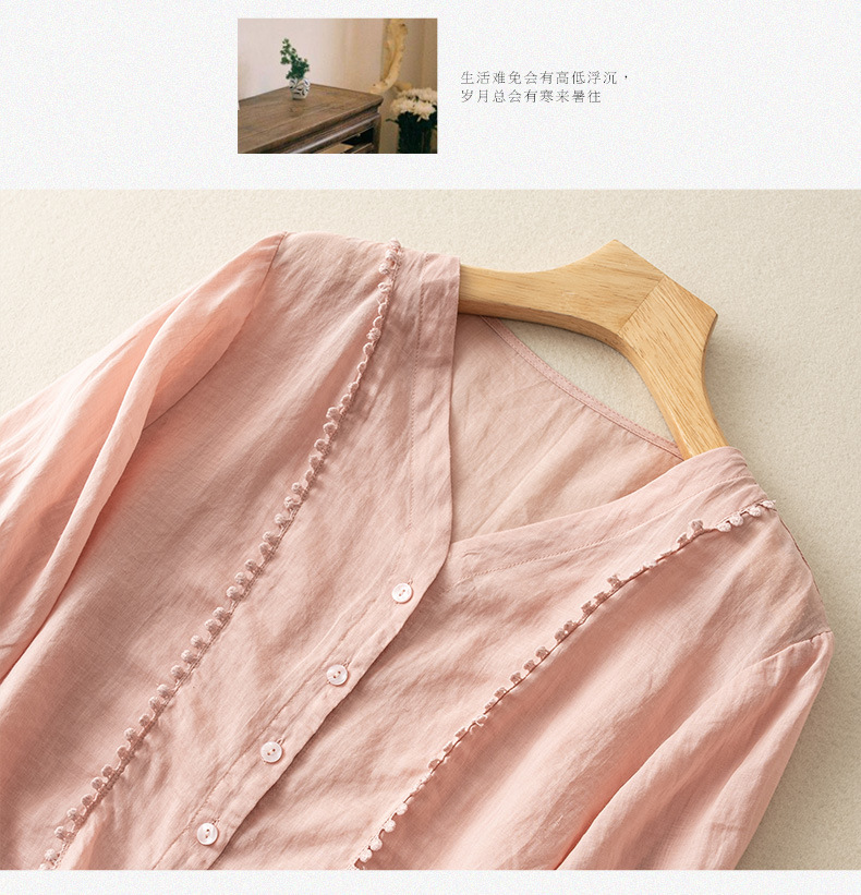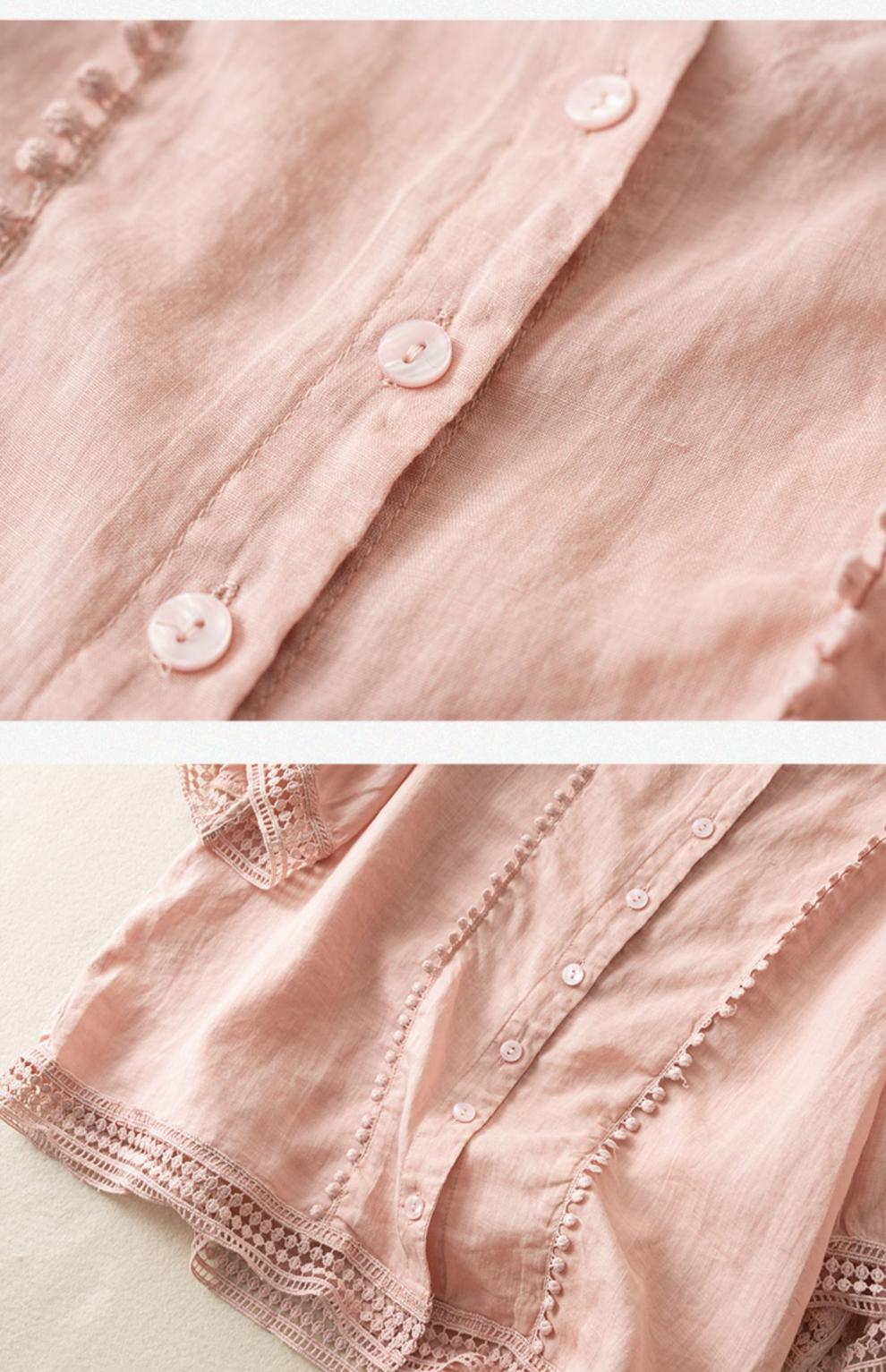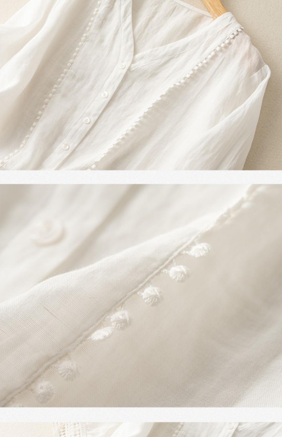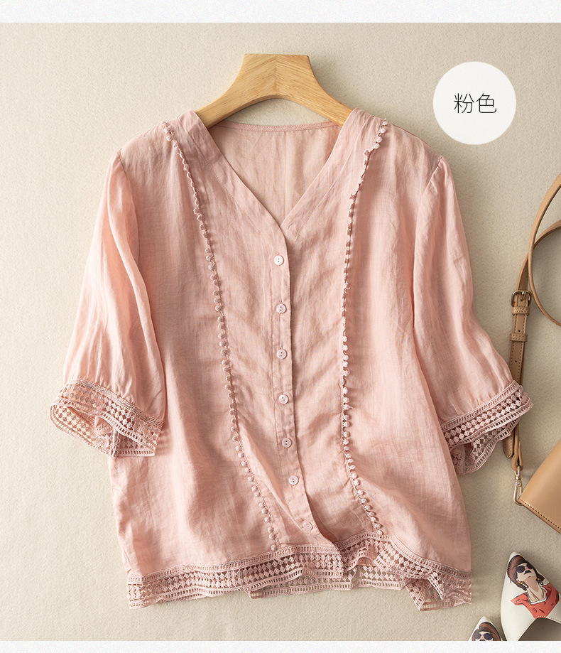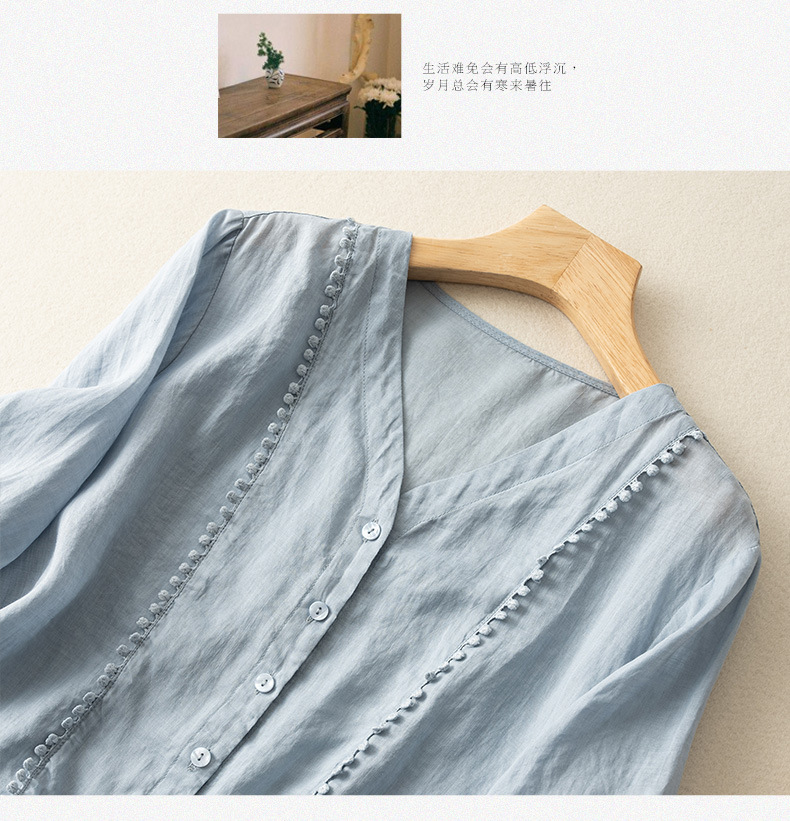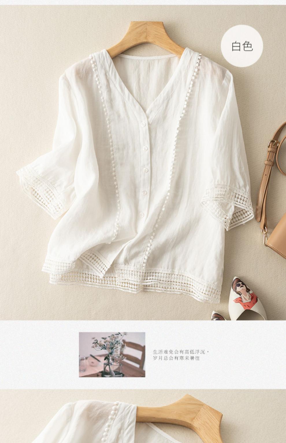미드 슬리브 코튼 린넨 Gouhua 셔츠 여성용 여름 예술적인 레트로 코튼 린넨 스몰 셔츠 우아한 모든 경기 2023 새로운 스타일