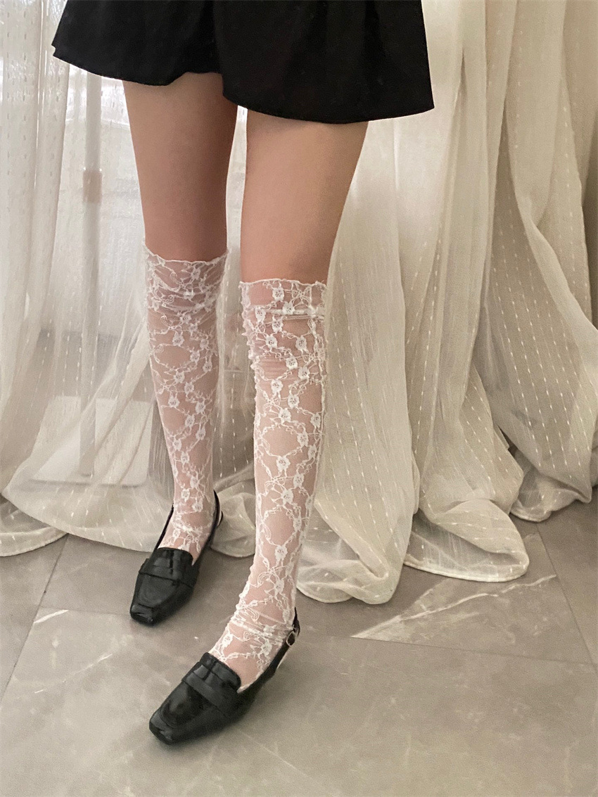 한국 그물 빨간 탄성 레이스 무릎 양말 높은 스타킹 더미 양말 조수 양말 라이브 도매 세대의 떨림