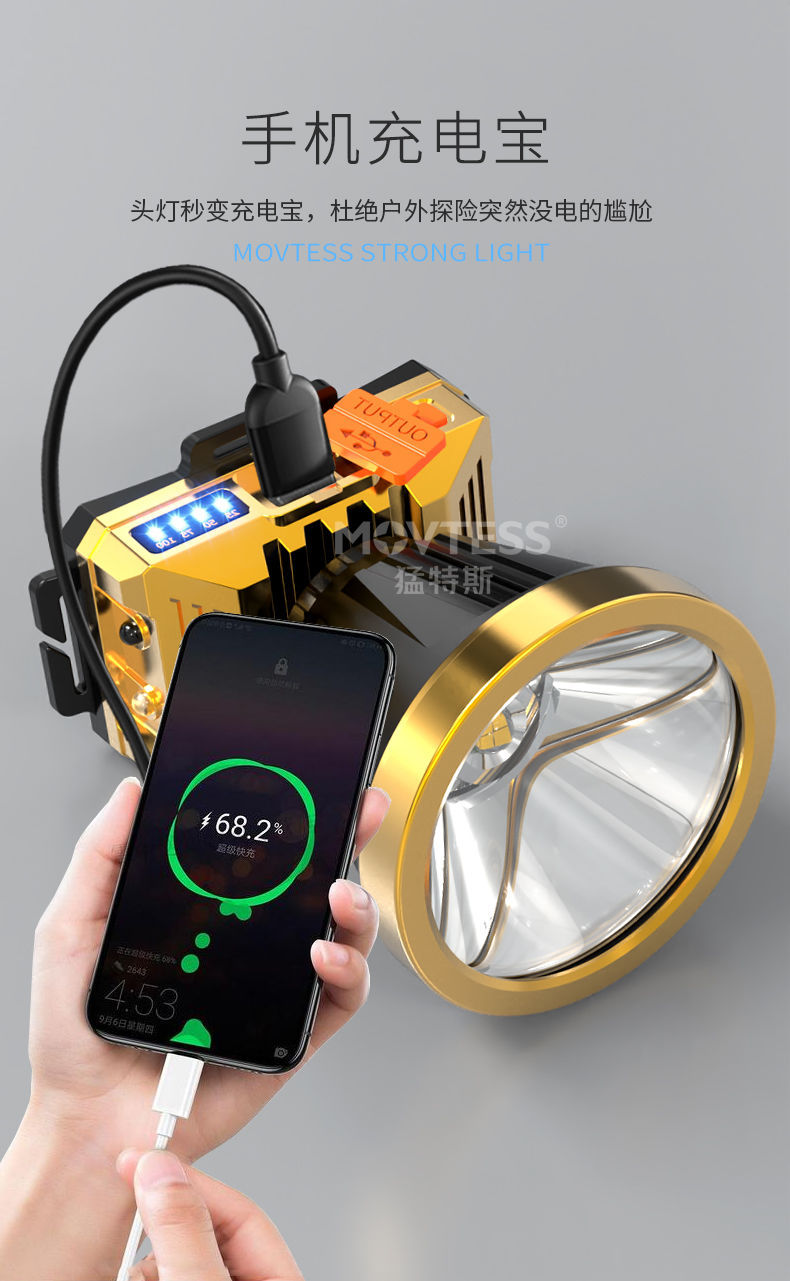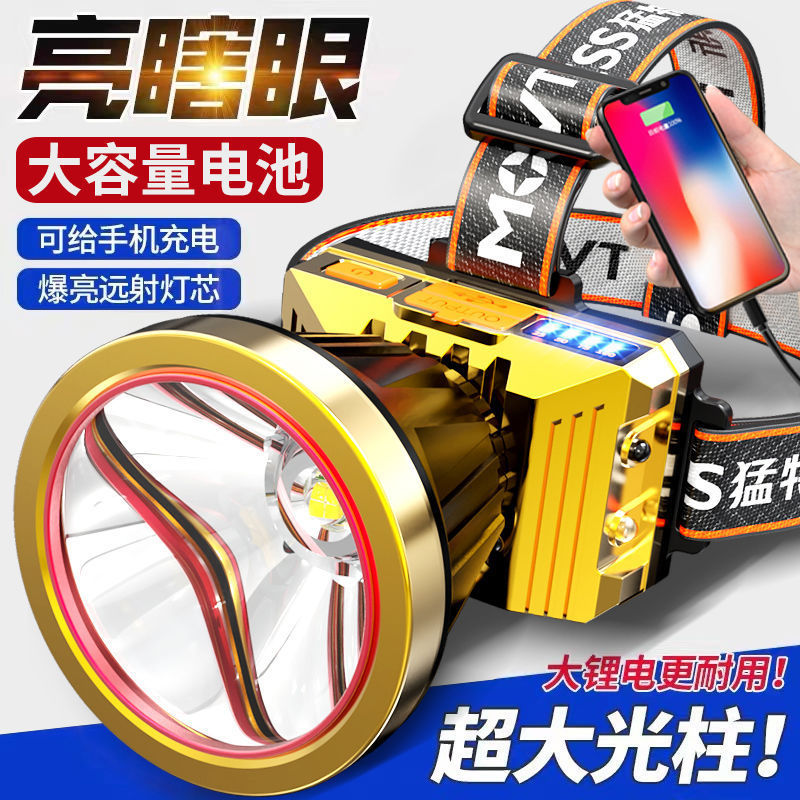 팩토리 다이렉트 뉴 강력 라이트 장거리 충전식 방수 휴대용 헤드마운트 야외 가정용 충전 보물 헤드라이트스토어 가기
