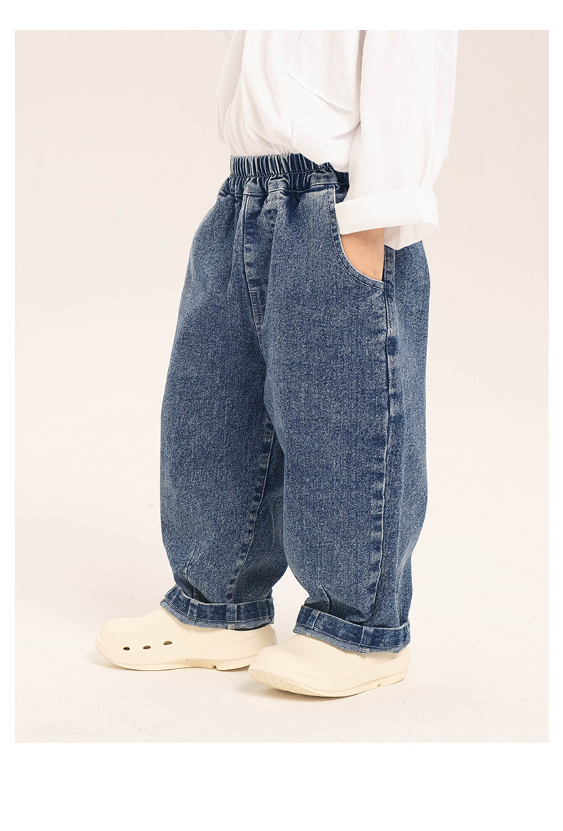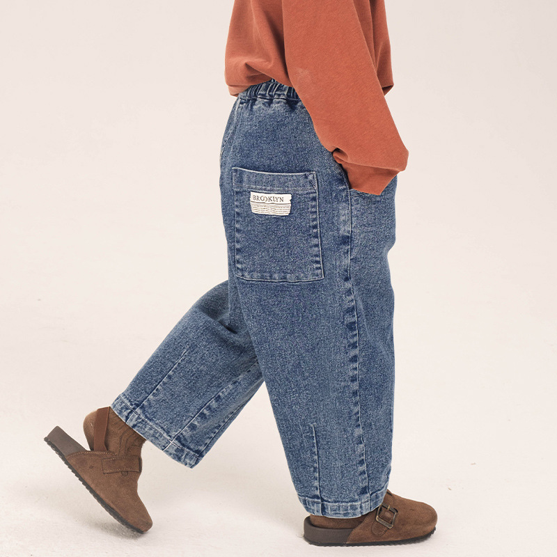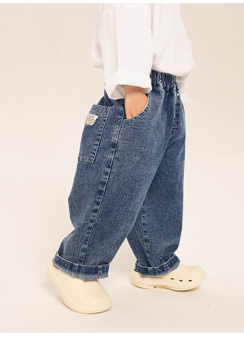 창궈 의류 남아 데님 팬츠 봄옷 루즈핏 캐주얼 팬츠 중소형 아동용 봄가을 바지 롱팬츠 해외 직배송