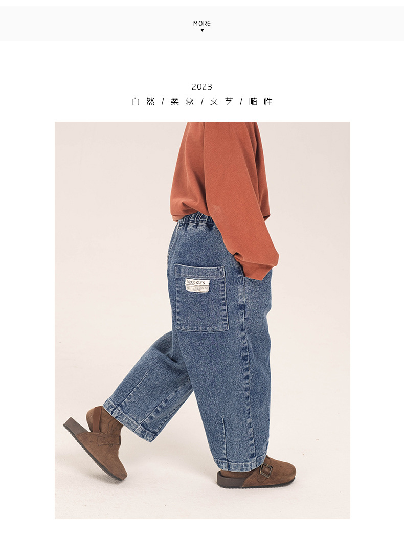 창궈 의류 남아 데님 팬츠 봄옷 루즈핏 캐주얼 팬츠 중소형 아동용 봄가을 바지 롱팬츠 해외 직배송스토어 가기
