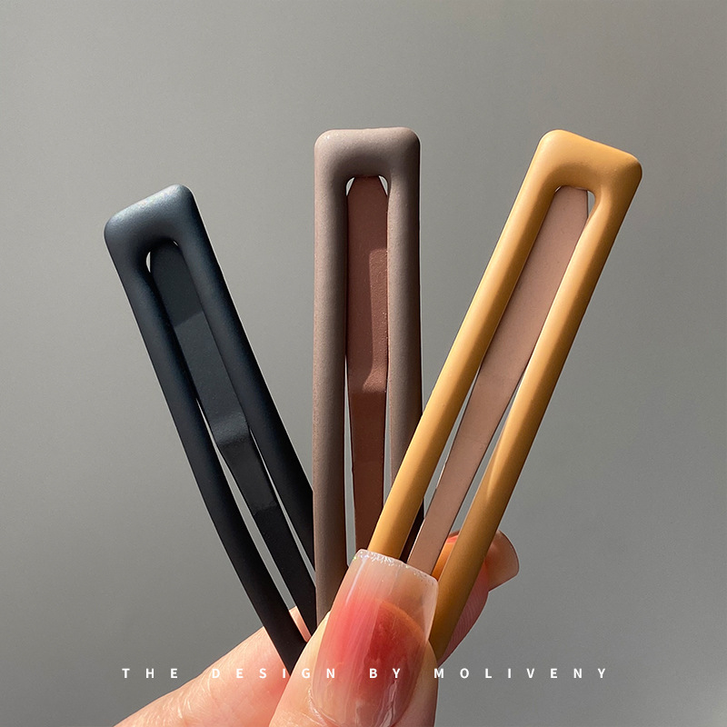 인 무광택 머리핀 푸시 형 하이 룩한 긴 앞머리 부러진 헤어 클립 2023 새로운 백 헤드 클립