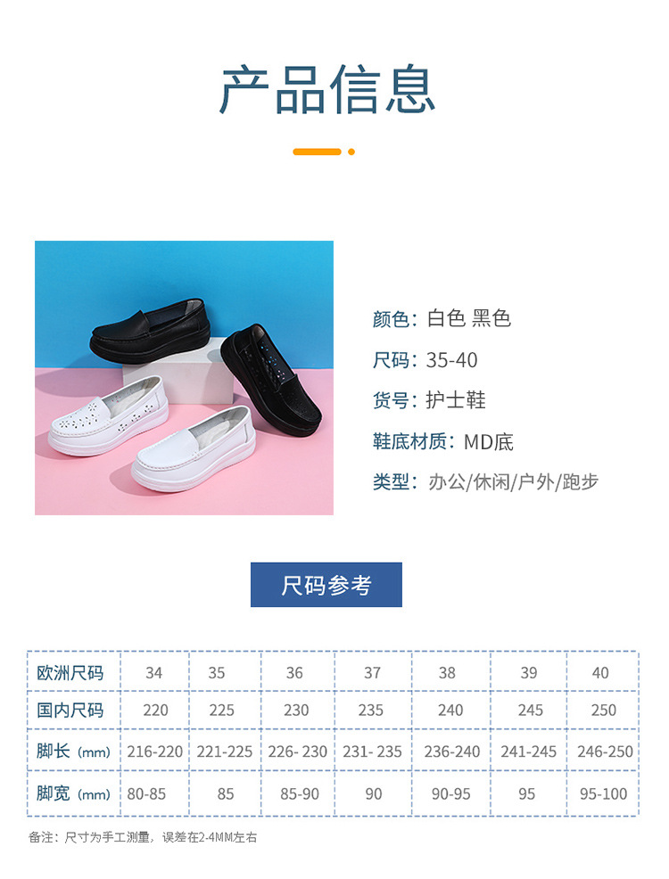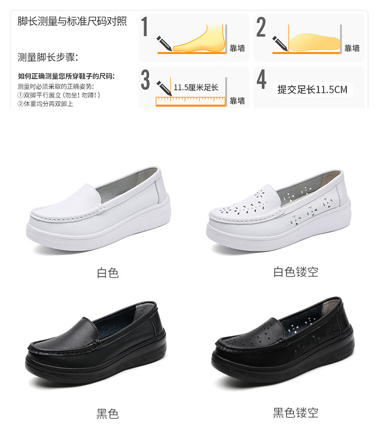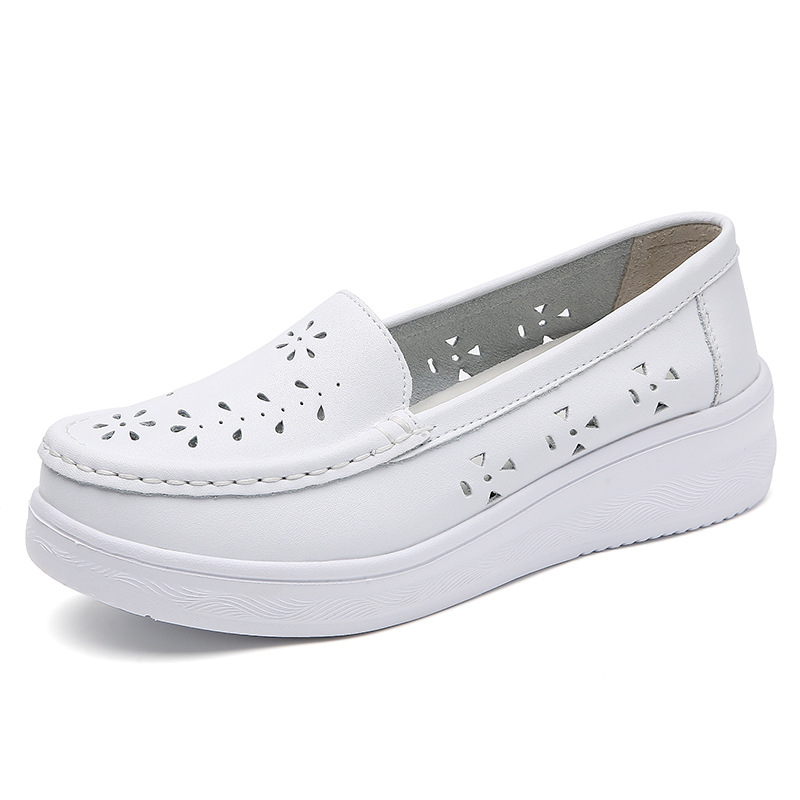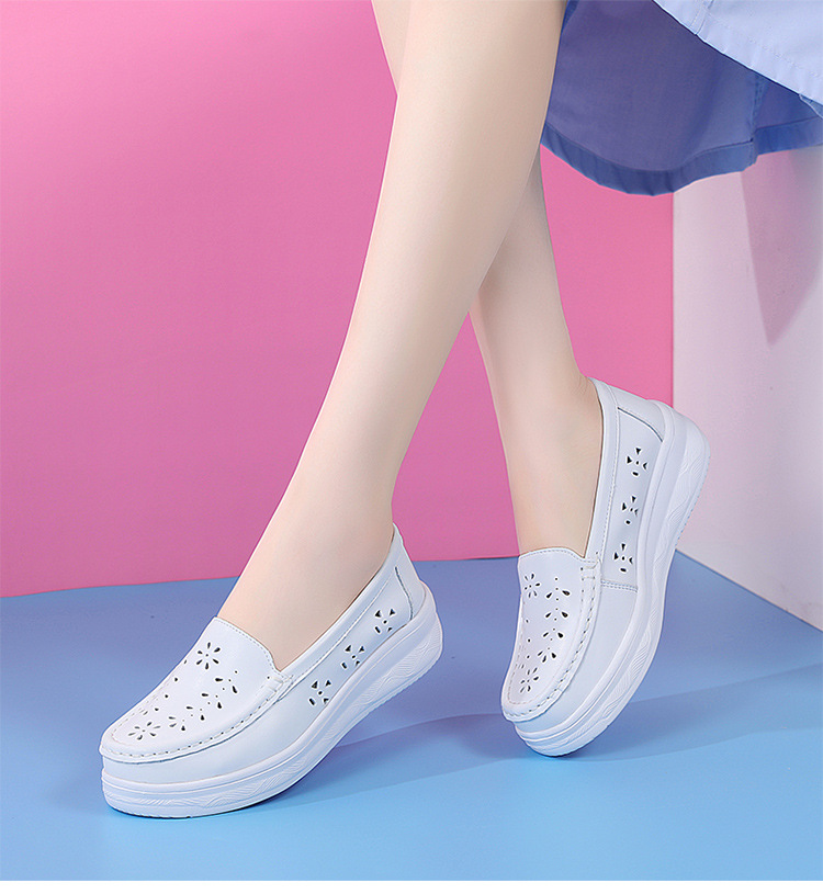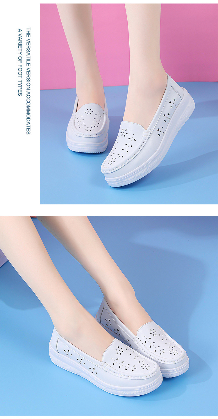 여름 간호사 신발 여성용 부드러운 밑창 소가죽 통기성 피곤하지 않은 발 편안한 미끄럼 방지 탈취제 중공 두꺼운 밑창 의료 작업 신발스토어 가기