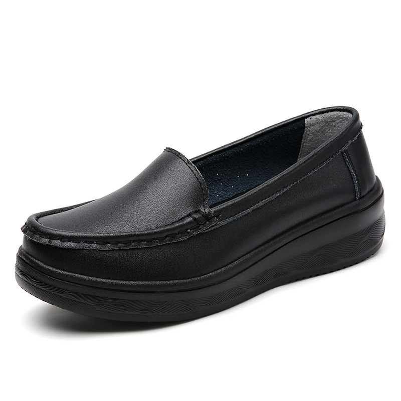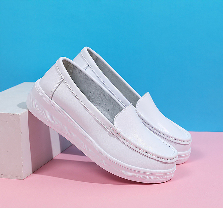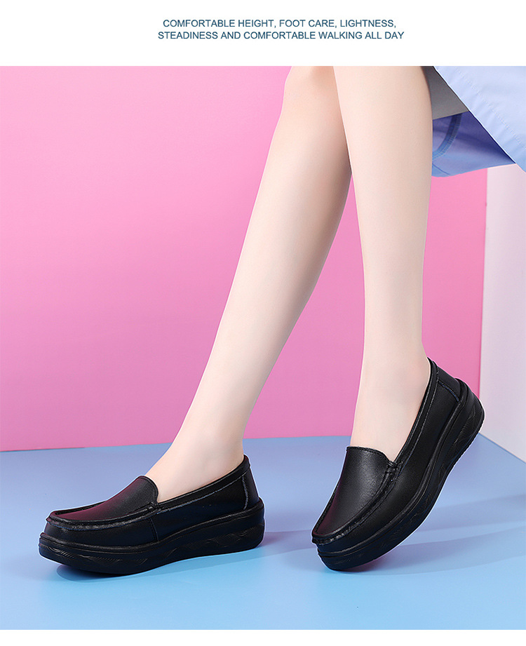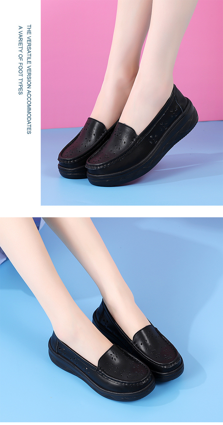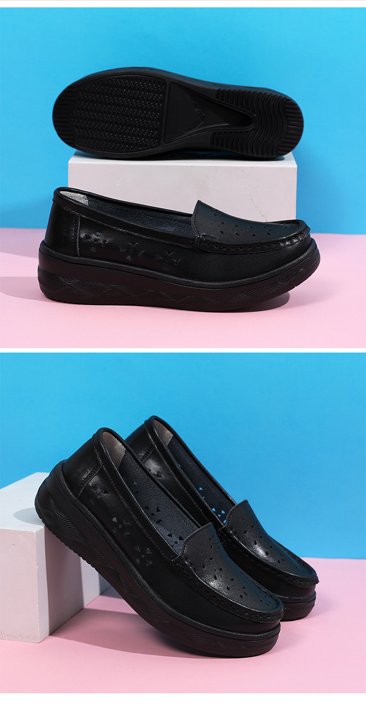 여름 간호사 신발 여성용 부드러운 밑창 소가죽 통기성 피곤하지 않은 발 편안한 미끄럼 방지 탈취제 중공 두꺼운 밑창 의료 작업 신발스토어 가기