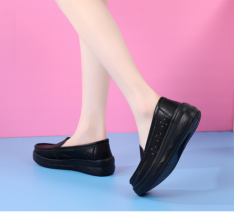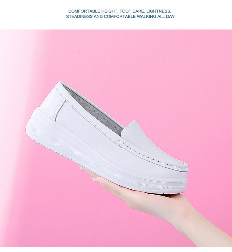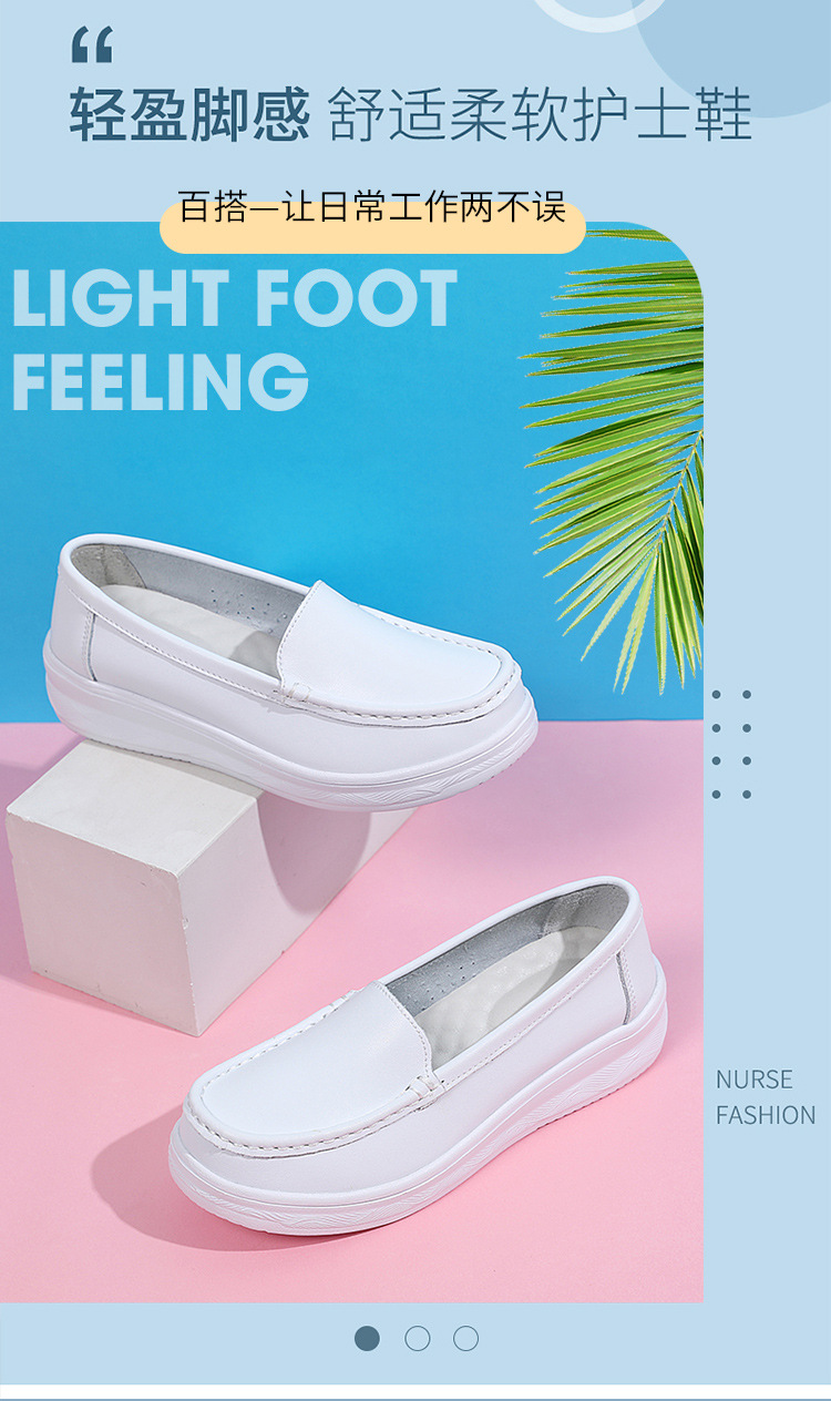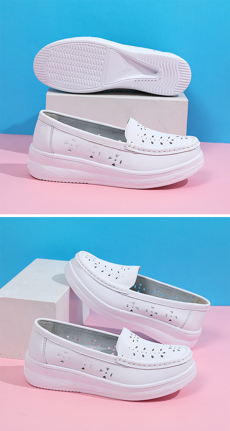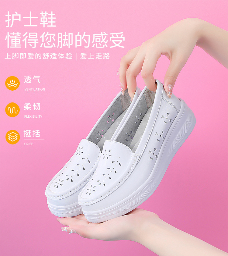 여름 간호사 신발 여성용 부드러운 밑창 소가죽 통기성 피곤하지 않은 발 편안한 미끄럼 방지 탈취제 중공 두꺼운 밑창 의료 작업 신발