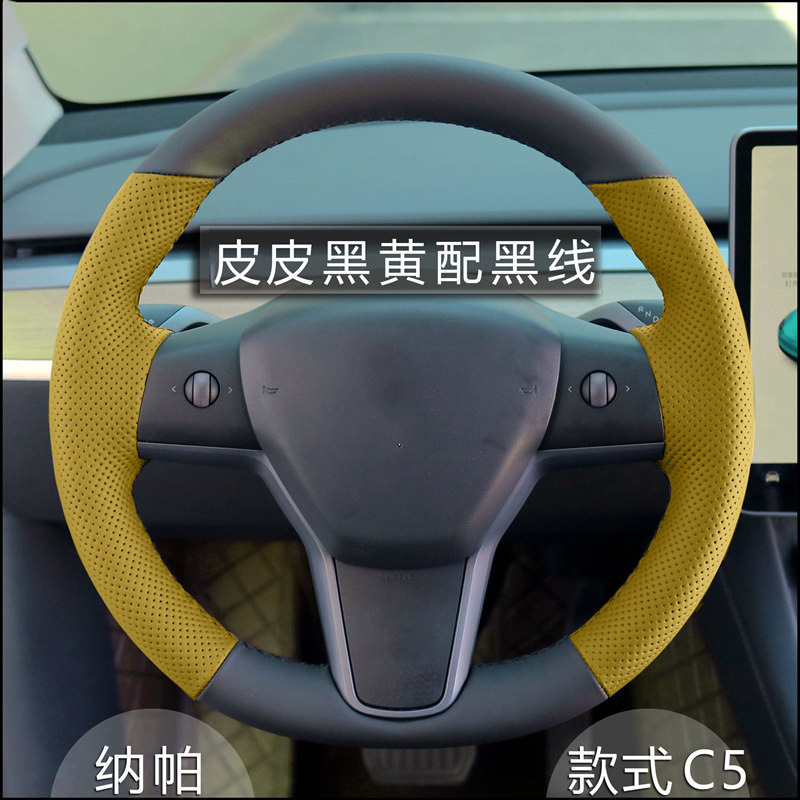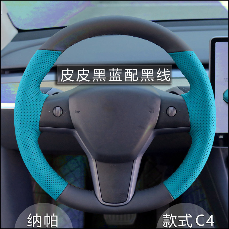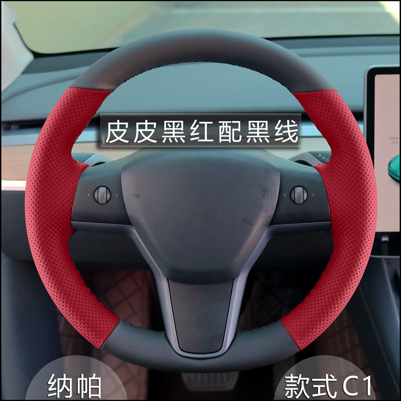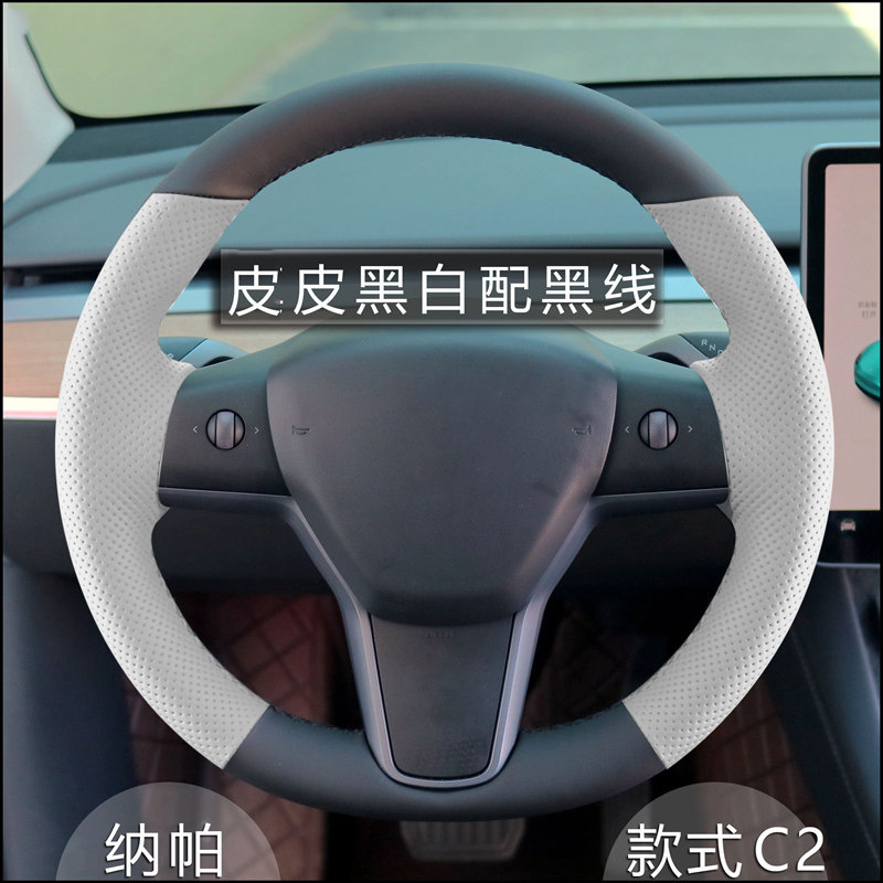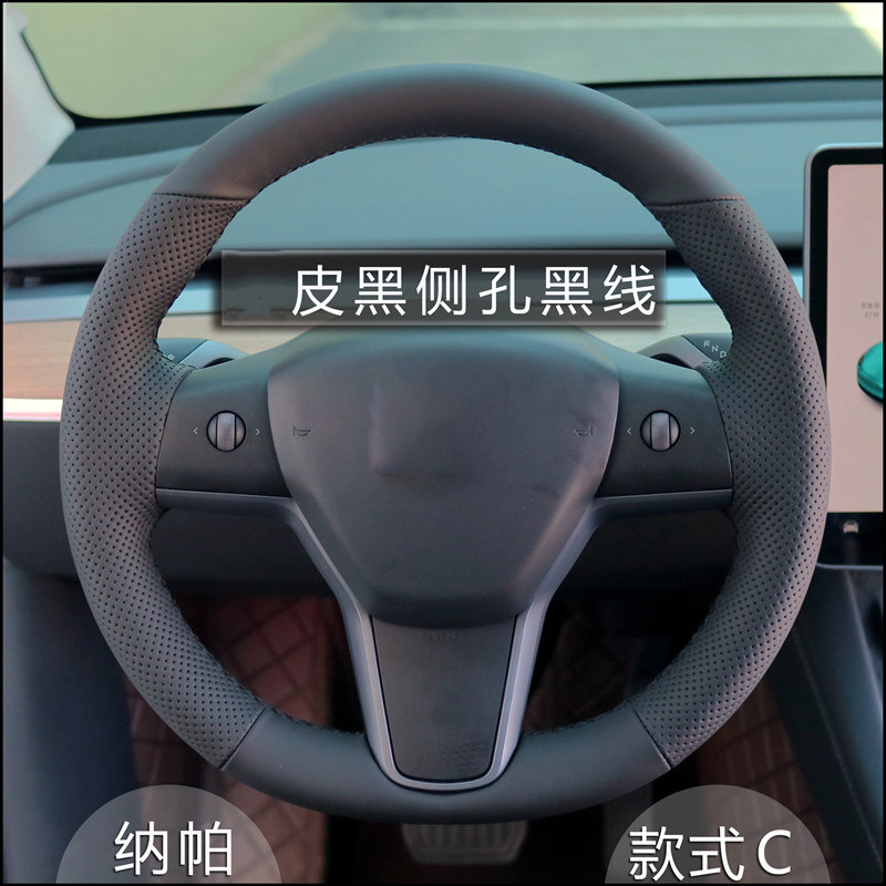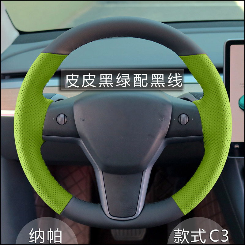 Tesla 모델 가죽 용 스티어링 휠 커버 모델 3 특수 핸드 스티치 핸들 커버 소가죽