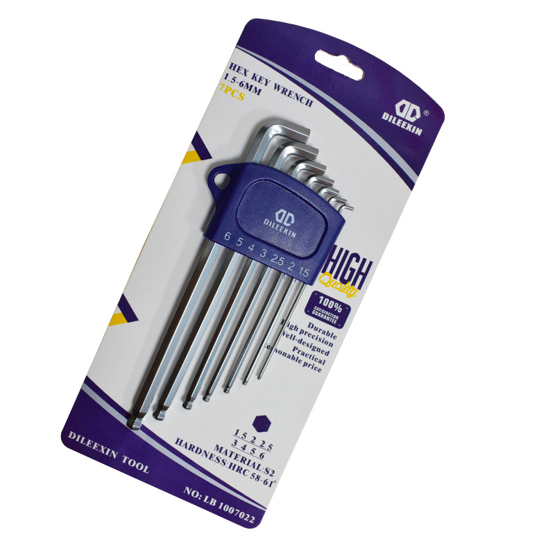 Dingli 짧은 꼬리 볼 헤드 알렌 렌치 7 개 세트/단일 도구 강철 고경도 크롬 도금 미터법 중간 긴 도매스토어 가기
