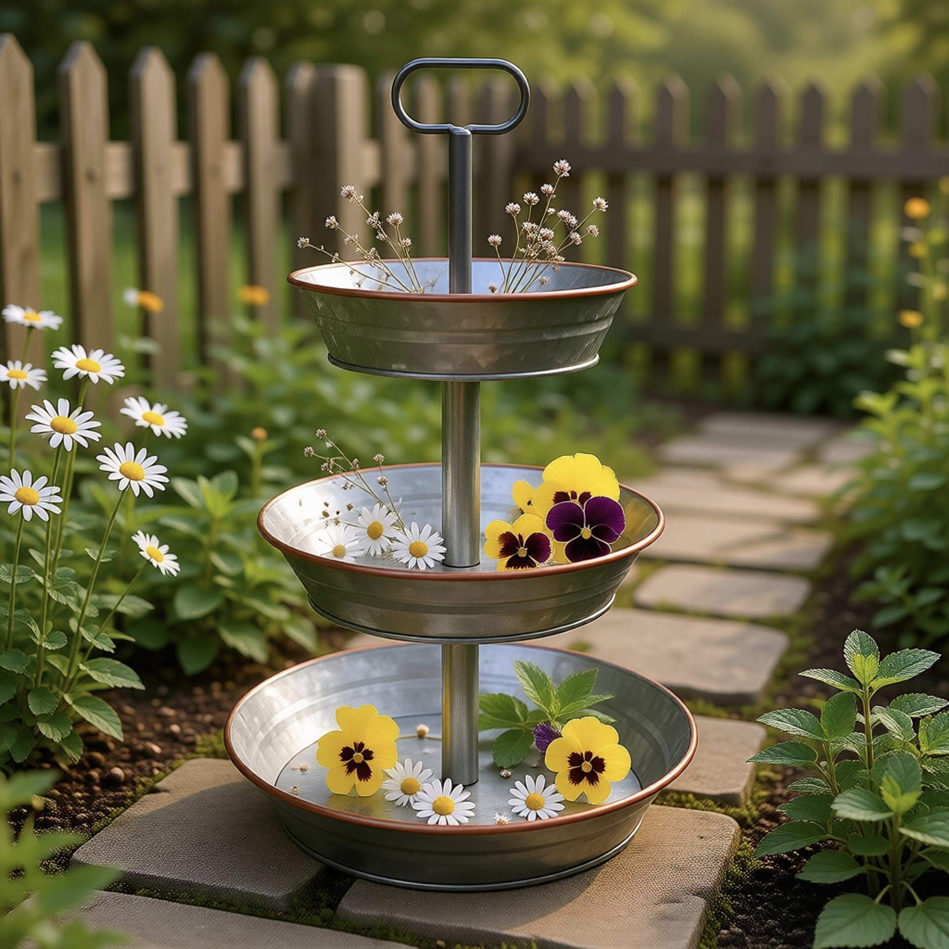 미국식 케이크 트레이 3 층 생과자 랙 금속 아연 도금 철 3 층 과일 트레이 서빙 트레이