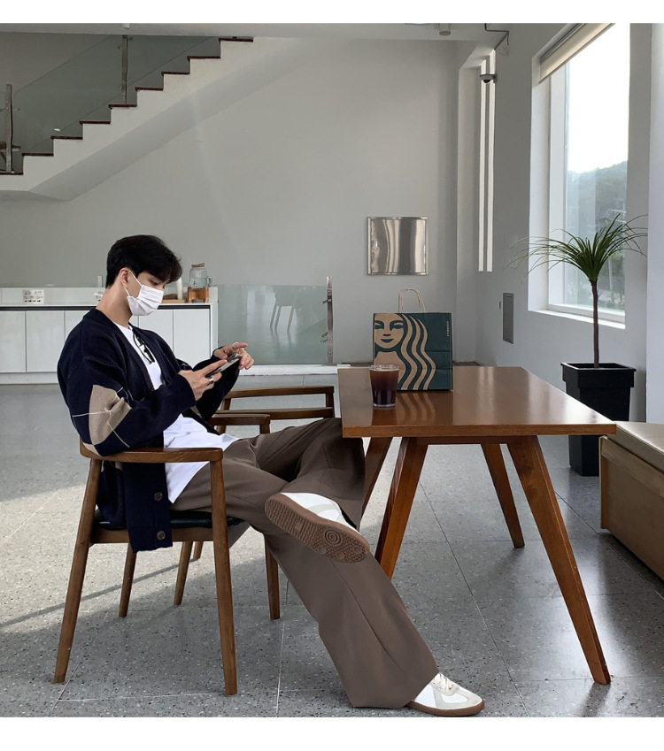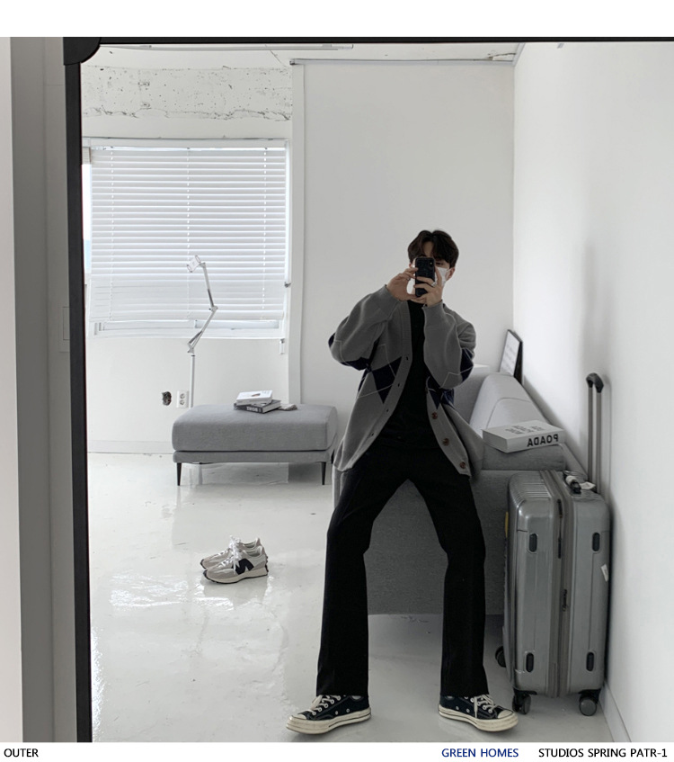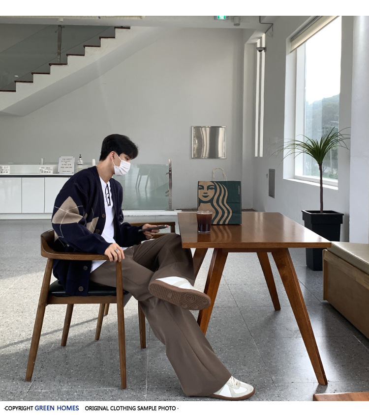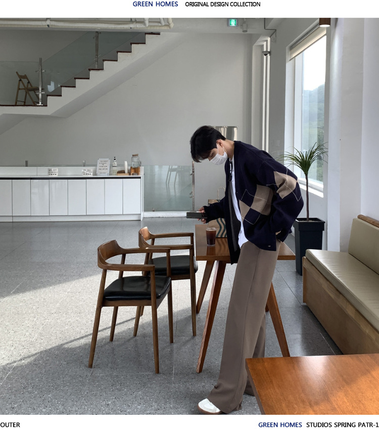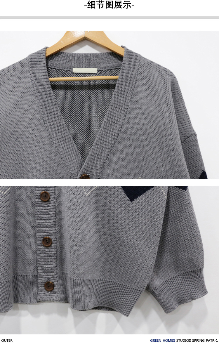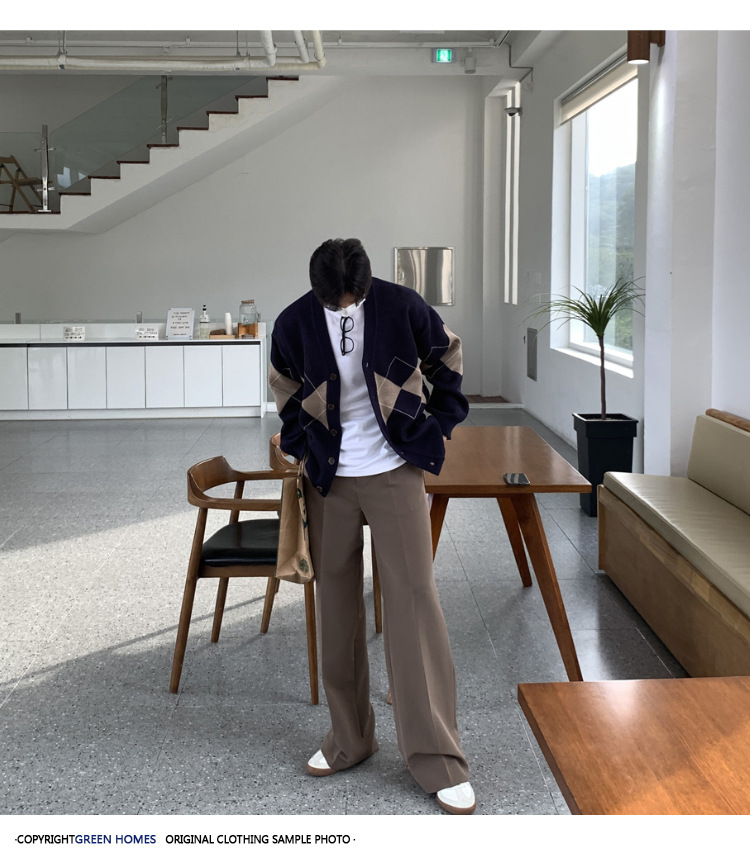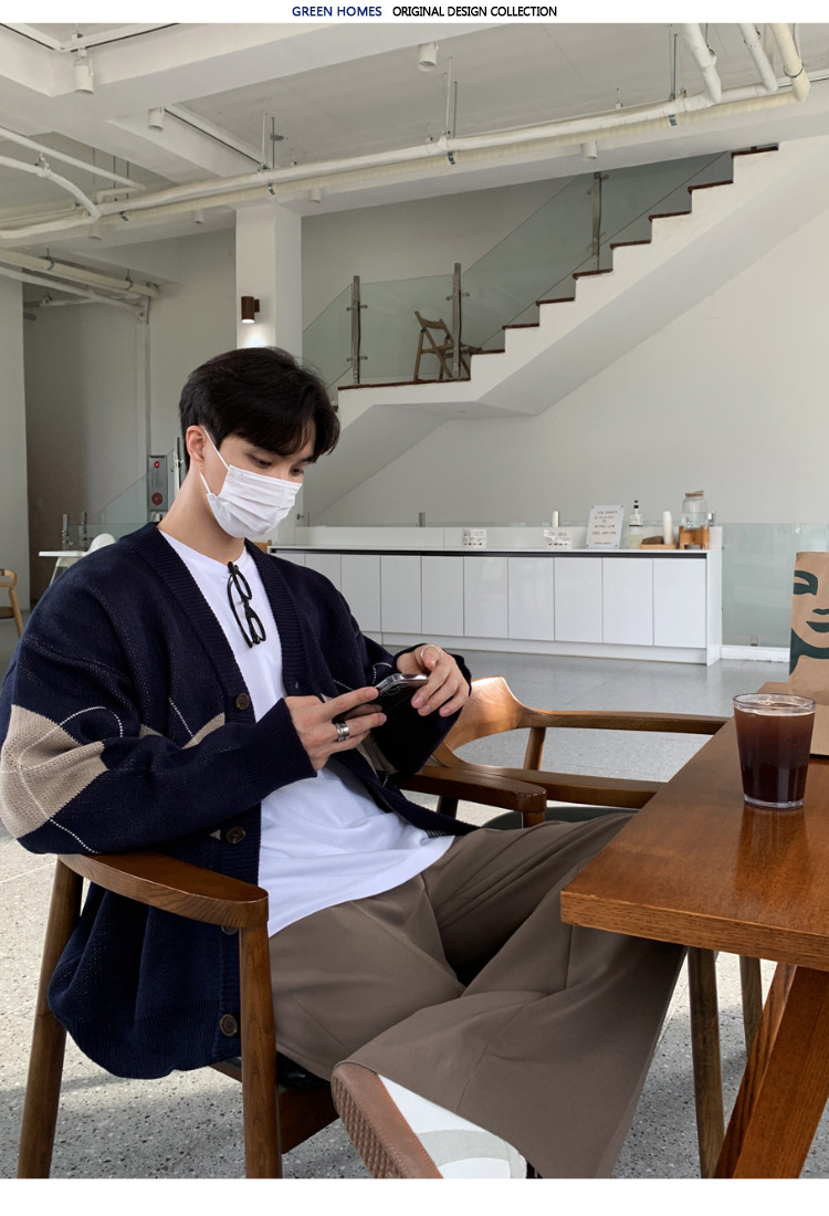 ASCLO 한국판 신상 루즈 니트 재킷 가을 겨울 남성용 멋스러운 디자인의 다이아몬드 무늬 스웨터 가디건 진한 파란색스토어 가기