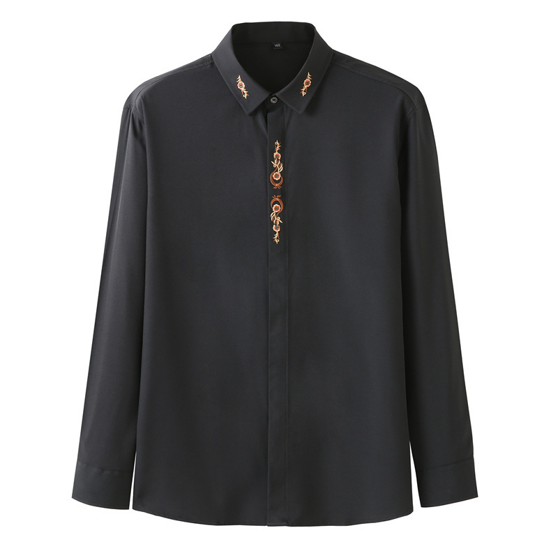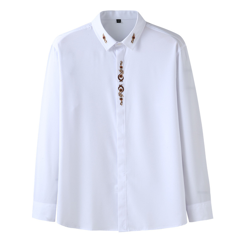 봄과 가을 새로운 플러스 사이즈 긴팔 셔츠 남자의 초대형 비즈니스 캐주얼 독특한 자수 셔츠 베이스 셔츠