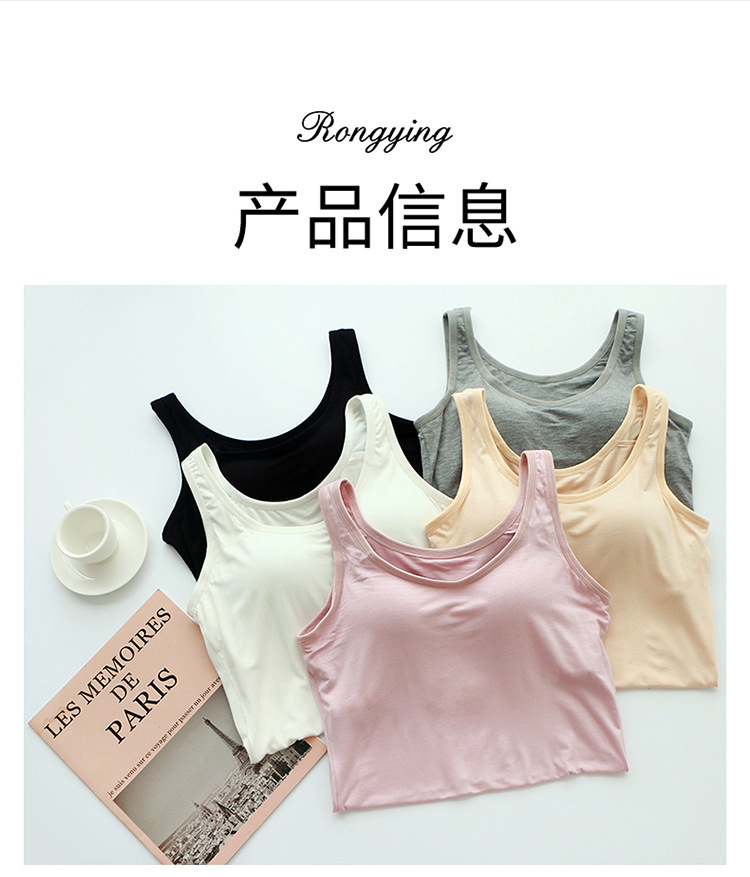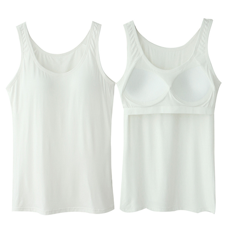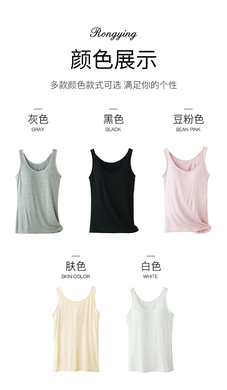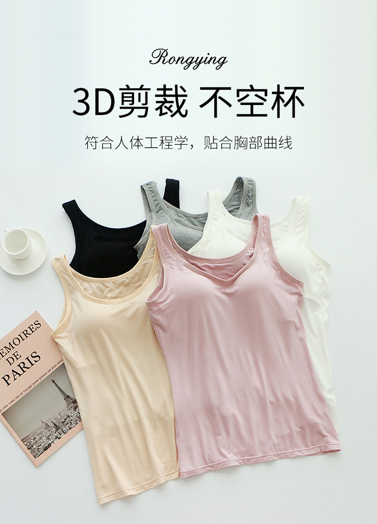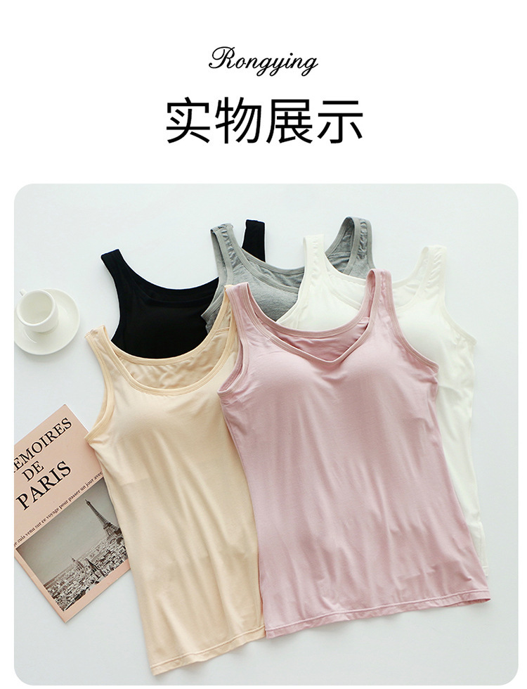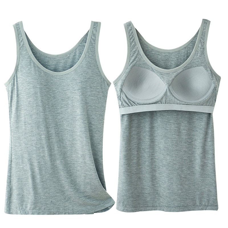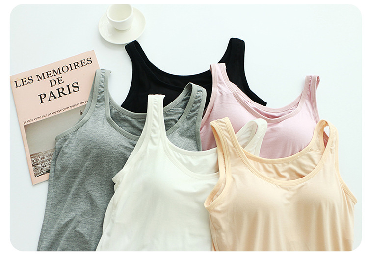 가슴 패드가있는 모달 조끼 여성 브래지어 컵 내부 및 외부 착용을위한 통합 무선 슬림 핏 언더 셔츠