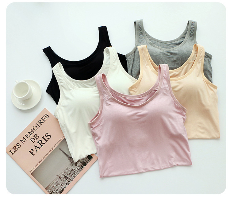 가슴 패드가있는 모달 조끼 여성 브래지어 컵 내부 및 외부 착용을위한 통합 무선 슬림 핏 언더 셔츠스토어 가기