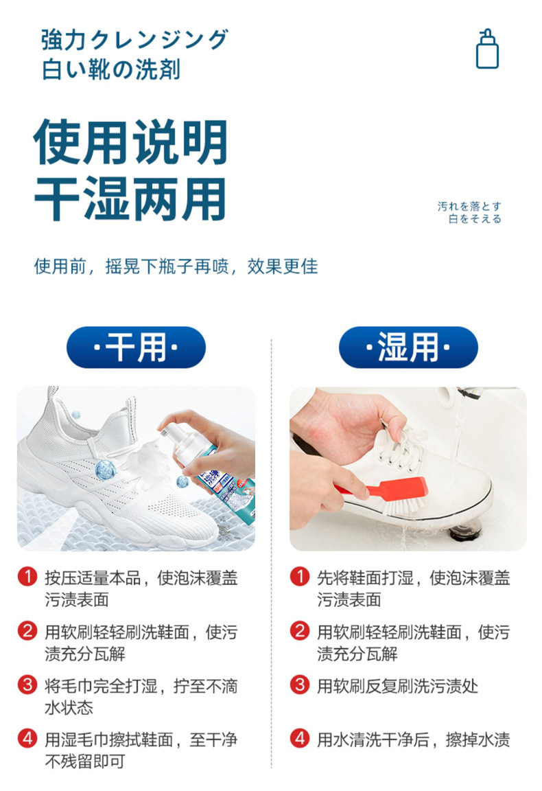 흰색 신발 세척제 신발 세척 유물 신발 브러시 운동화 흰색 신발 거품 클리너 오염 제거 및 미백을위한 특수스토어 가기