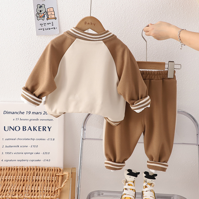 야구 세트 가디건 아동 의류 소년 컬러 블록 편지 인쇄 긴 소매 가디건 가을 새로운 스포츠 캐주얼웨어 세 조각
