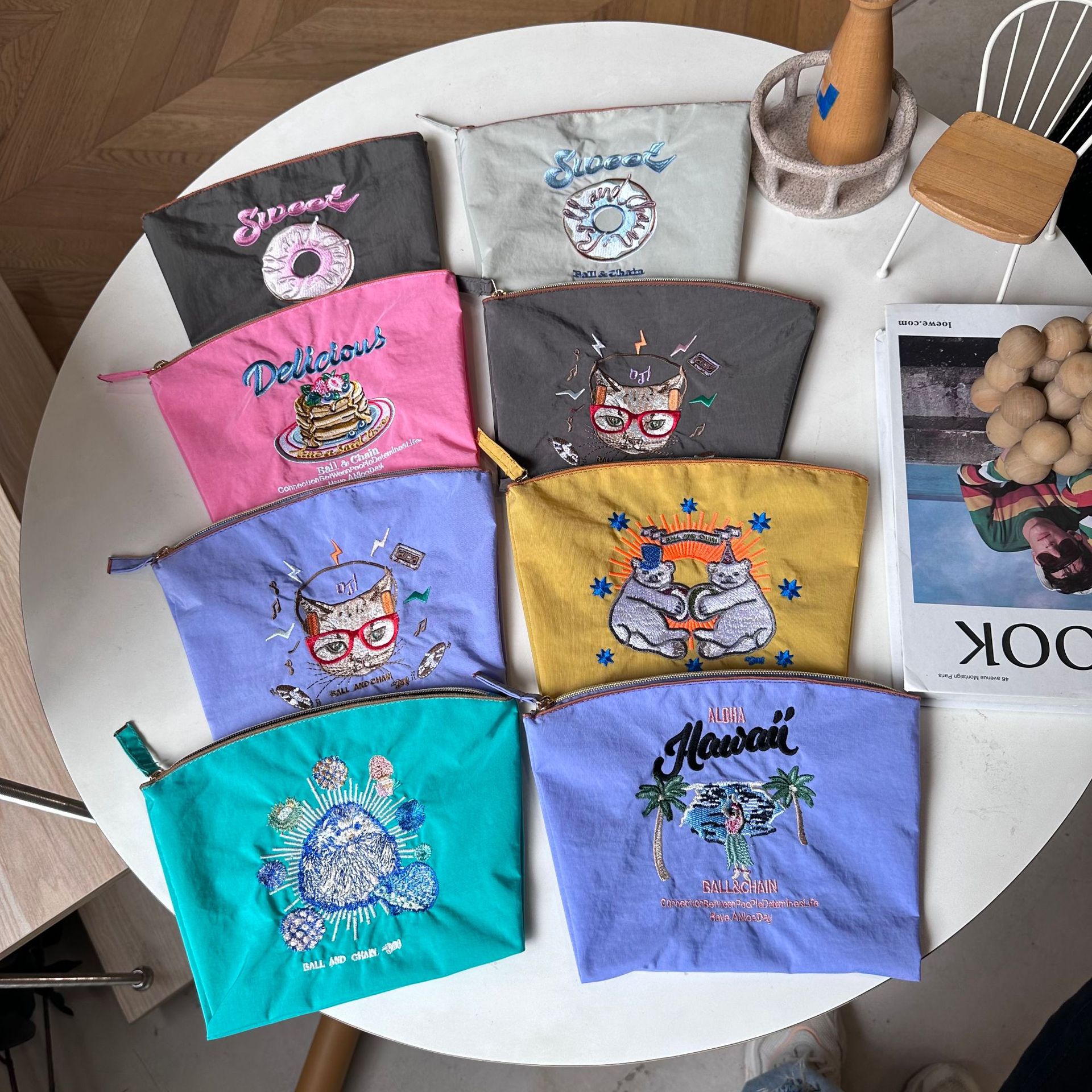 Gao Yuanyuan 자수 환경 친화적 인 화장품 가방 보관 가방 방수 나일론 화장품 작은 가방 하와이 도넛스토어 가기