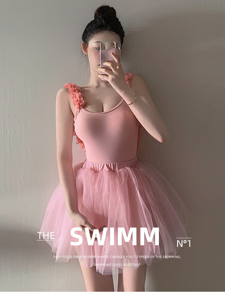 2023 새로운 사이버 연예인 수영복 섹시한 아름다운 등 유행 3 차원 꽃잎 원피스 퍼프 스커트 수영복 여성용 투피스 세트