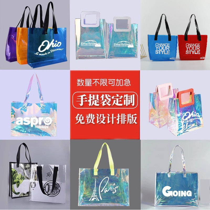 레이저 가방 맞춤형 패턴 로고 젤리백 PVC 투명 핸드백 플라스틱 선물 가방 선물 포장 PVC스토어 가기